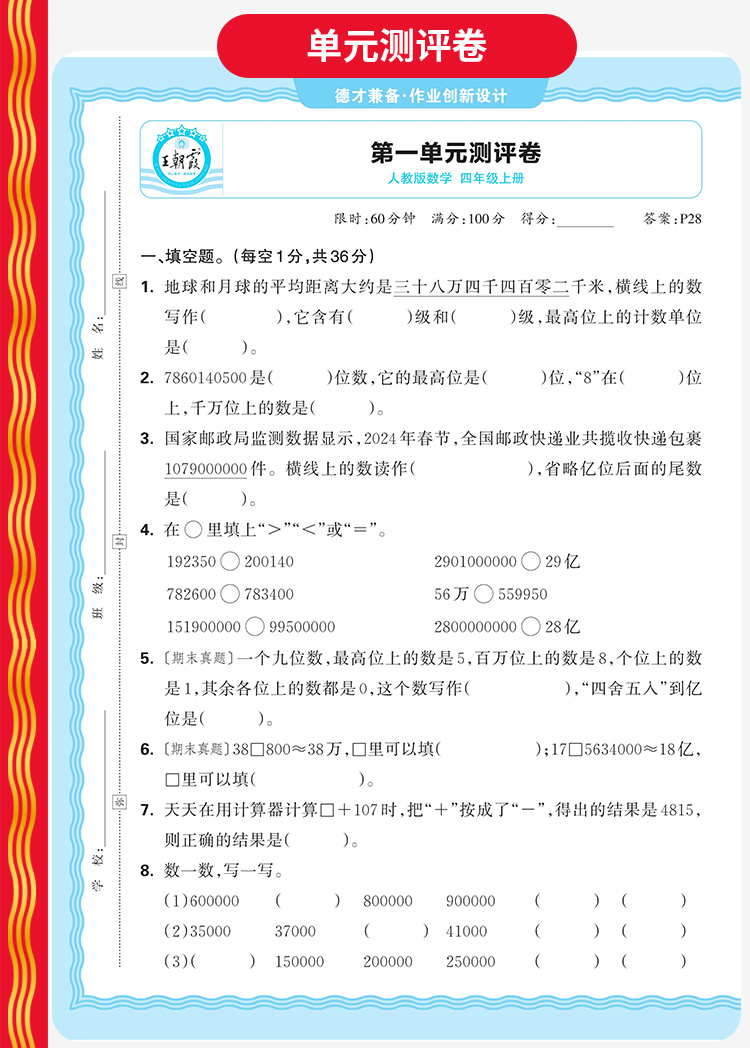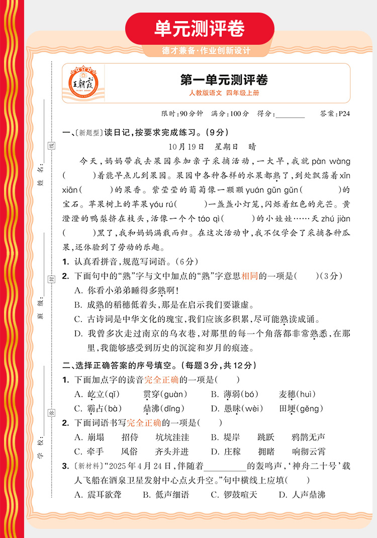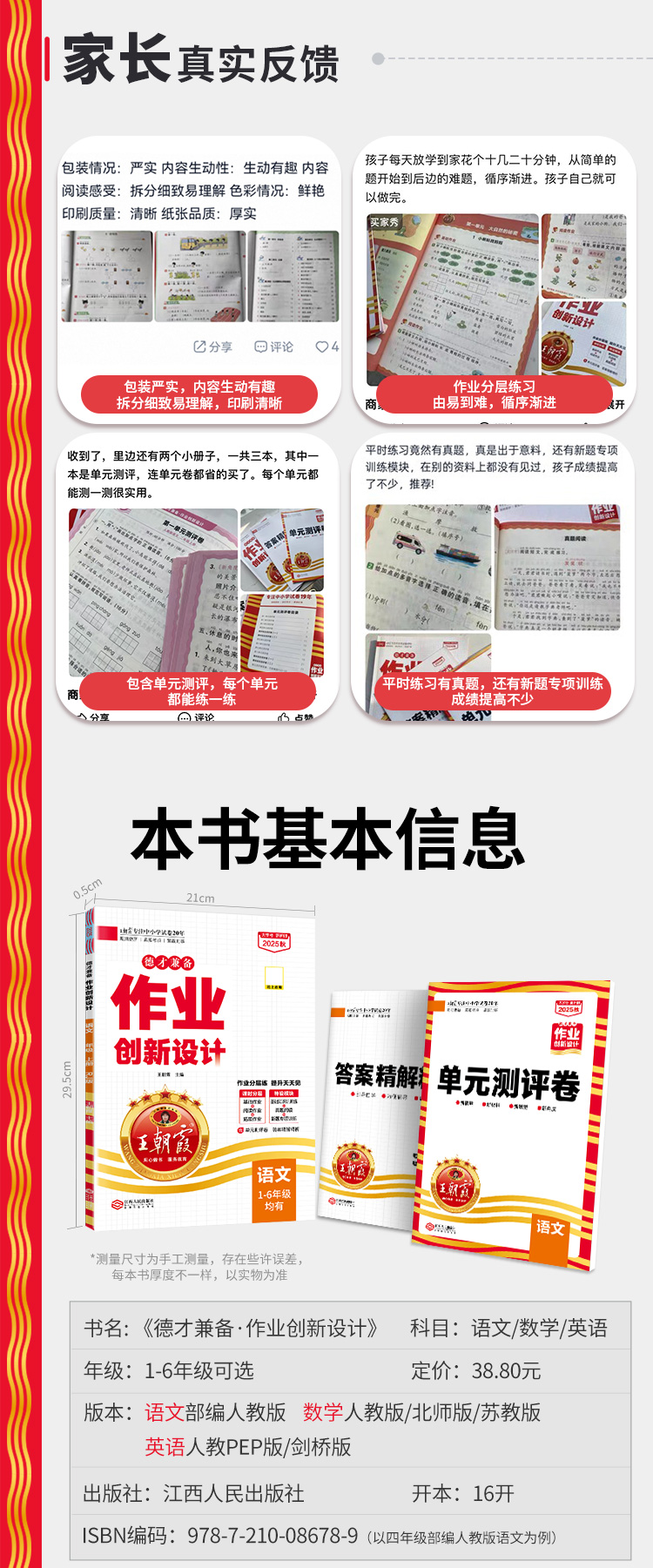 2025秋上册小学1-6年级王朝霞作业创新设计德才兼备语数英同步练习册小学学霸试卷