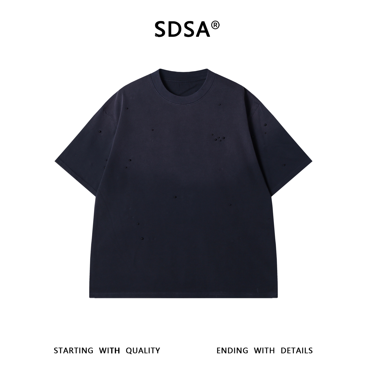 SDSA男装2026新款高贵轻奢时尚渐变珠子装饰设计圆领短袖T恤百搭
