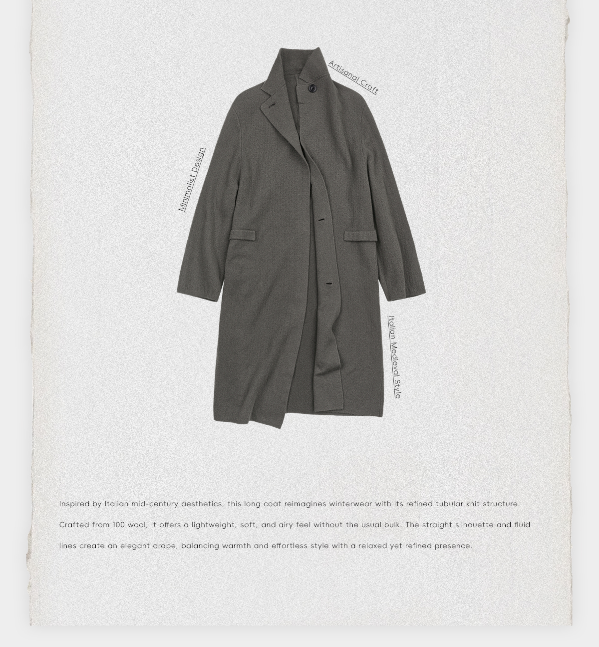 ROMI STUDIO“松弛有度”羊毛混纺中古长款廓形毛织大衣 RWCWWT6647