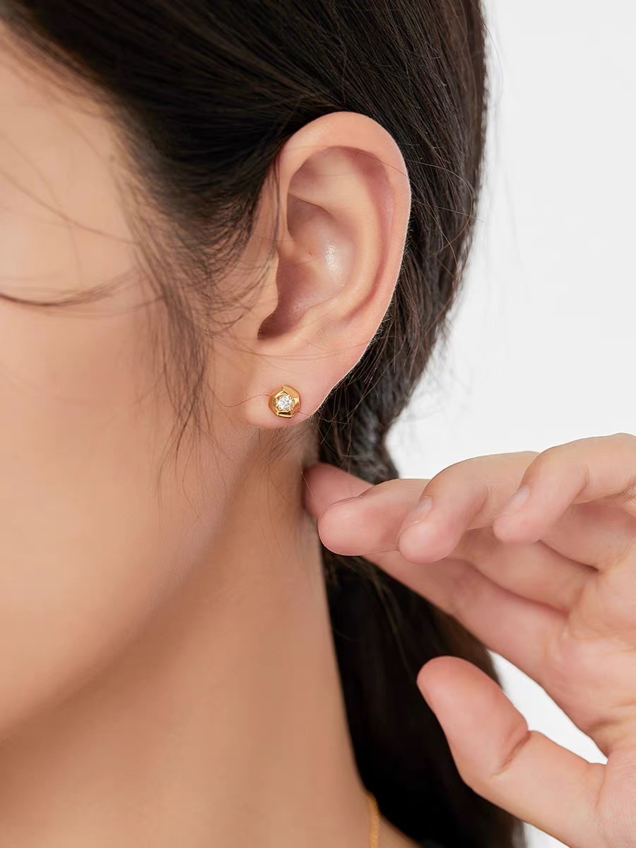 【c小钻金粒耳钉】时尚又简约,又很有创意的设计,因为极其简单的设计,越是要做好,才有那种复古港风味道出来,一股中古风Vintage范,极简而不简,个性时髦气质,非常适合日常搭配!