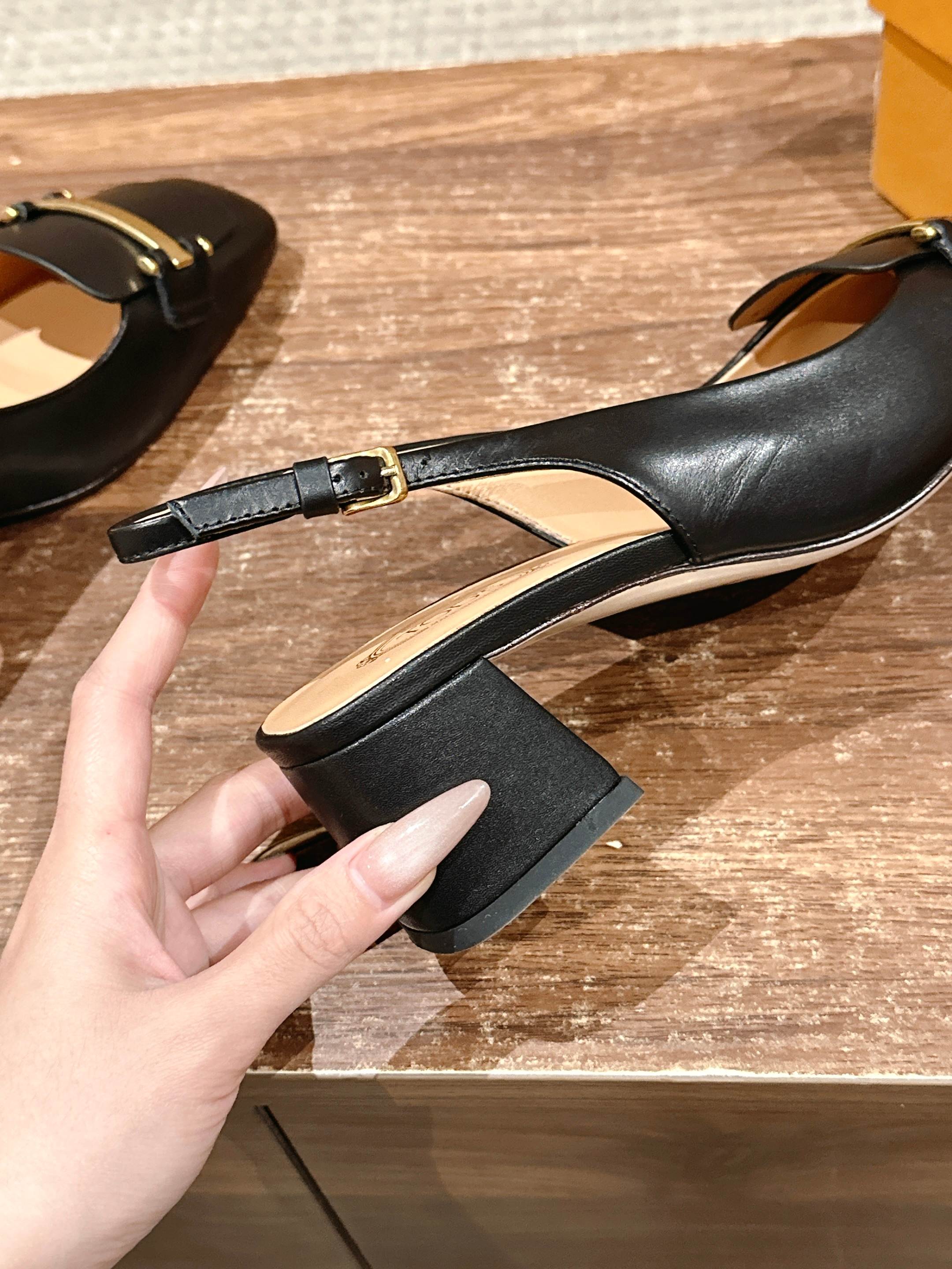 侧边点缀带品牌标识的金属横条,几何粗跟和皮革外底平稳舒适。款式斯文淑女,优雅又不失活泼 鞋面采用原版定制小牛皮 内里垫脚均为羊小皮 意大利进口牛皮大底