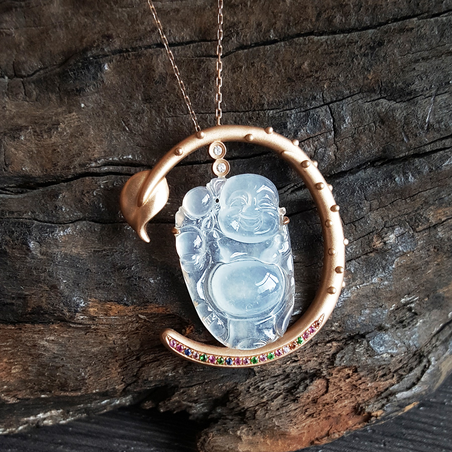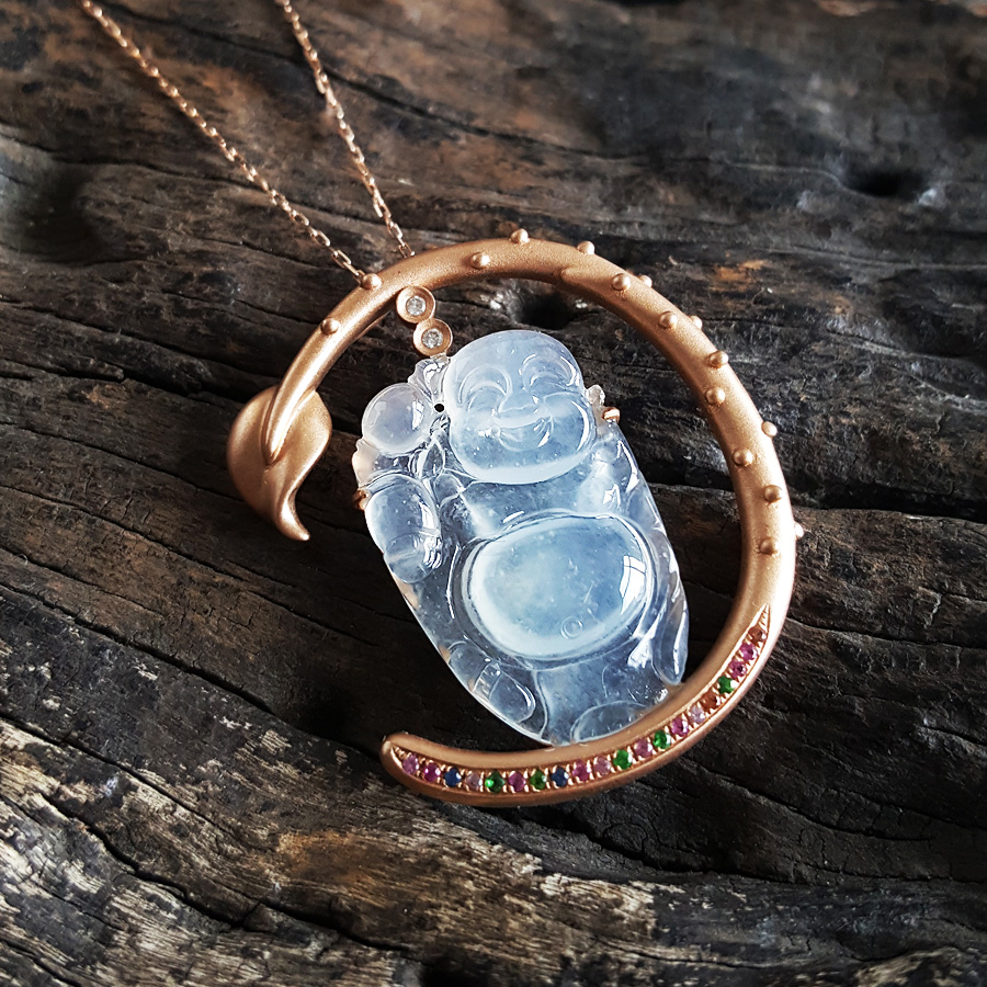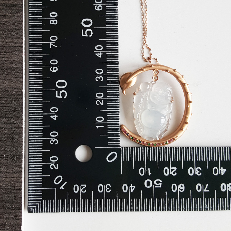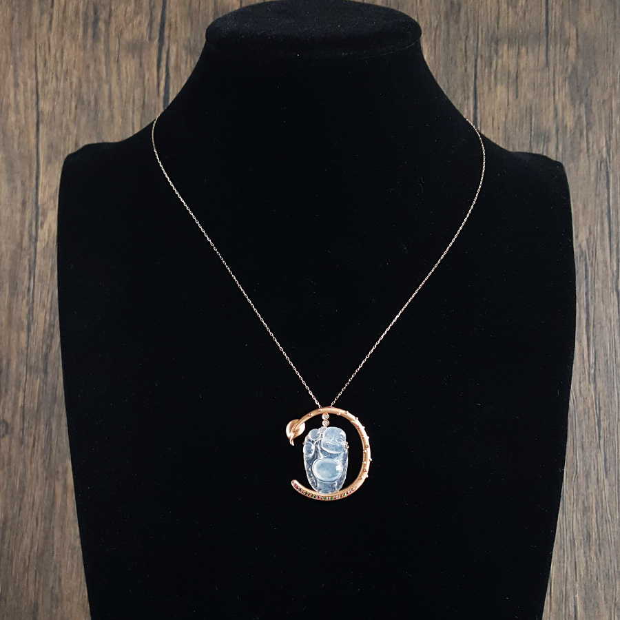 名称 | AU750精品玫瑰金镶天然冰种佛公翡翠(平安、吉祥)吊坠项链 |