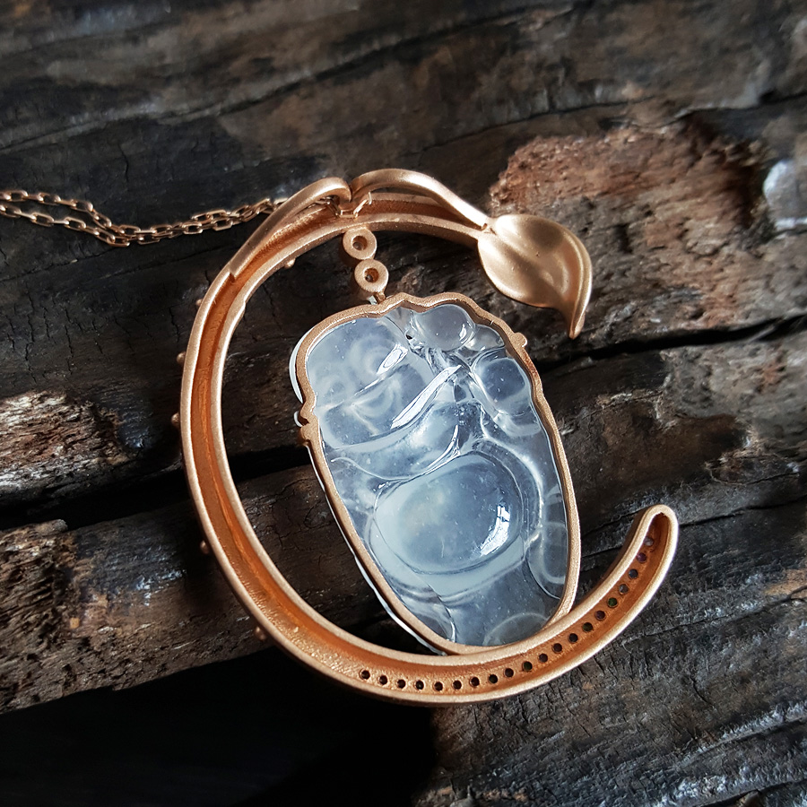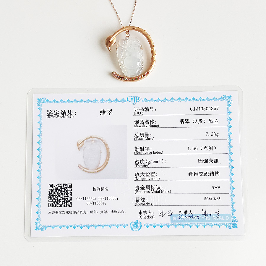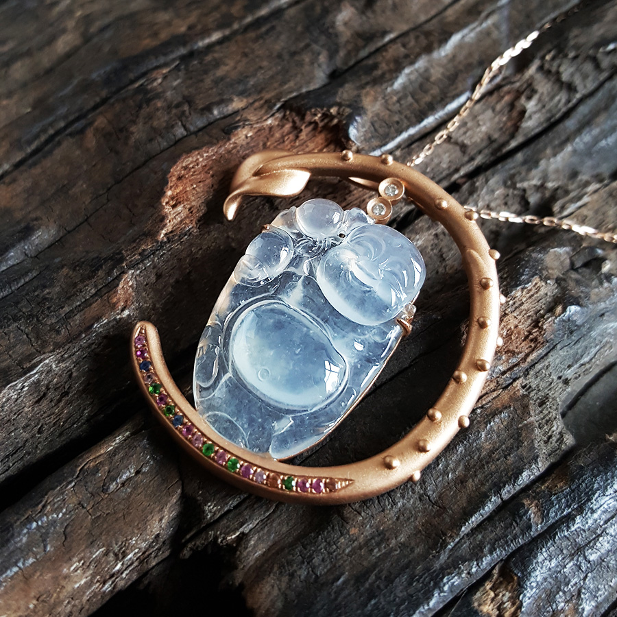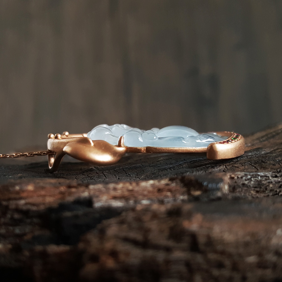 名称 | AU750精品玫瑰金镶天然冰种佛公翡翠(平安、吉祥)吊坠项链 |