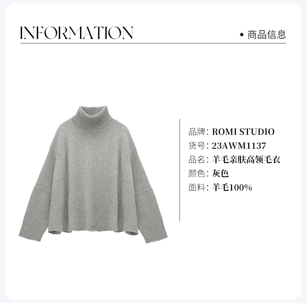 ROMI STUDIO“松弛随性” 100%澳洲精纺羊毛亲肤高领毛衣 23AWM1137