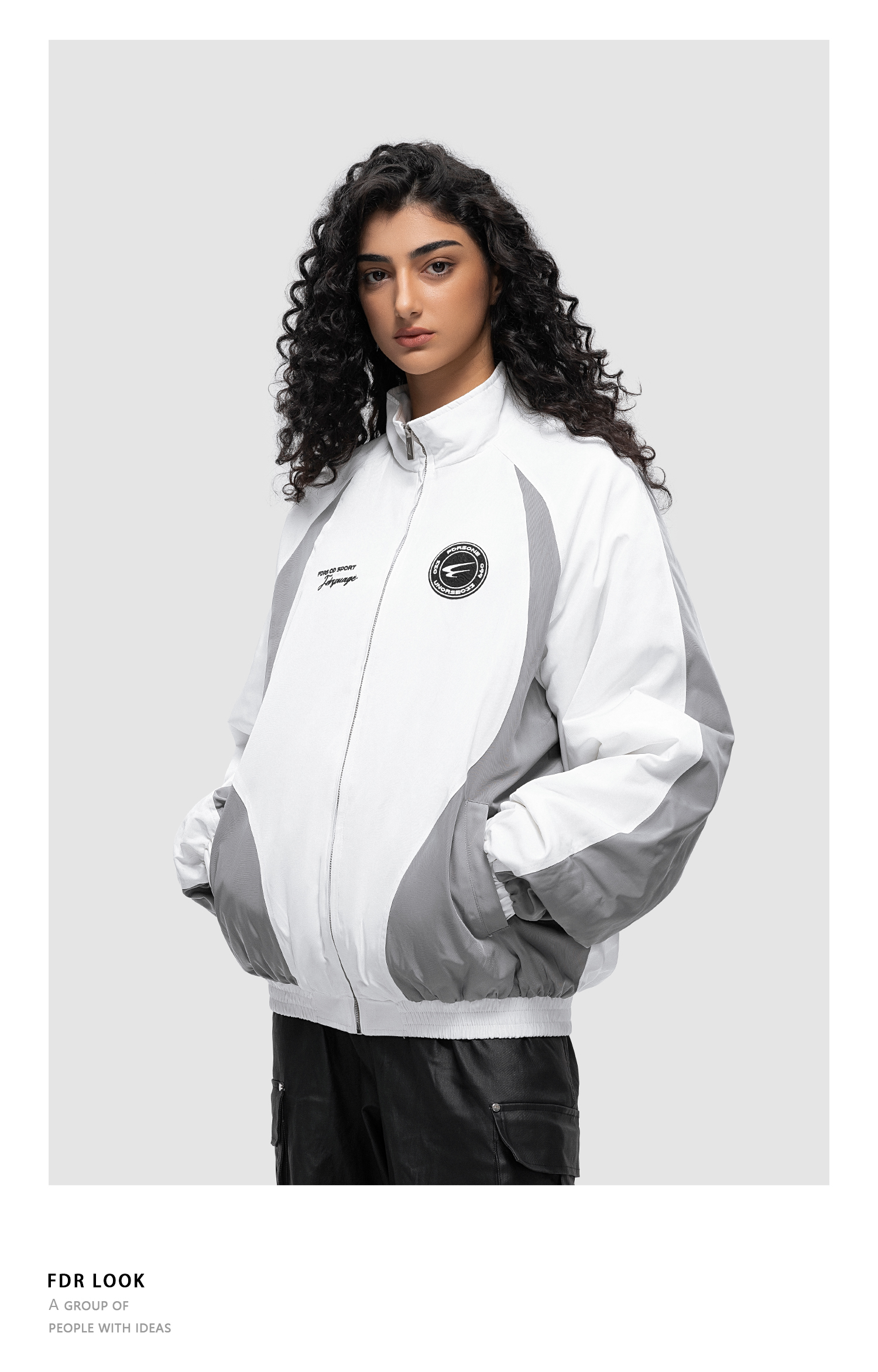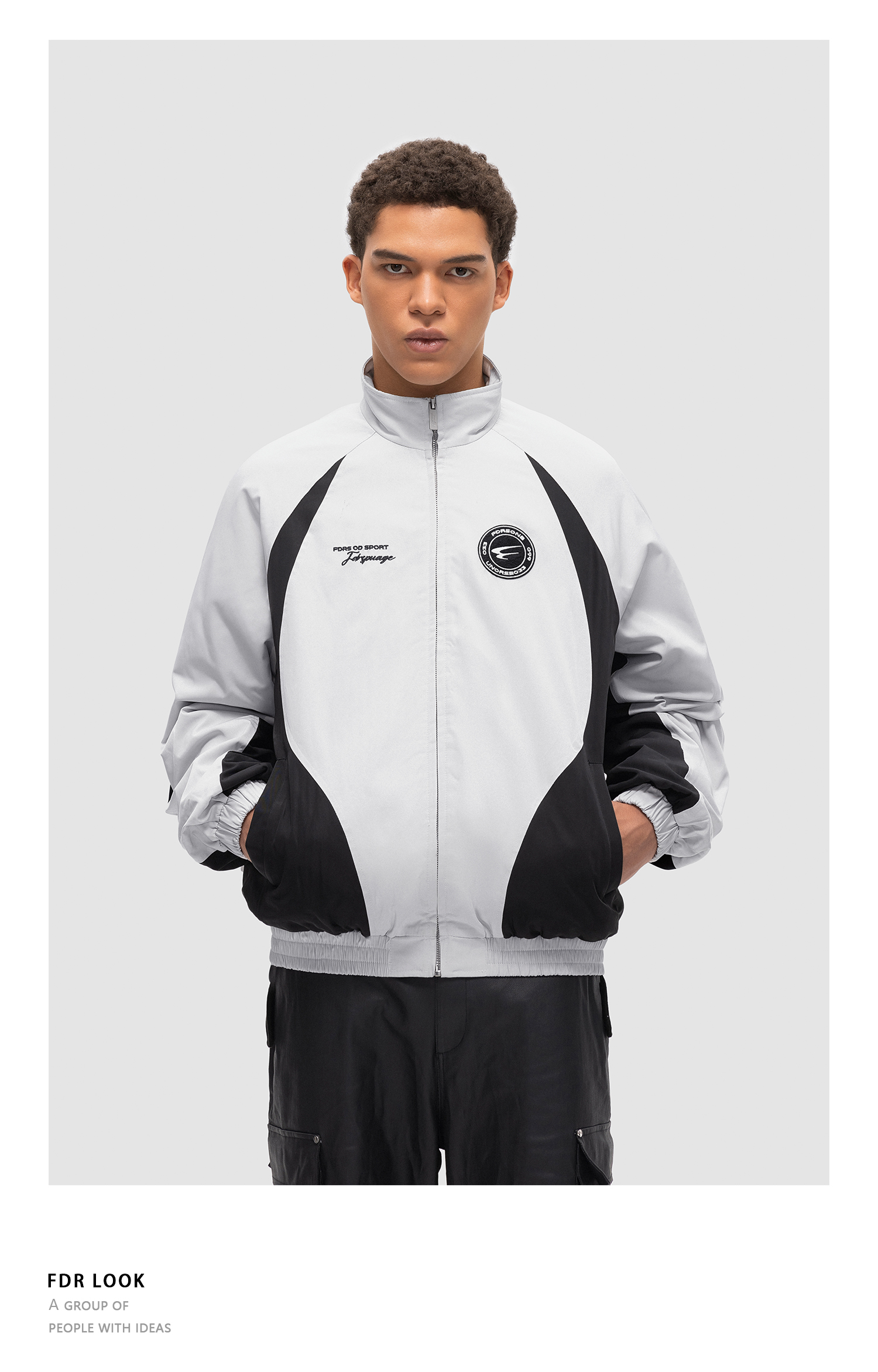 FDR 国潮美式徽章拼接加棉夹克外套男女秋冬季情侣上衣棒球服棉衣