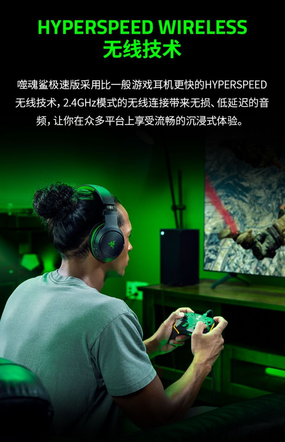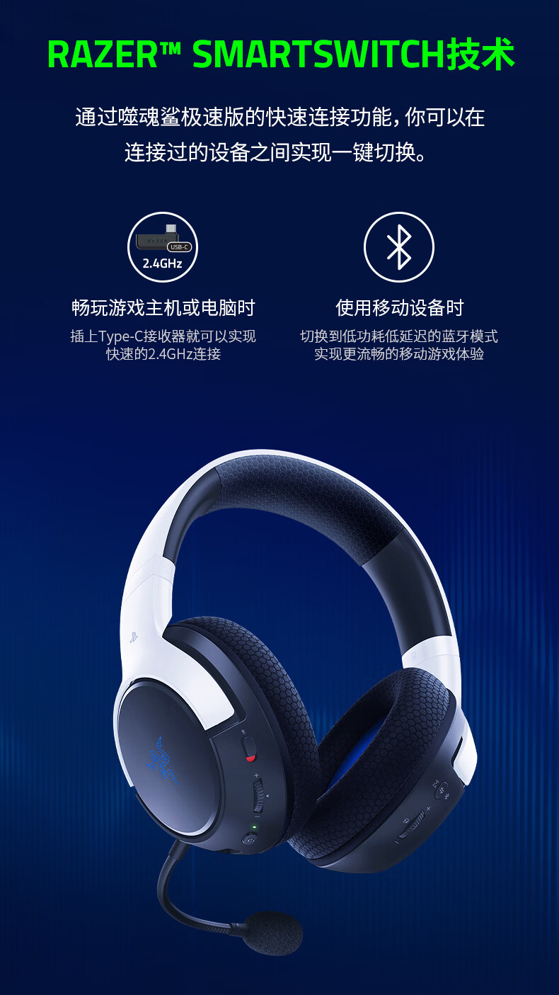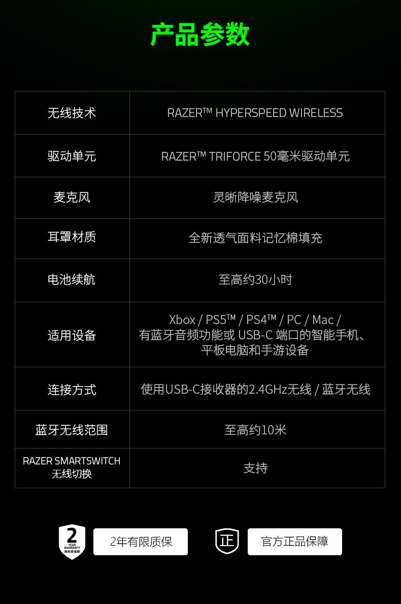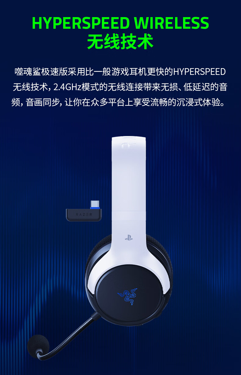 Razer雷蛇噬魂鲨极速版 XBOX / PS通用无线耳机【雷蛇官方直营,3年有限质保】