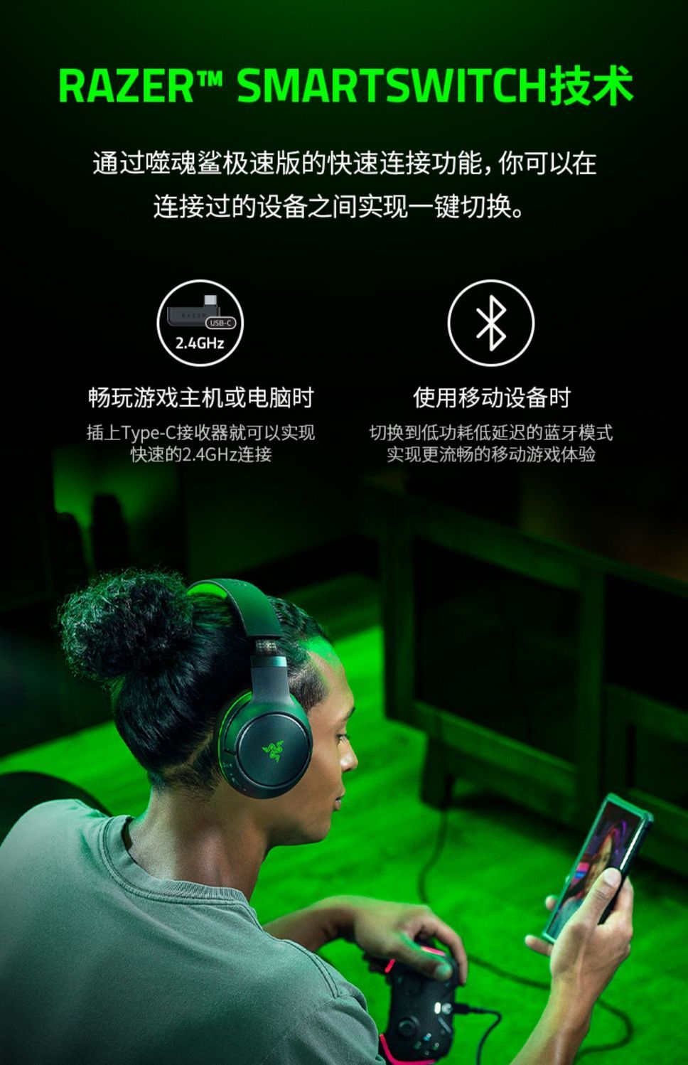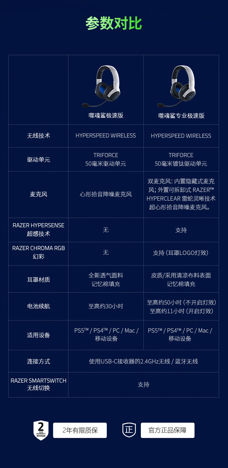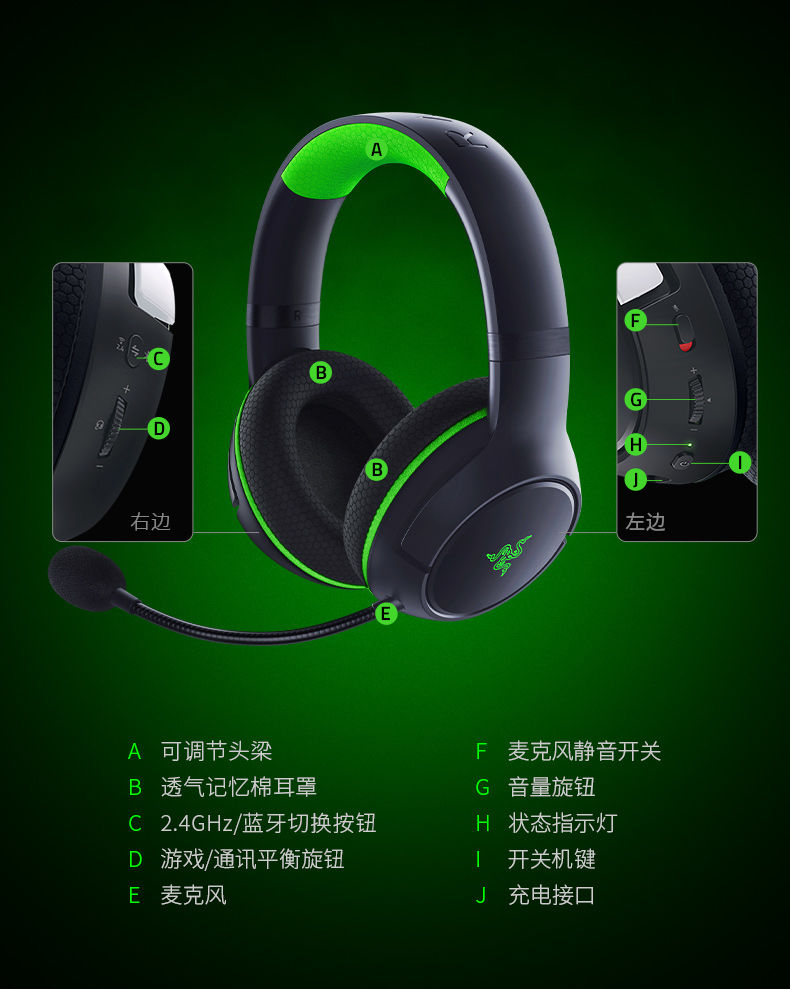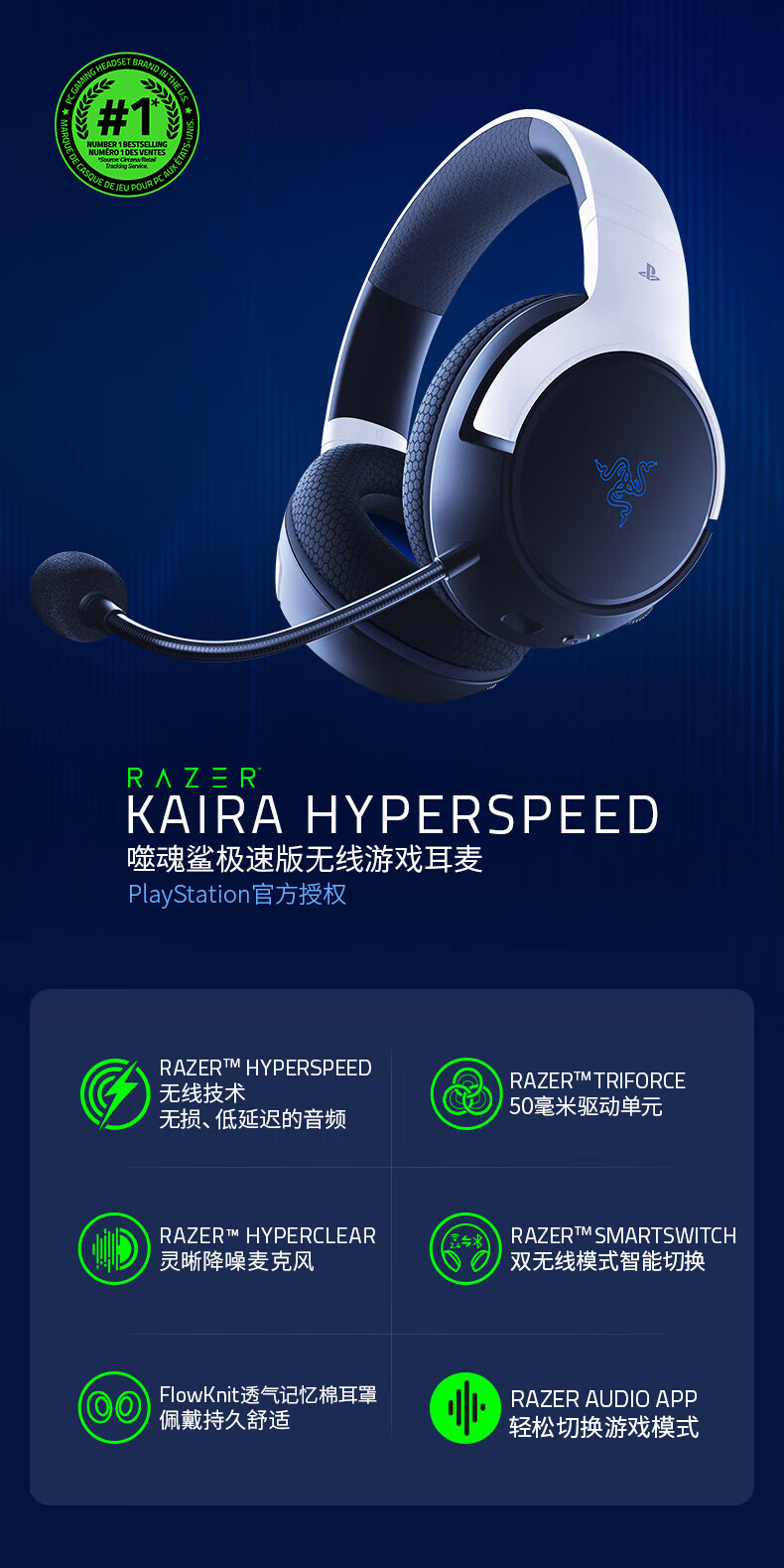Razer雷蛇噬魂鲨极速版 XBOX / PS通用无线耳机【雷蛇官方直营,3年有限质保】