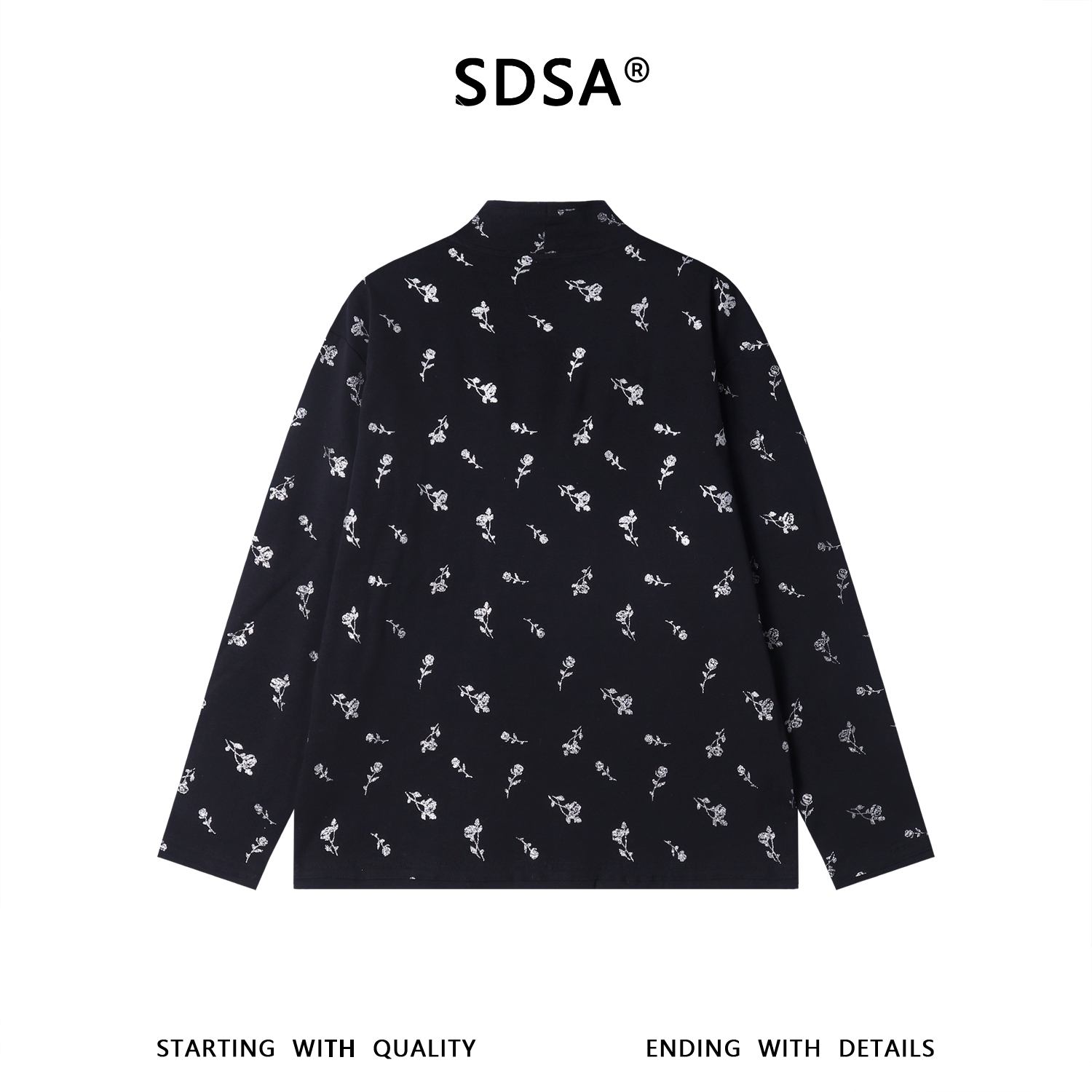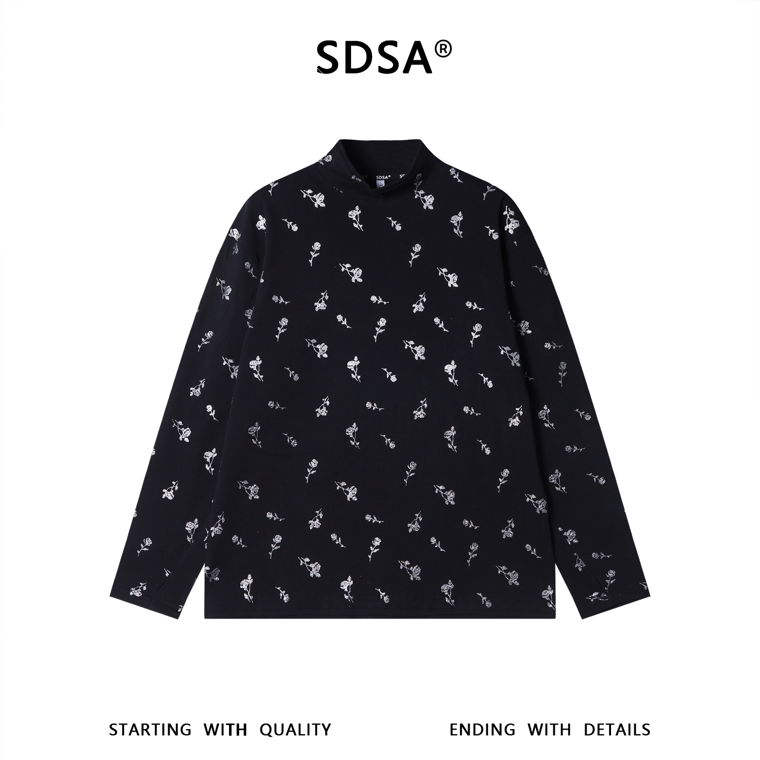 T5072SDSA男士秋冬新款痞帅男装时尚满印玫瑰花印花立领长袖T恤时尚潮