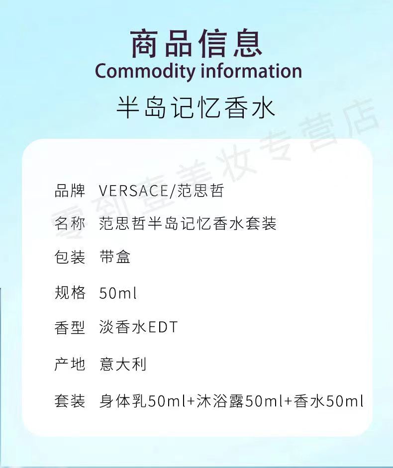 范思哲半岛记忆香水套装(香水50ml+身体啫喱50ml+沐浴露50ml)