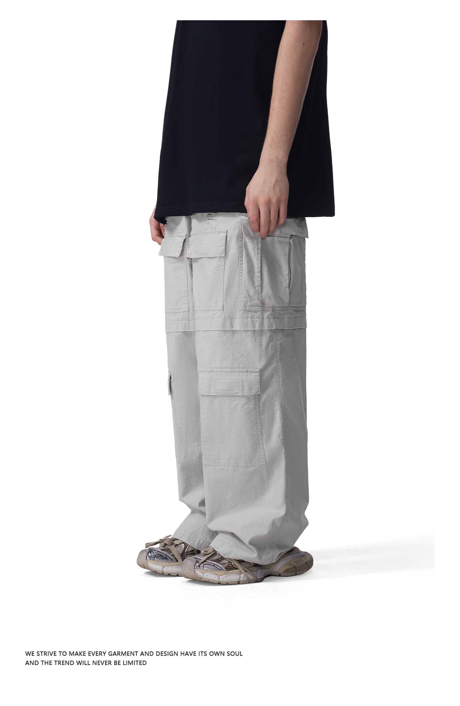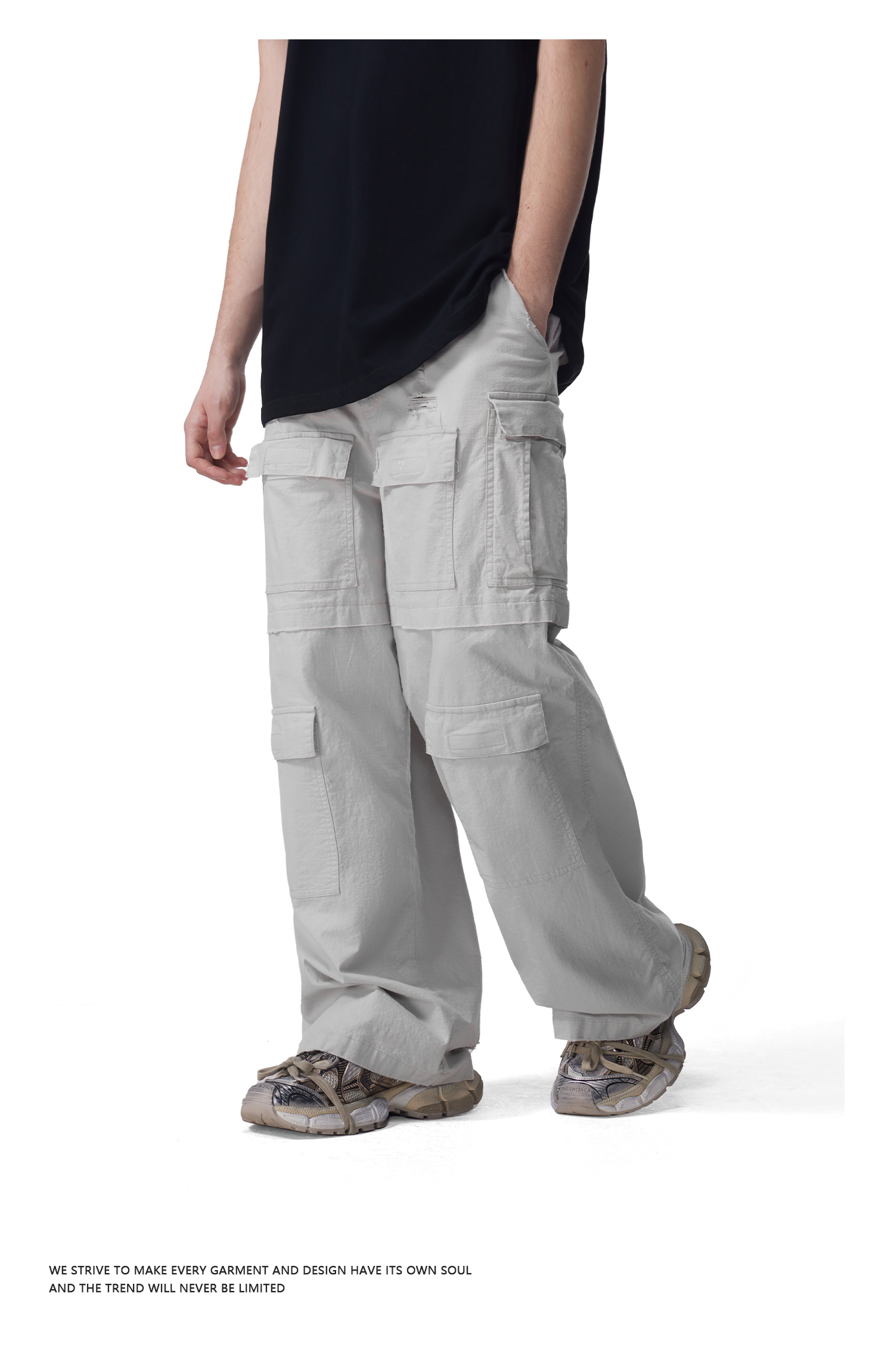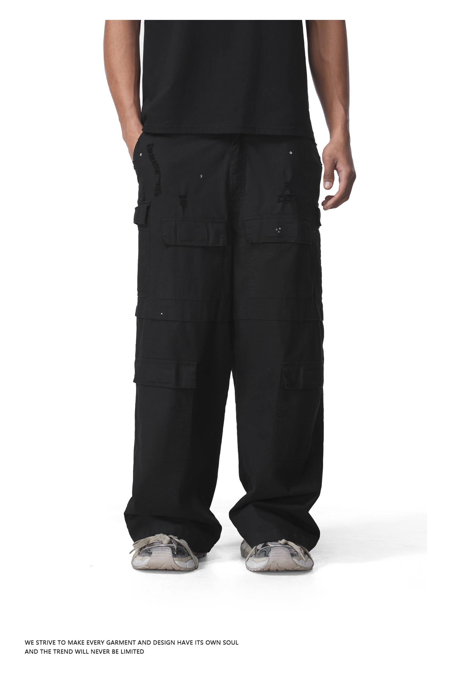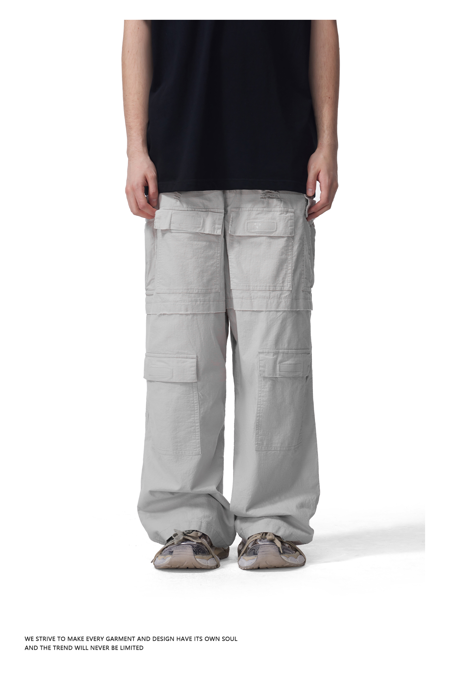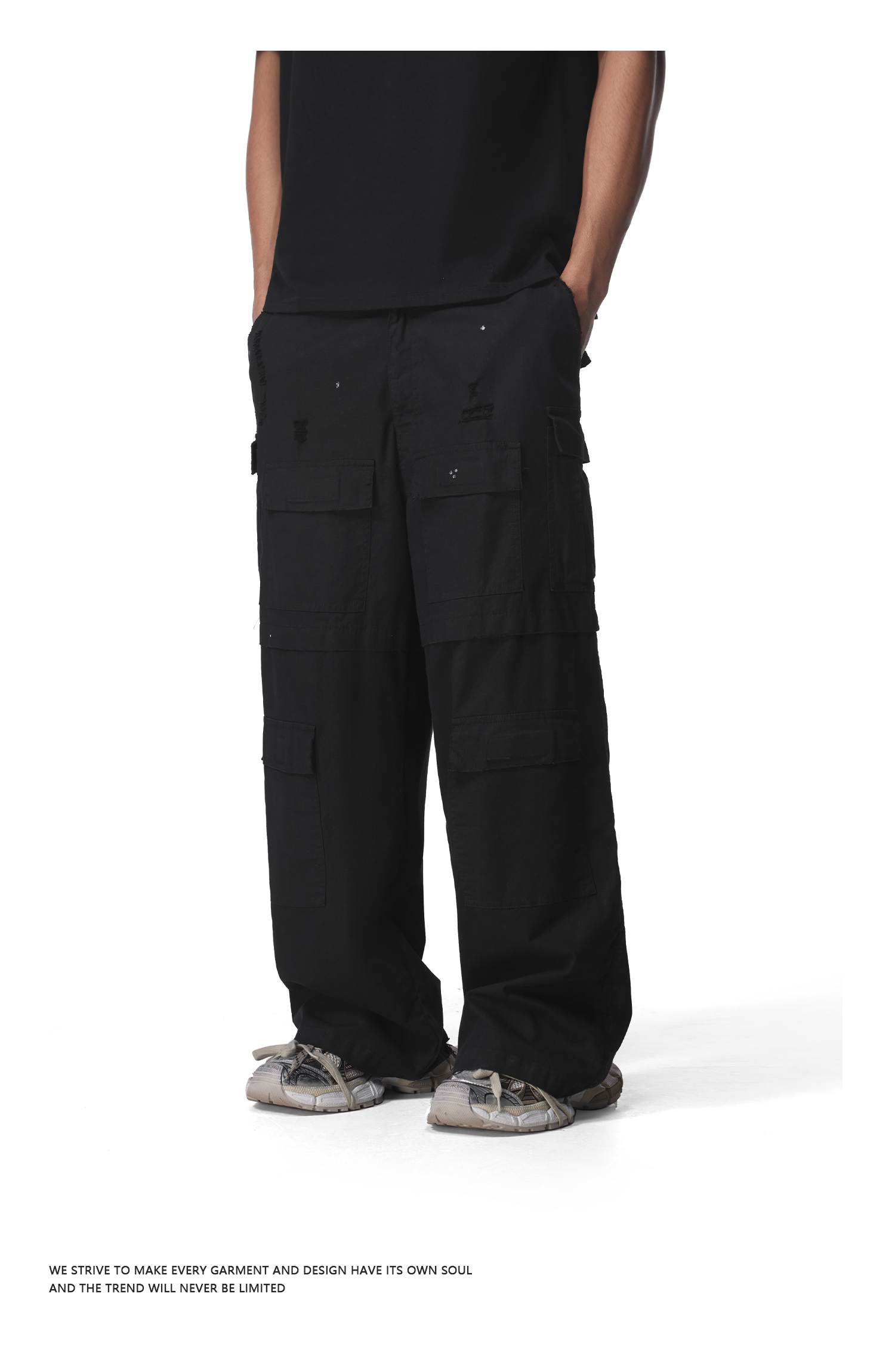 FDR官方店 多袋洗破工装裤男女美式运动宽松直筒裤情侣长裤休闲裤