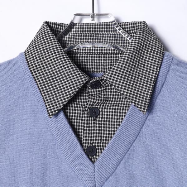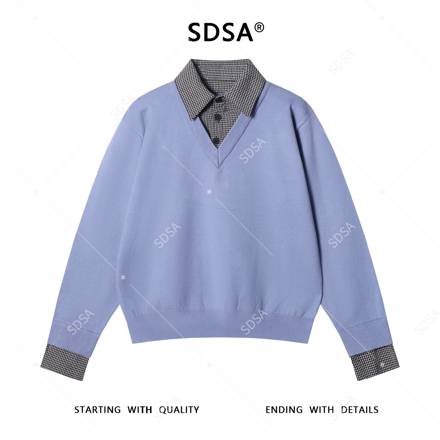 SDSA秋冬新款痞帅男装美式格子polo领假两件毛衣休闲百搭针织衫