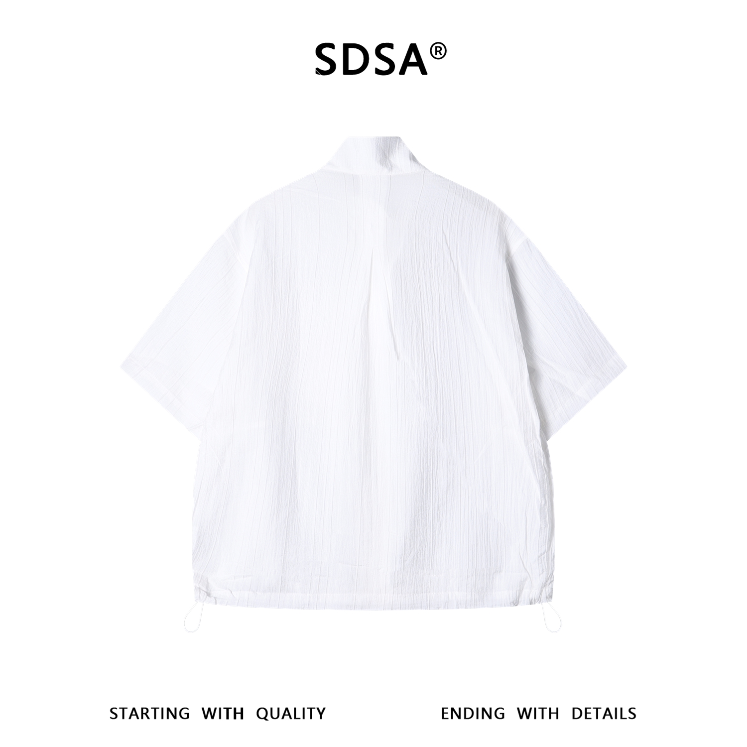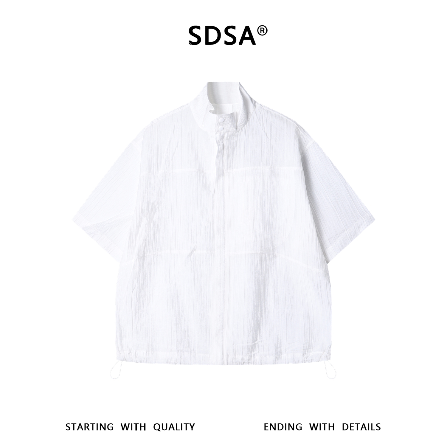 SDSA男装2026新款轻奢老钱风竖纹拉链立领短袖衬衫下摆松紧百搭