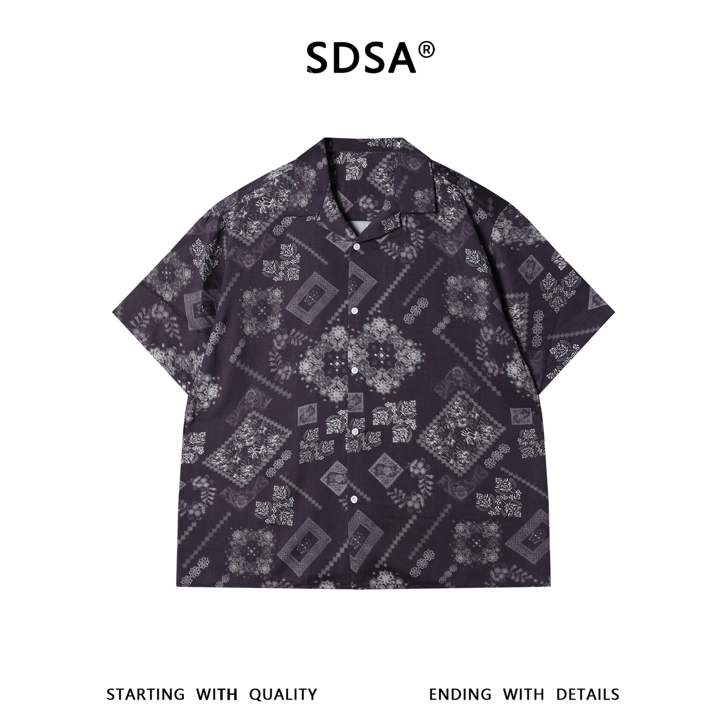 SDSA男装2026新款高贵轻奢复古佩斯利印花衬衫古巴领宽松短袖