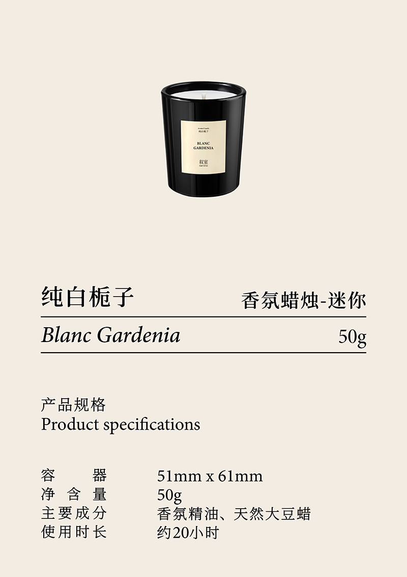 叙室纯白栀子 香氛蜡烛送礼高级家用持久生日伴手礼物男生女生