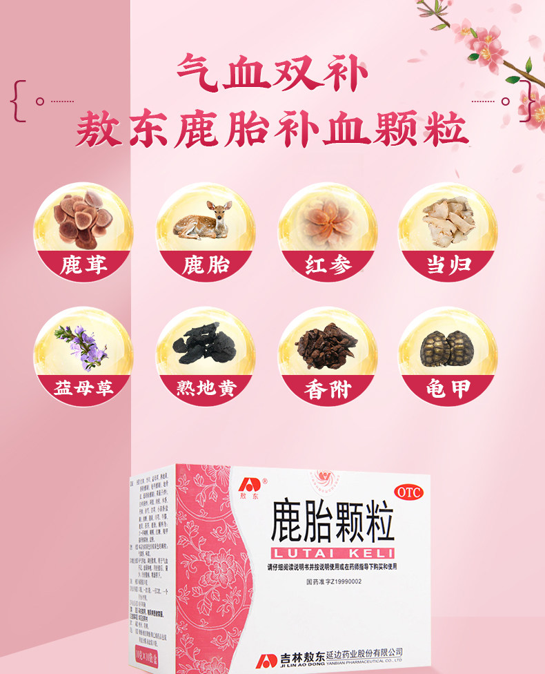 吉林敖东鹿胎颗粒女生补气养血调理药女人月经不调量少内膜薄备孕