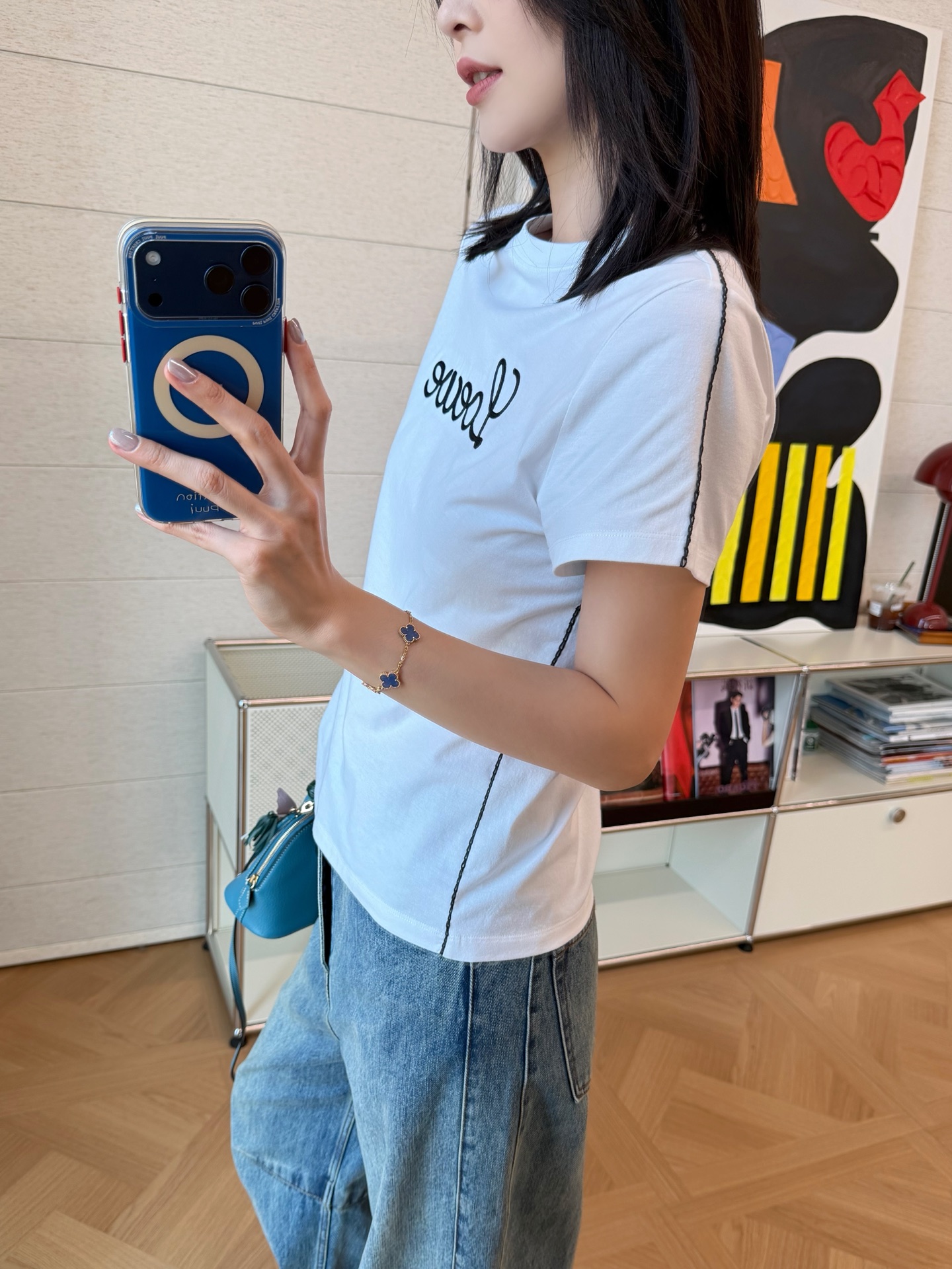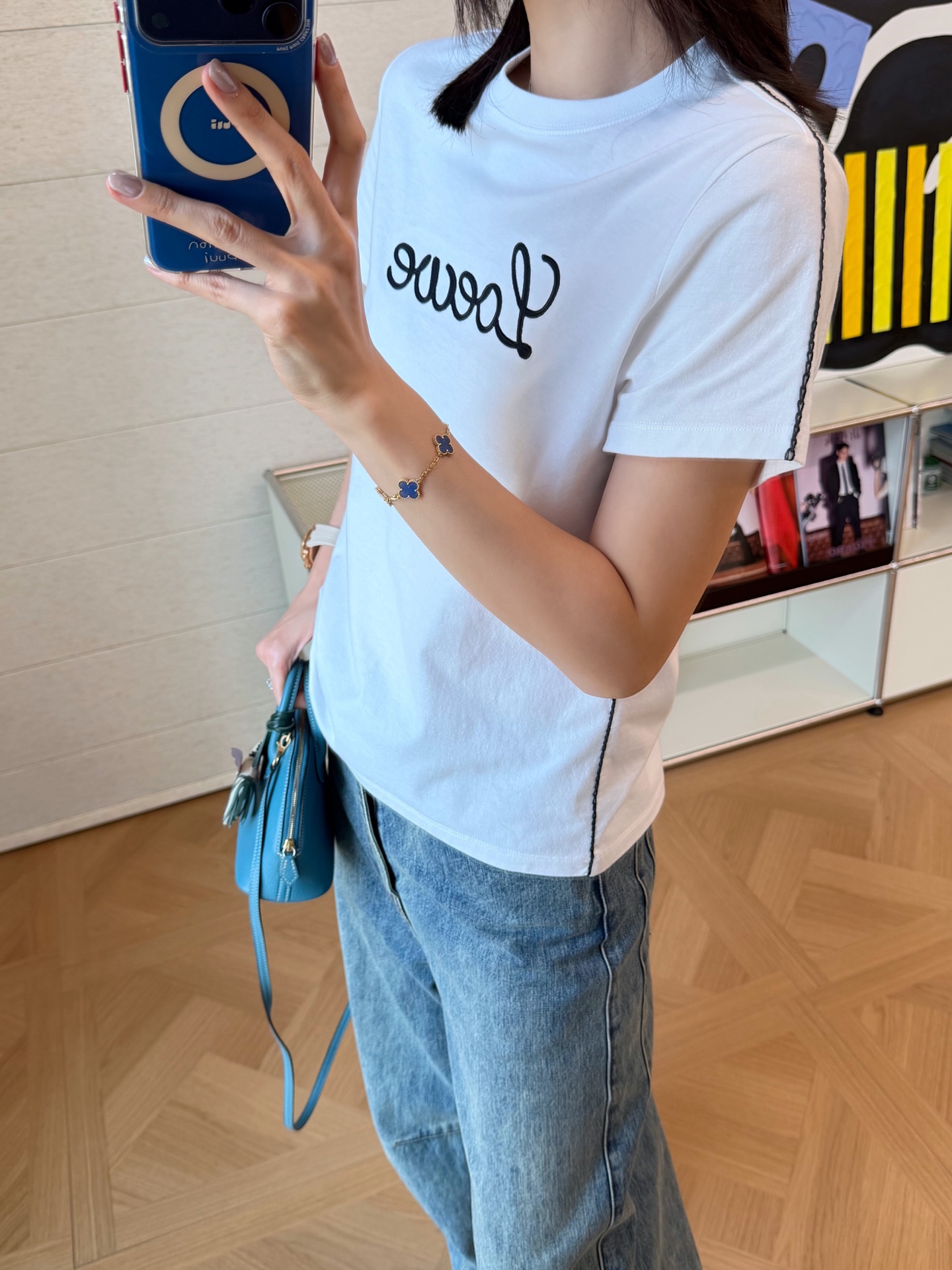 【新款现货发售】2026最新款🎶重工刺绣T恤⭐️简约刺绣字母T恤搭配手工缝制刺绣设计🔗真的爱了🥰🥰定制面料〰️这款T恤主打透气舒适的纯棉面料 🔜品质非常高级〰️版型上身巨巨巨显瘦💫 人手必备款 ⚠️搭配很简单✨舒适休闲 没什么束缚感 可盐可酷👍上身不挑人☑️百搭基础款🤩可轻松驾驭🤩码数SML