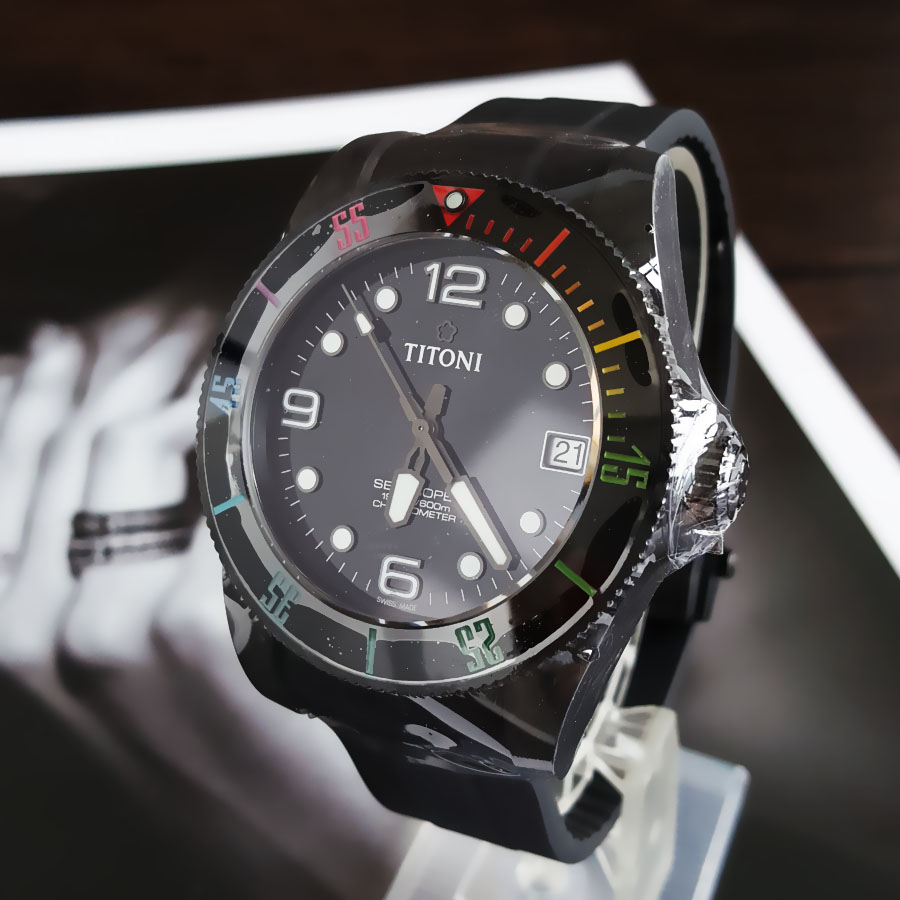 【99新】TITONI 梅花83600C-RA-256天文台认证自动机械机芯日期显示42MM(男款)Seascoper 海洋探索系列碳/陶瓷180426NJ24