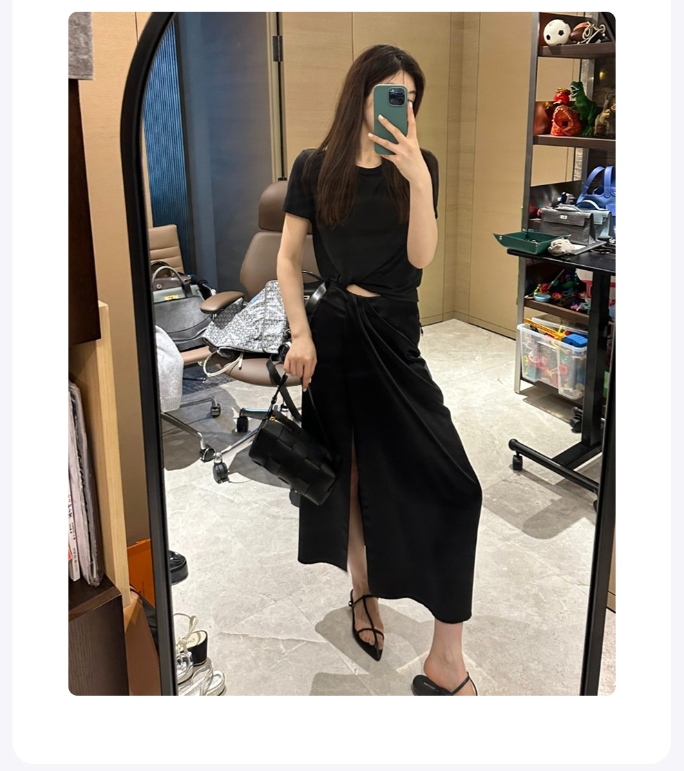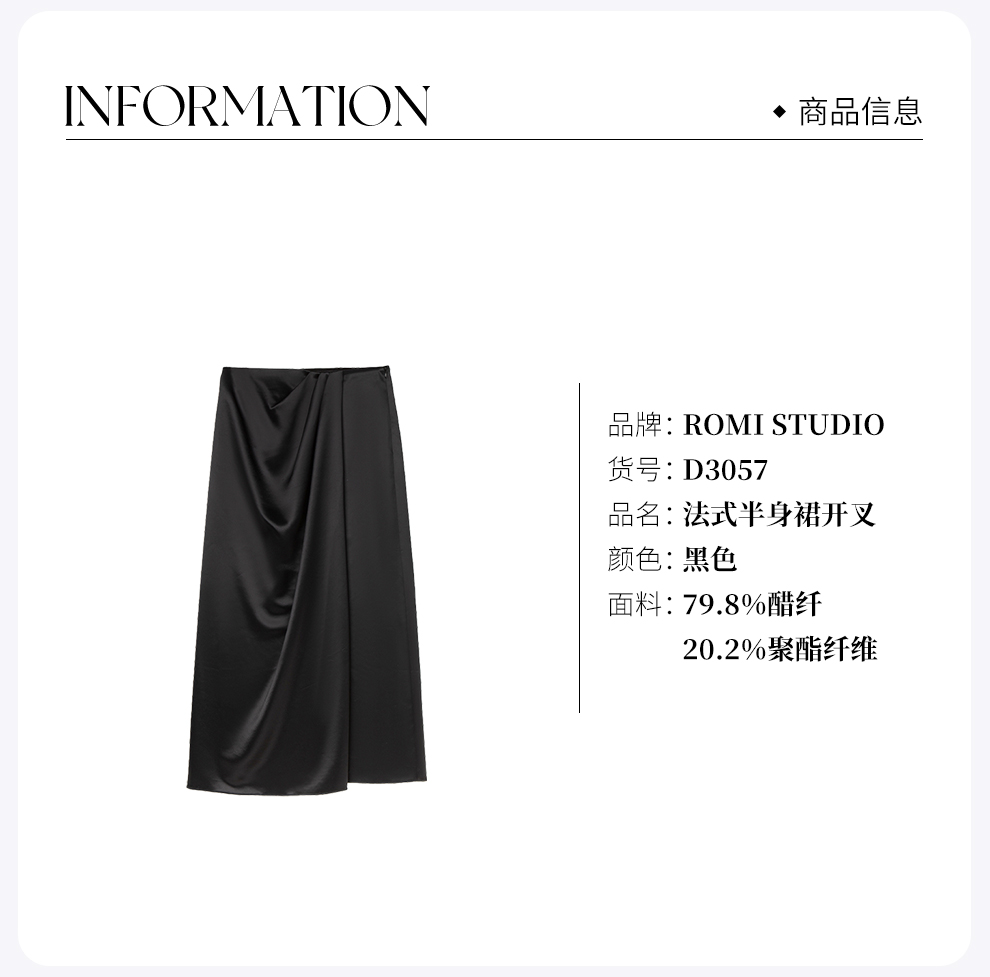 ROMI STUDIO四季可穿春夏气质百搭黑色半裙法式半身裙开叉D3057