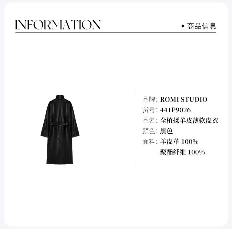 ROMI STUDIO“棕标甄选”全植揉羊皮薄软挺阔手工长款皮衣 441P9026