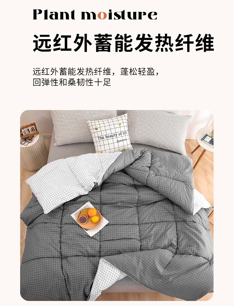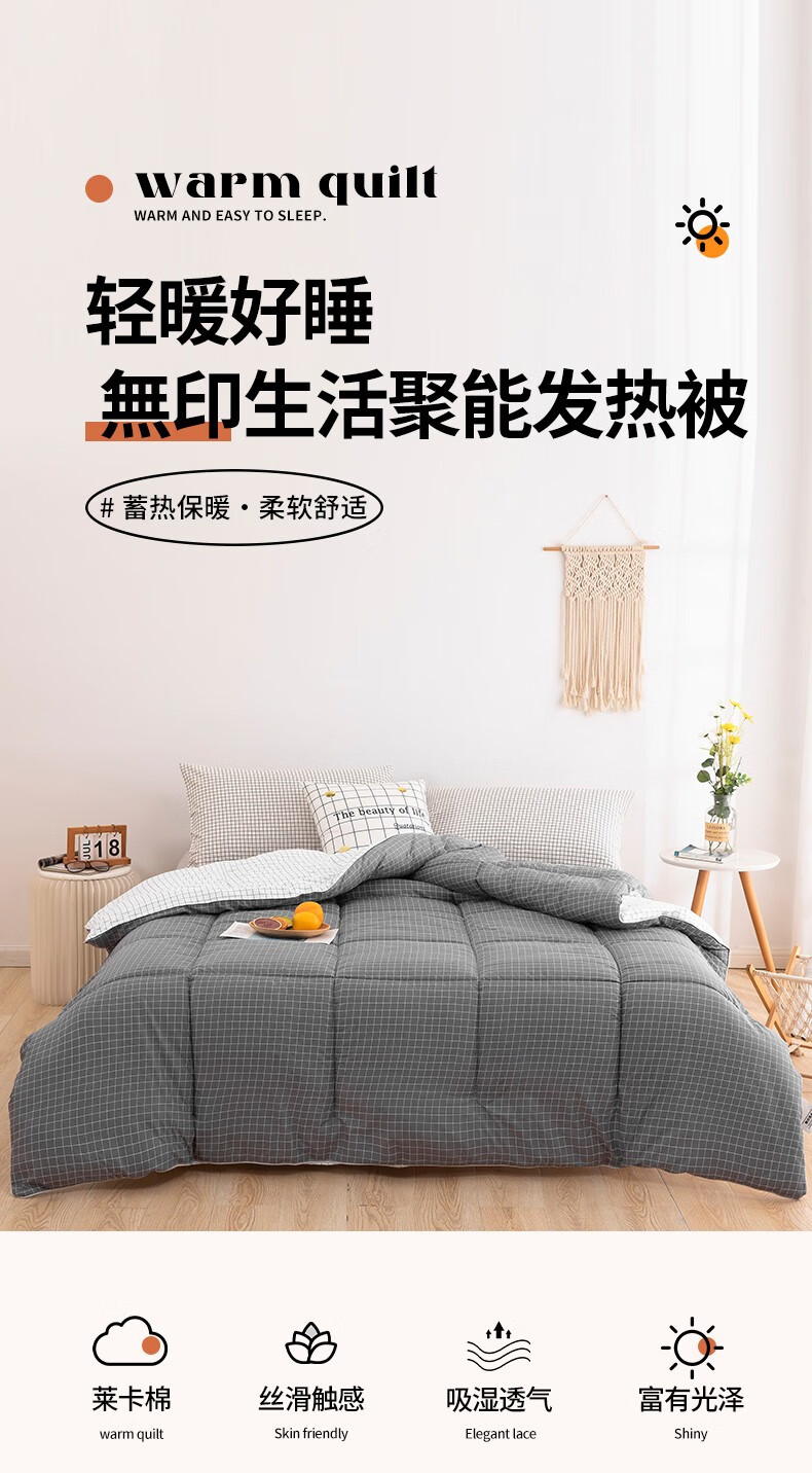 無印生活聚能发热被MJ-B21-80 灰白格双人冬被