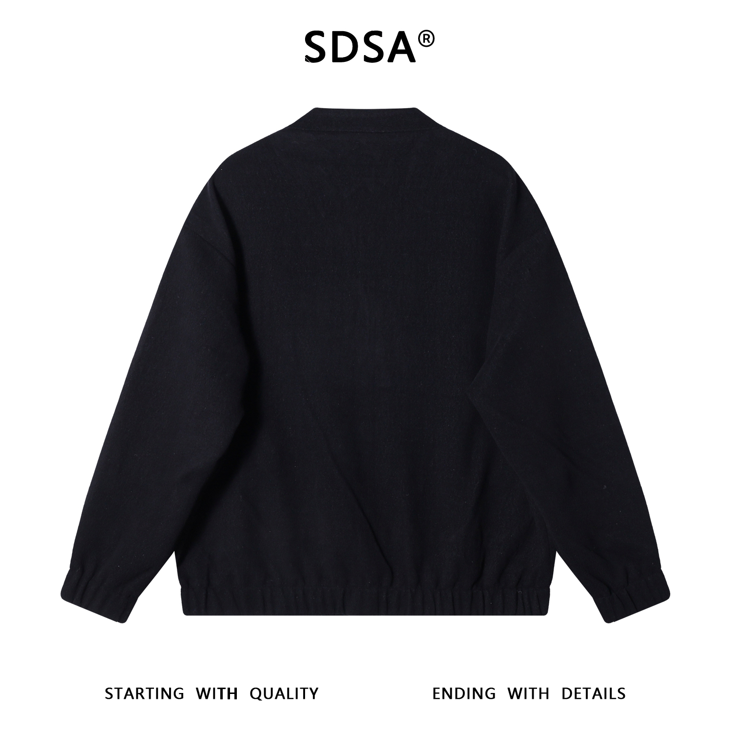 SDSA男士秋冬新款痞帅男装老钱风纯色简约V领夹克外套百搭宽松潮