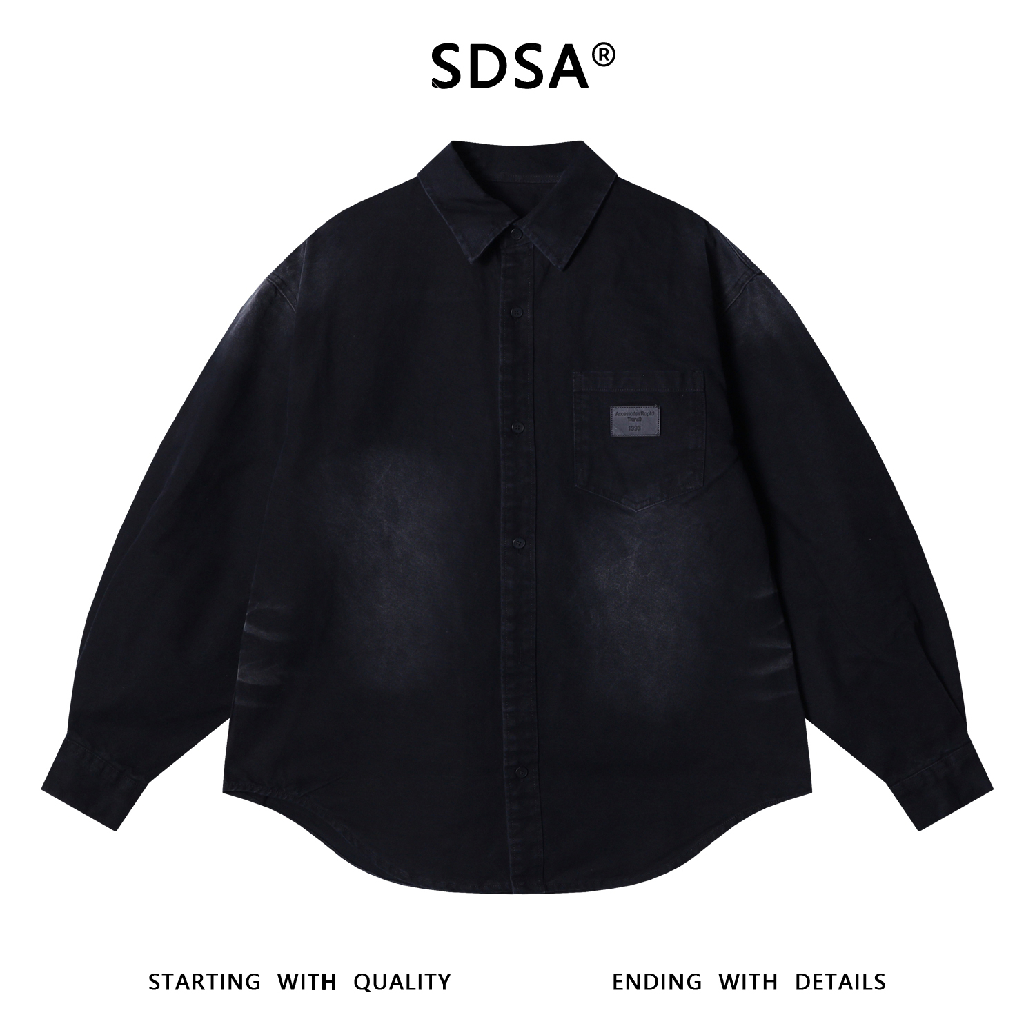 C5022SDSA男士秋冬新款痞帅男装时尚韩版做旧纽扣翻领牛仔长袖衬衫百搭