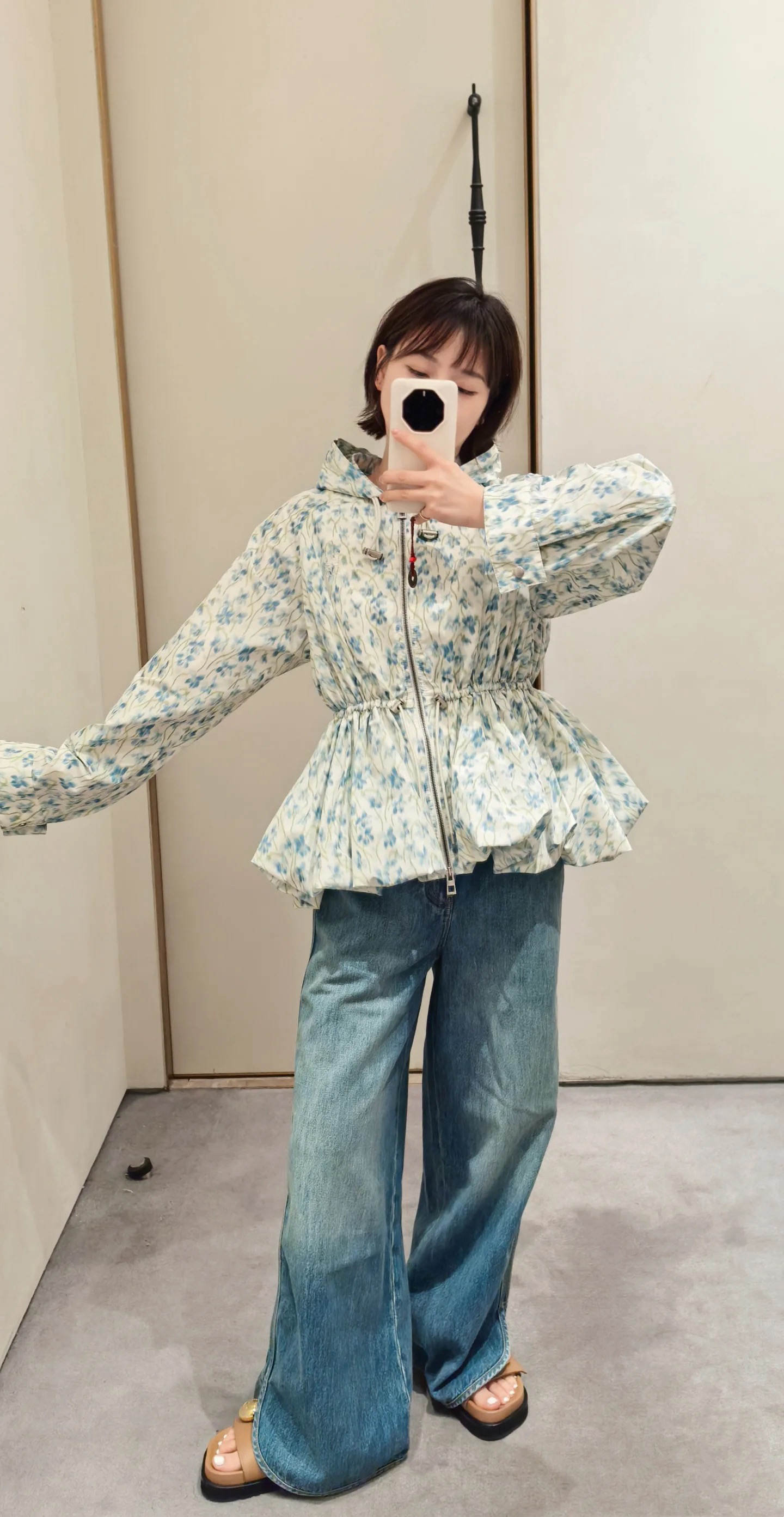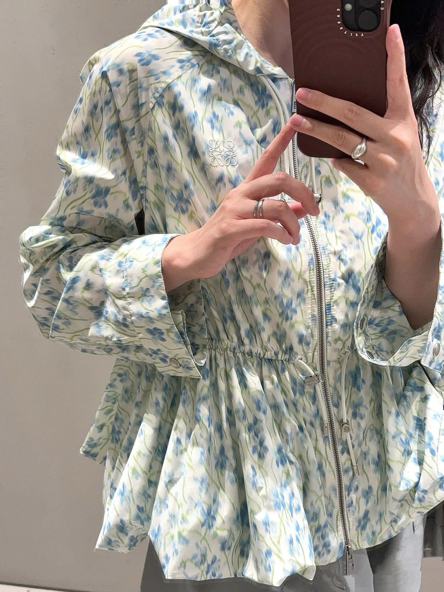 罗意威25早秋新款碎花风衣外套