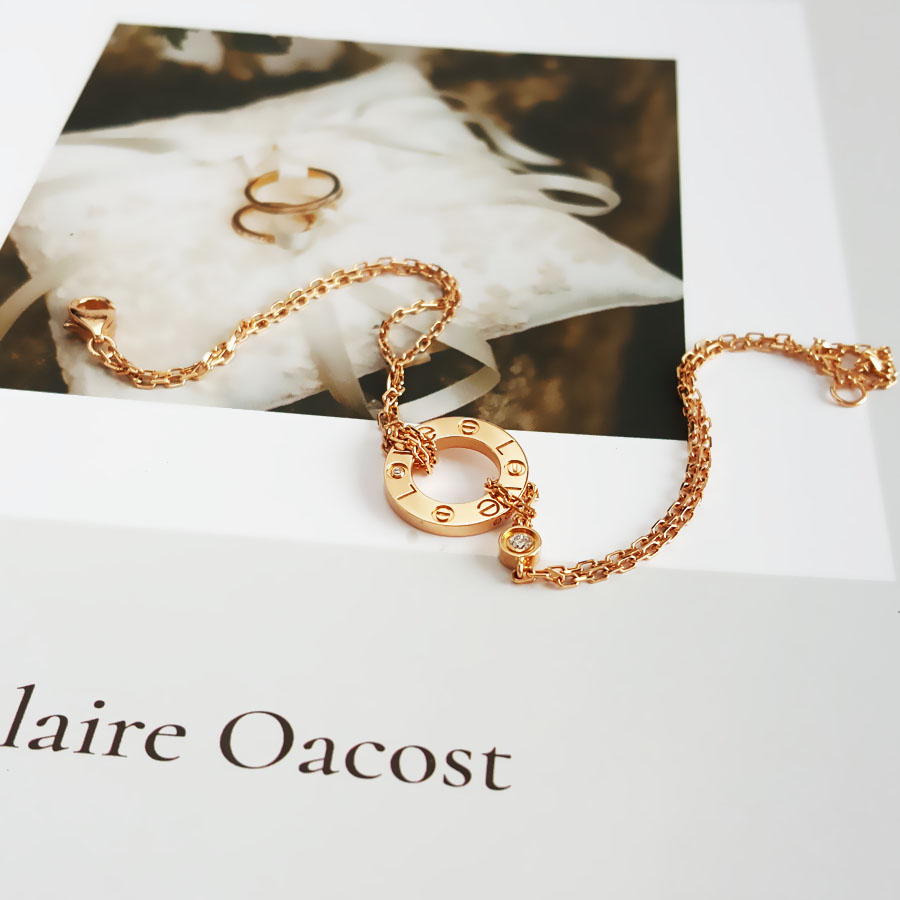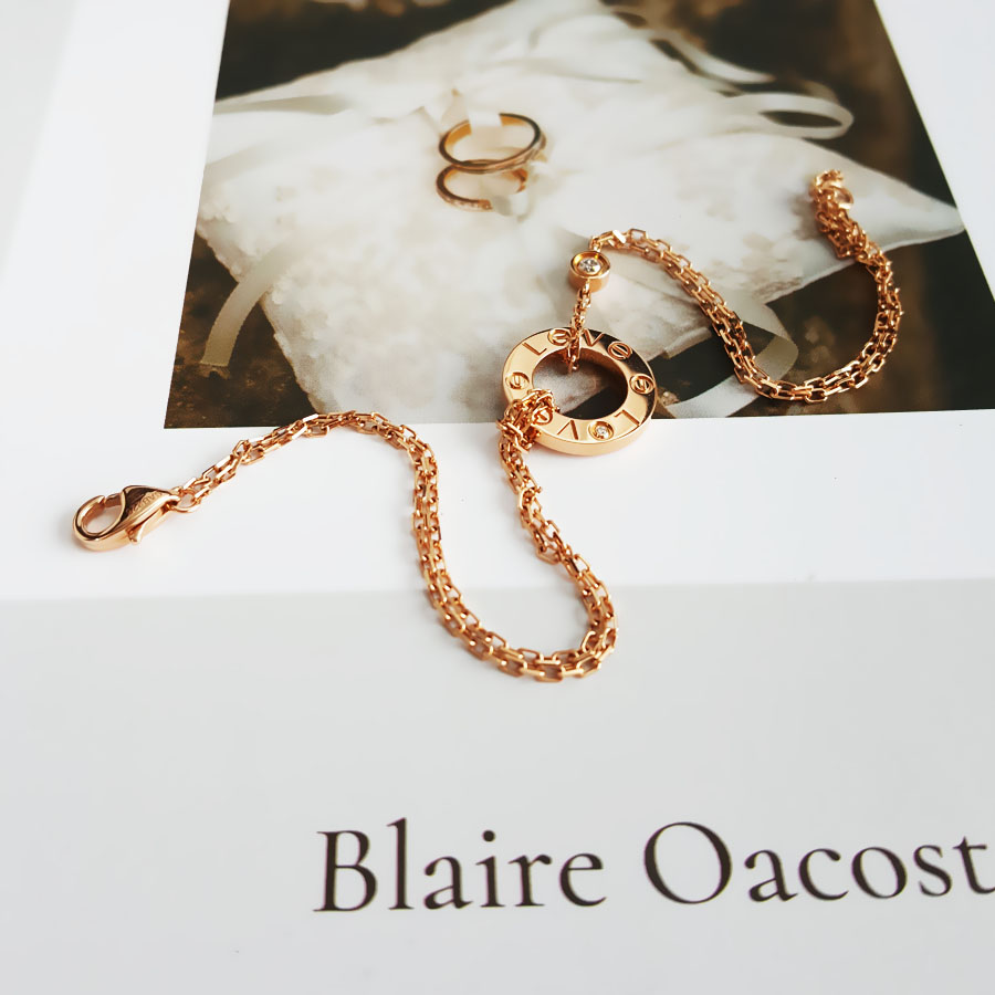 款式 | 玫瑰金镶2钻小圆饼LOVE手链 |