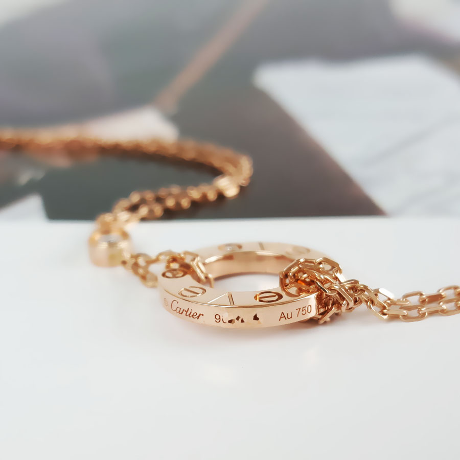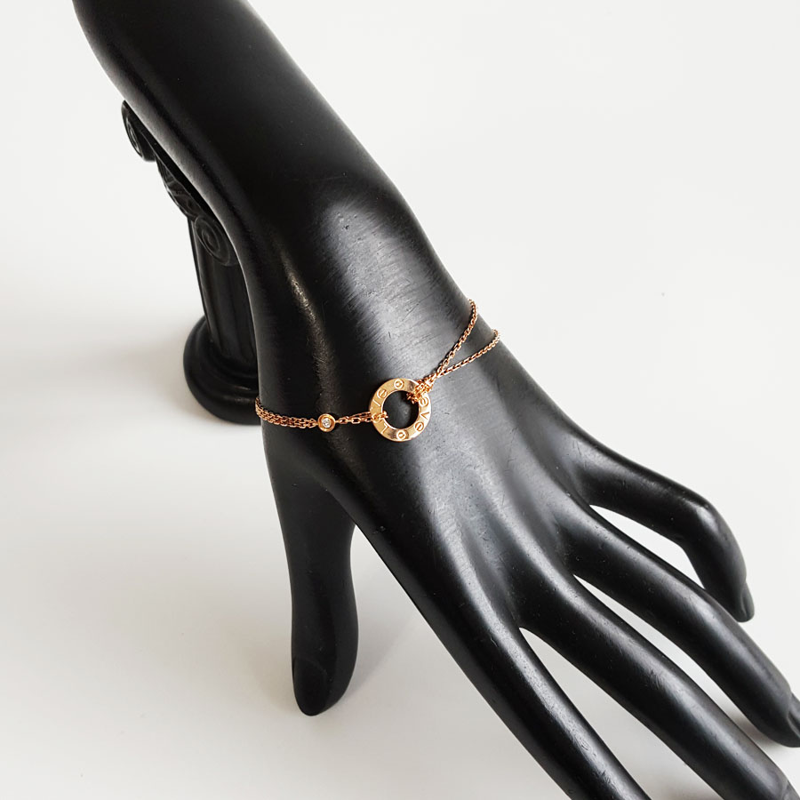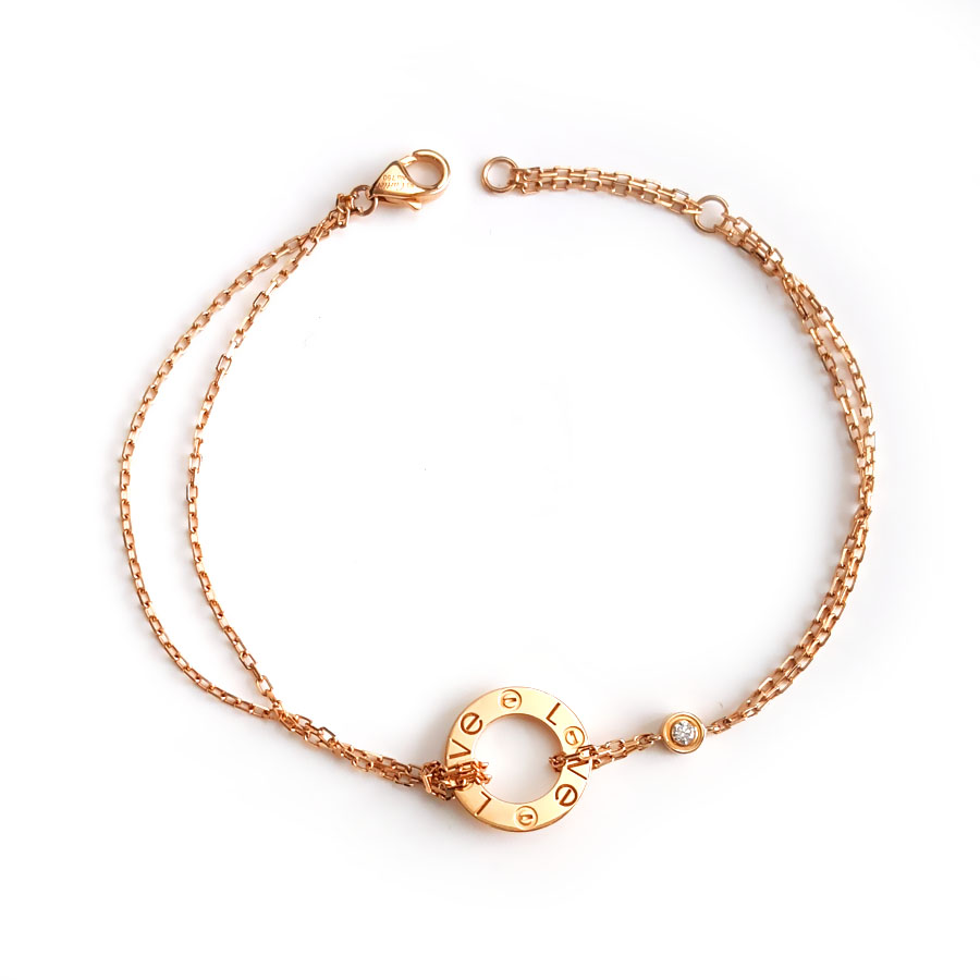 【95新】Cartier卡地亚LOVE系列B6063600玫瑰金镶2钻小圆饼LOVE手链 链长约18.5cm女士300126HS21