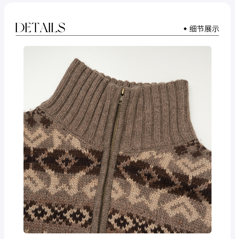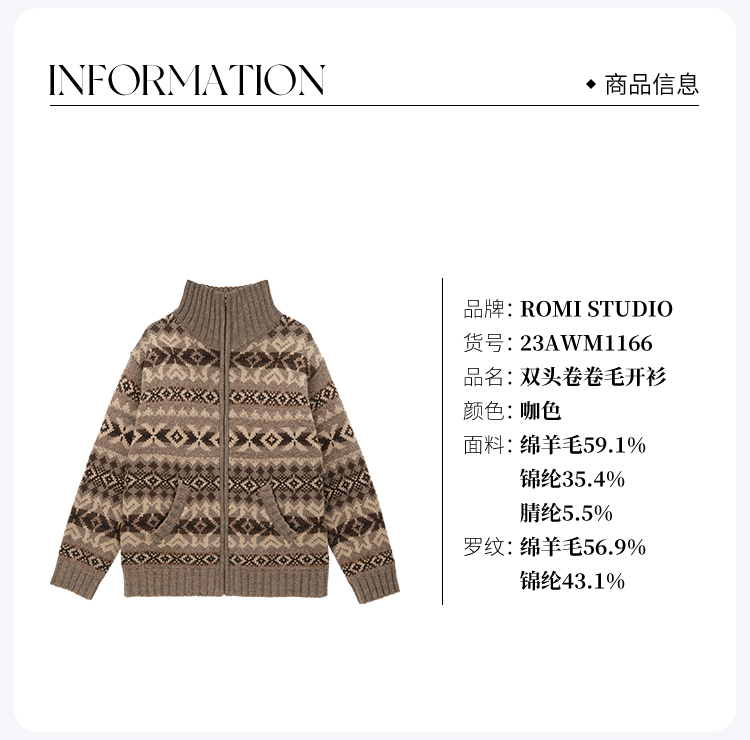 ROMI STUDIO“美式复古”腔调穿搭绵羊毛混纺拉链针织开衫23AWM1166