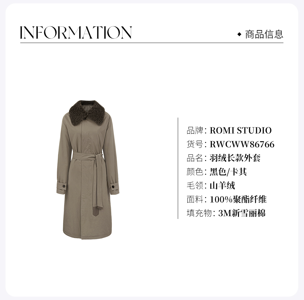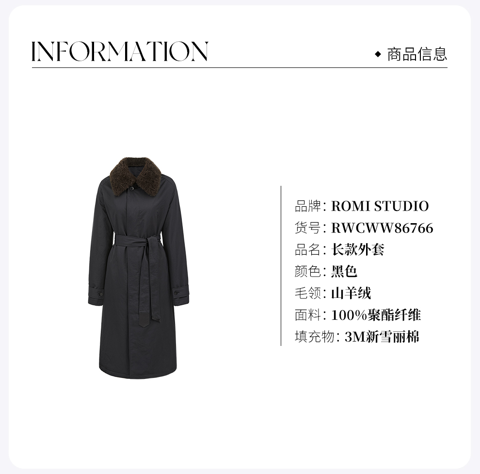 ROMI STUDIO轻柔山羊绒毛领三防新雪丽3M棉层长款外套RWCWW86766