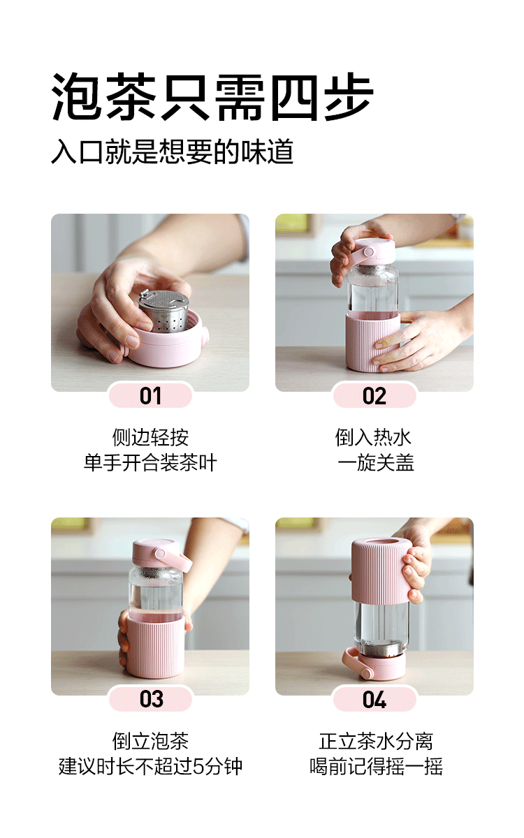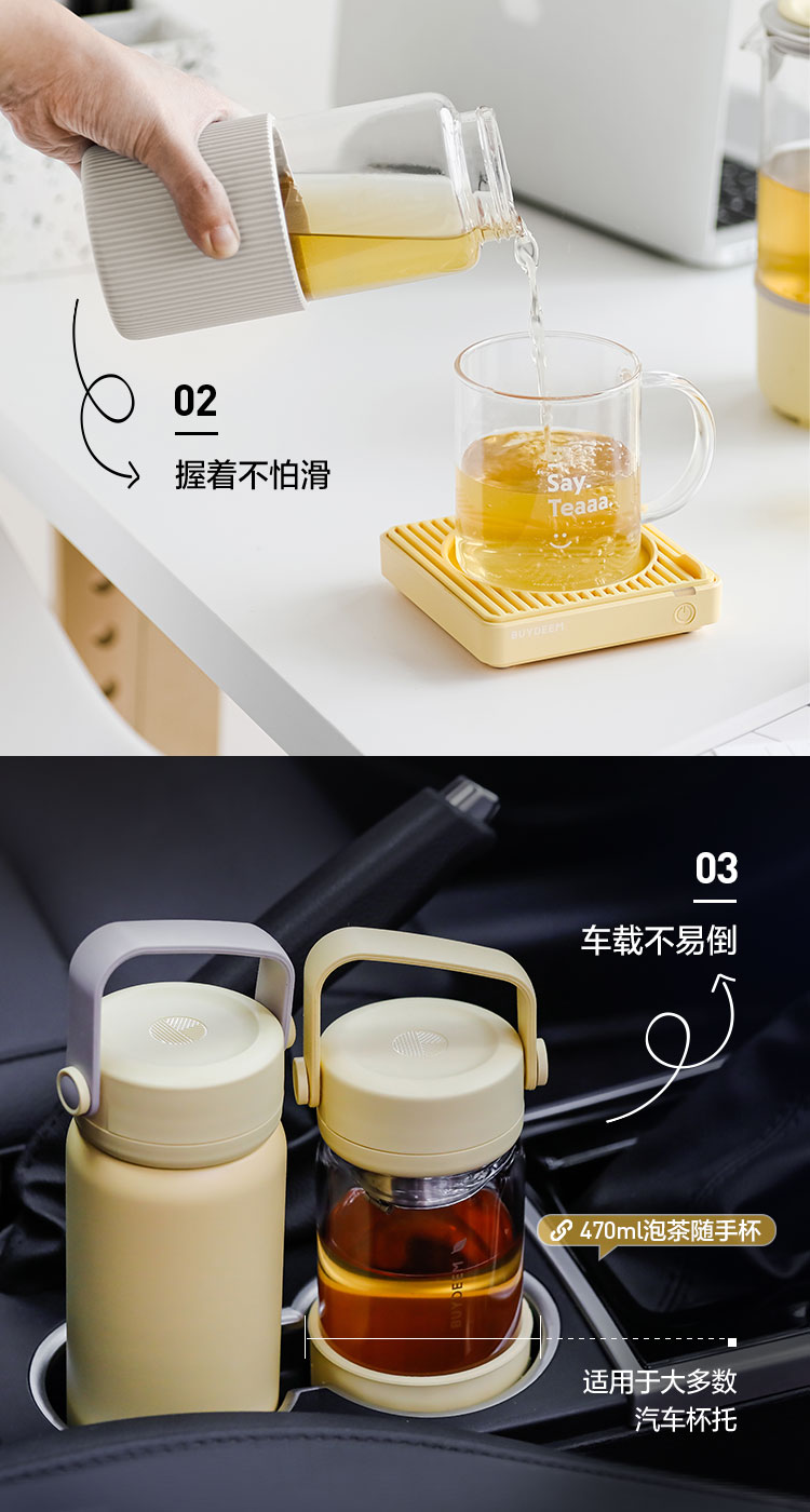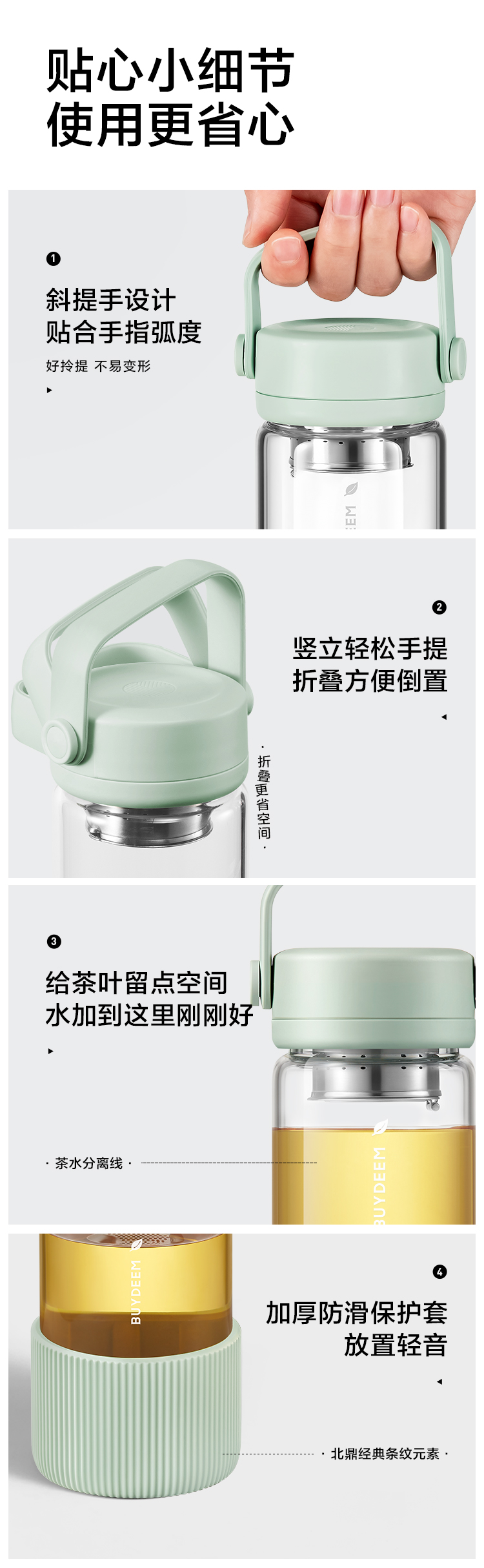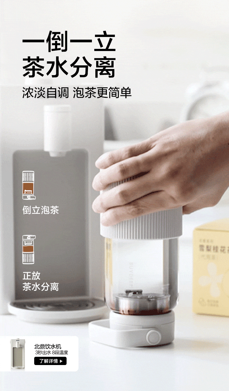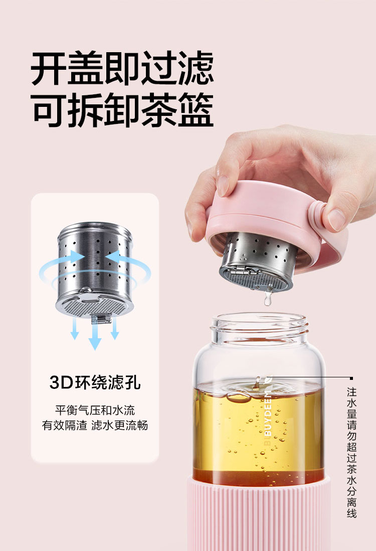 北鼎随手泡茶杯 茶水分离 高硼硅玻璃杯水杯女生情侣随手果茶杯