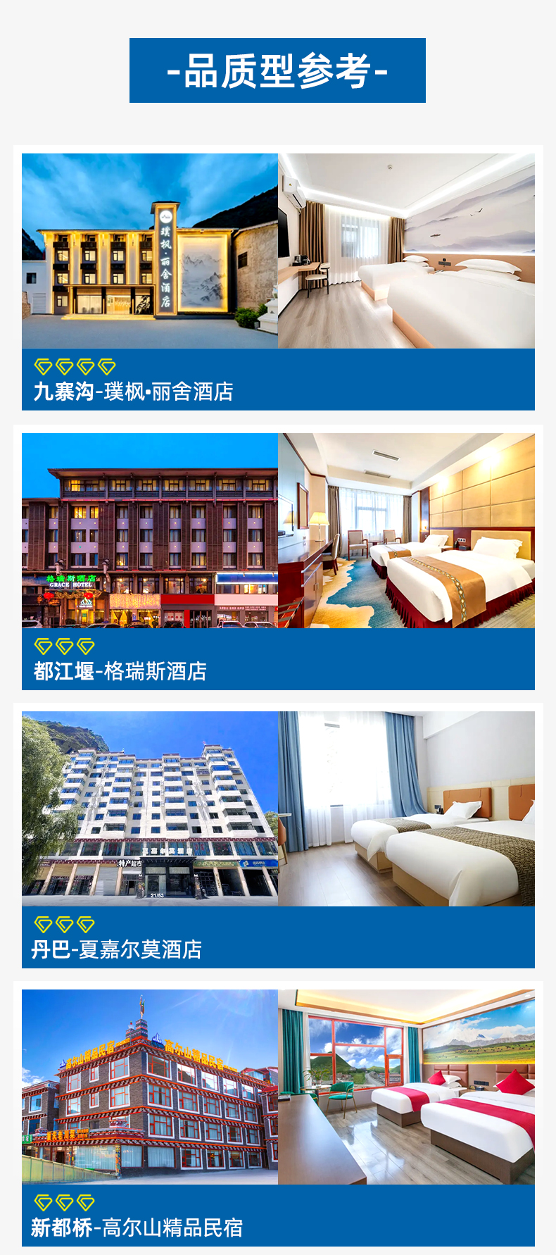 九寨沟口(3钻):麓居酒店/九寨沟燕栖美居酒店/正顺享达酒店/溪畔明珠或同级