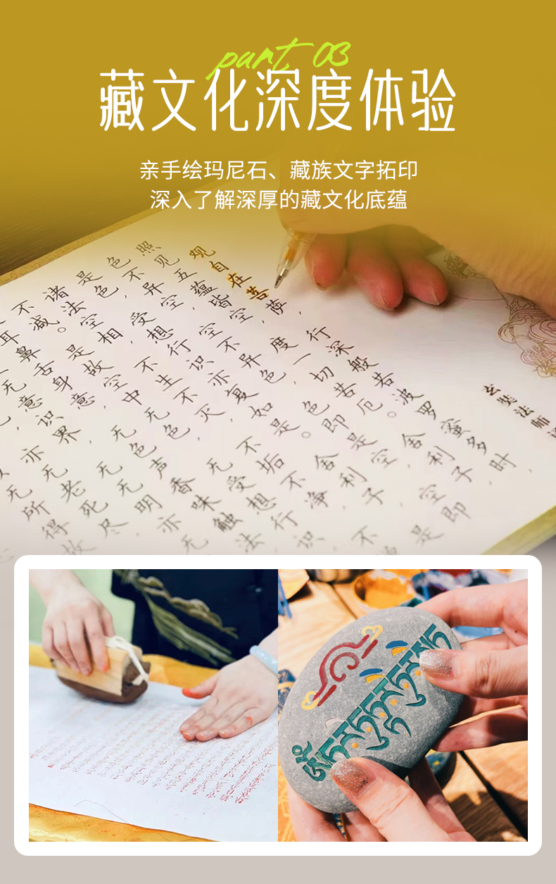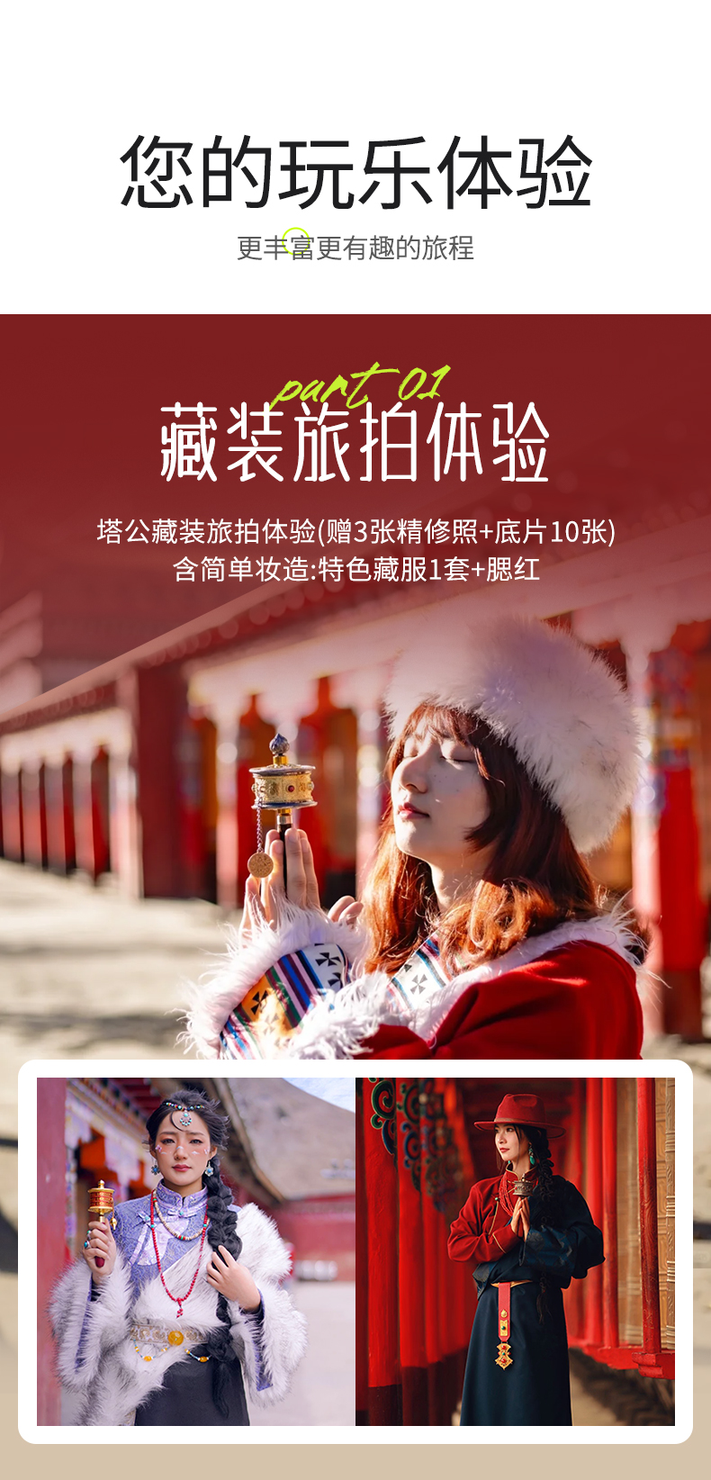 赠 成都三环内接早、便携式氧气1瓶+旅拍三宝1套/人、塔公藏装旅拍体验(含特色藏服1套+腮红+底片10张+精修3张)、手绘玛尼石+体验藏式吉祥文字拓印、随车配备单反或无人机(节假日除外)、撒隆达祈福体验、非遗唐卡绘画体验。