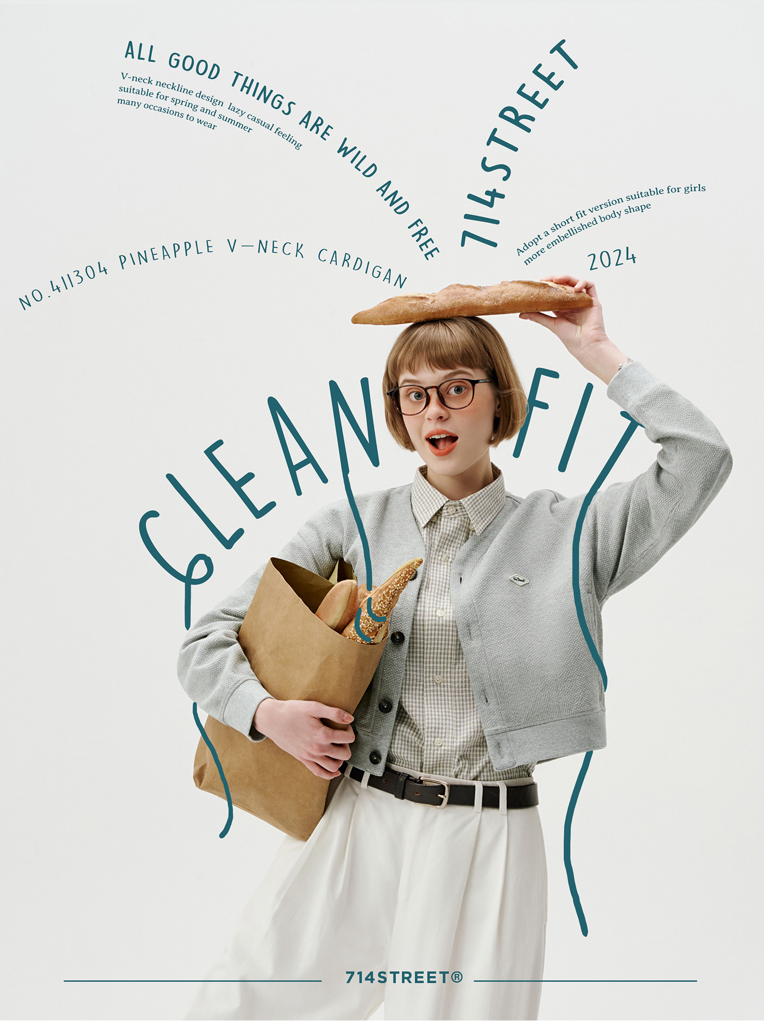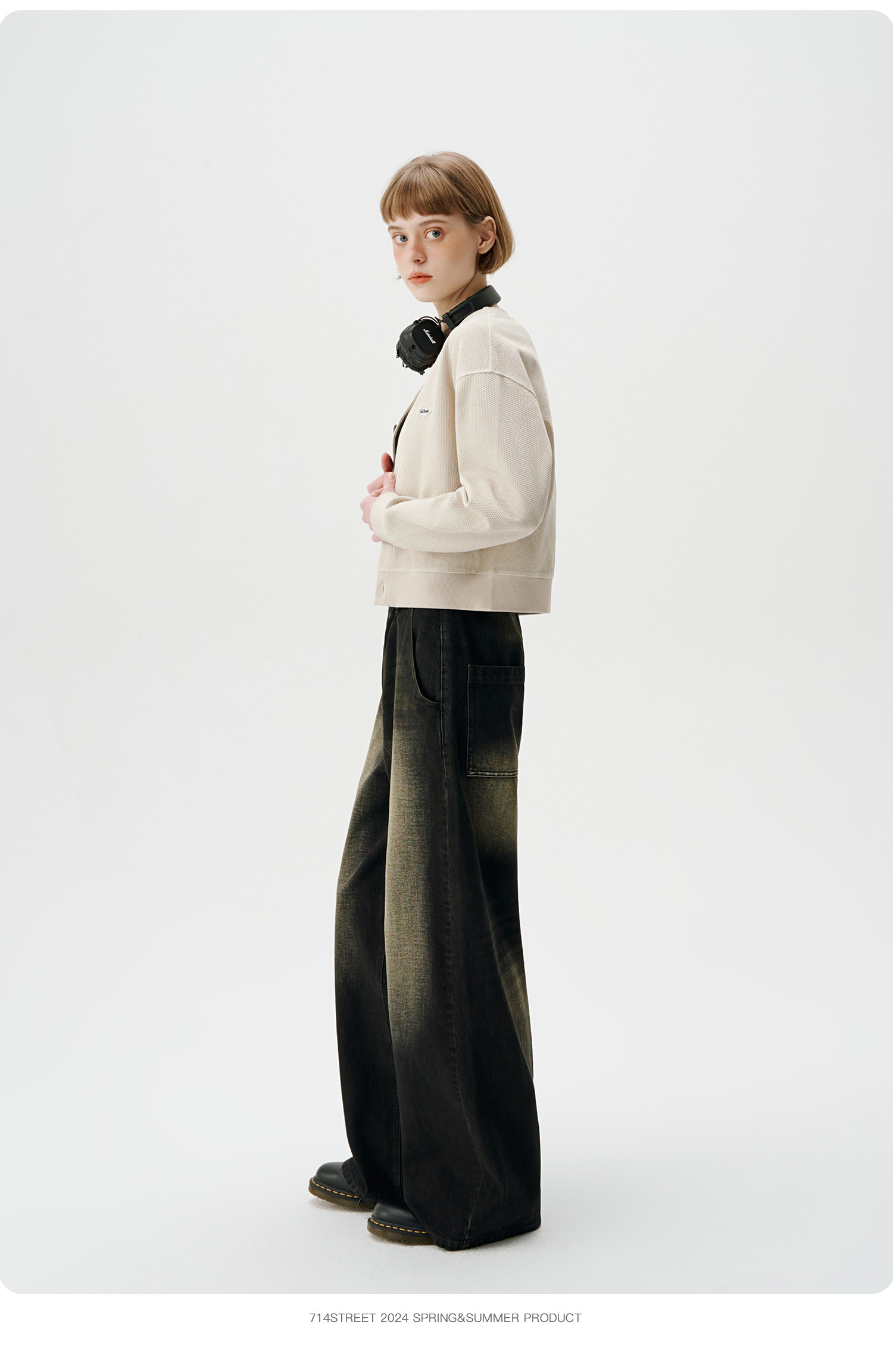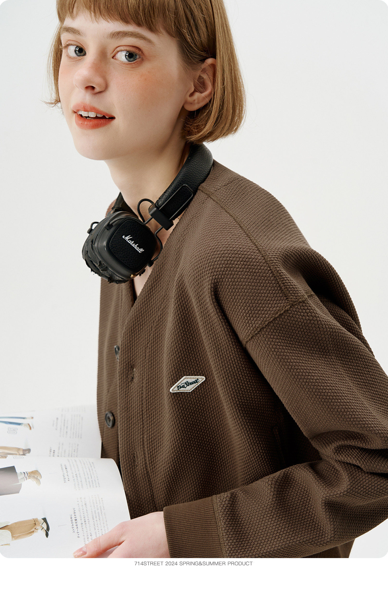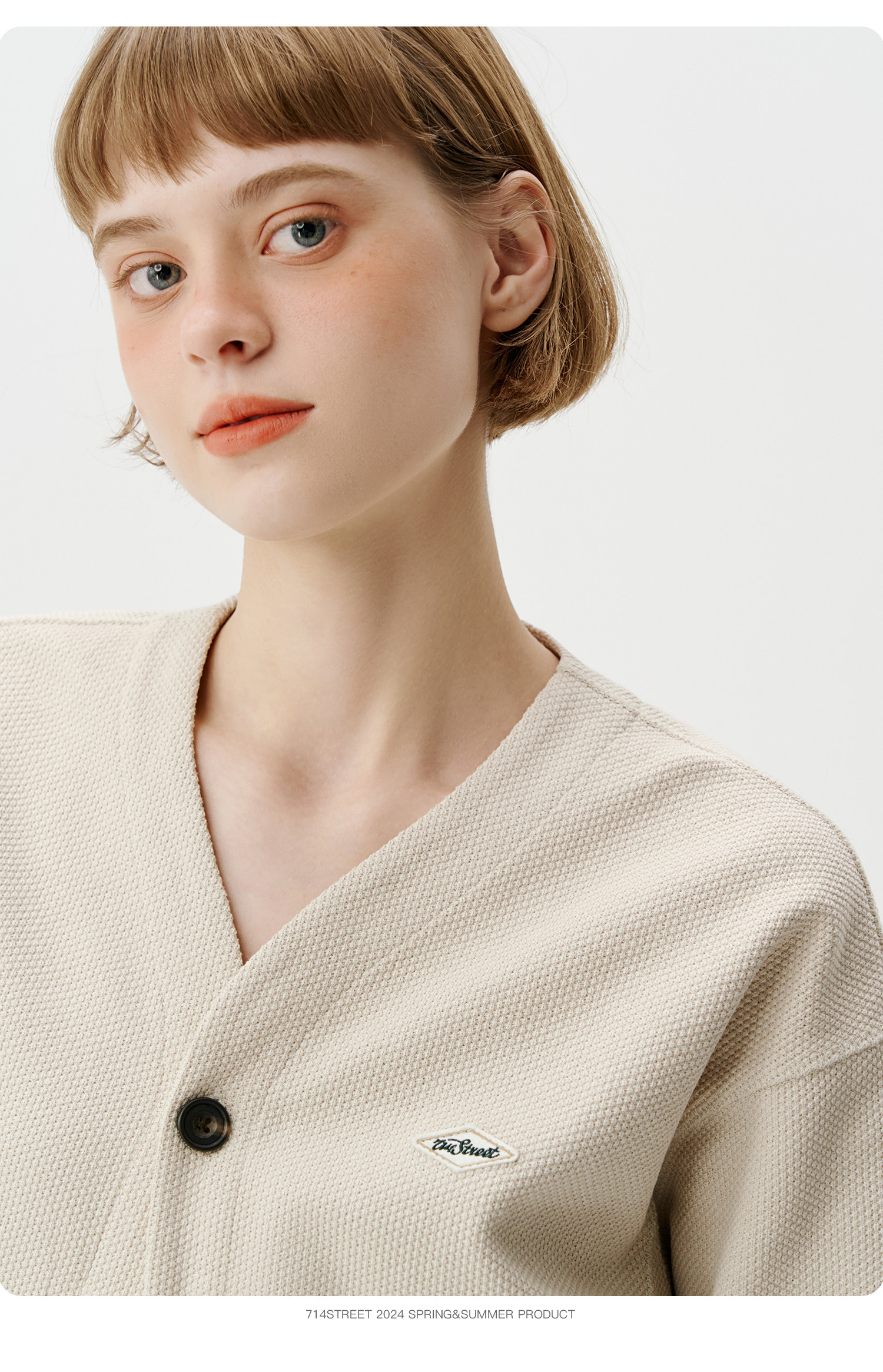 714street潮牌V领开衫外套女2024春秋新款情侣装休闲复古卫衣