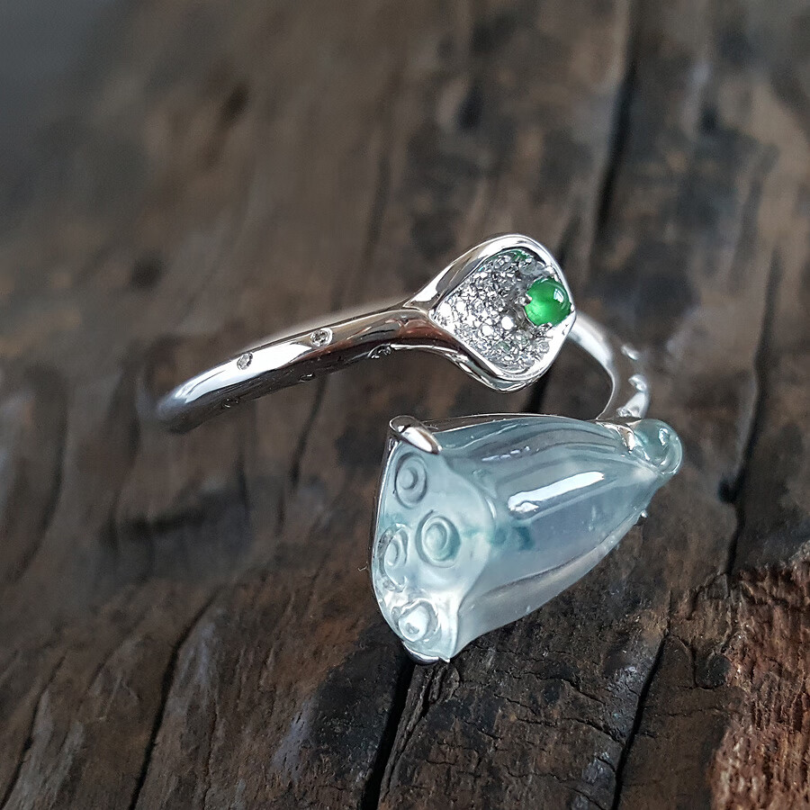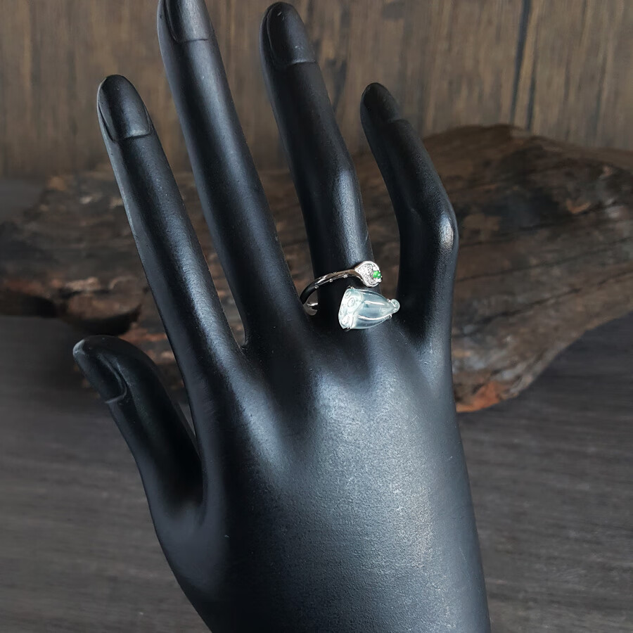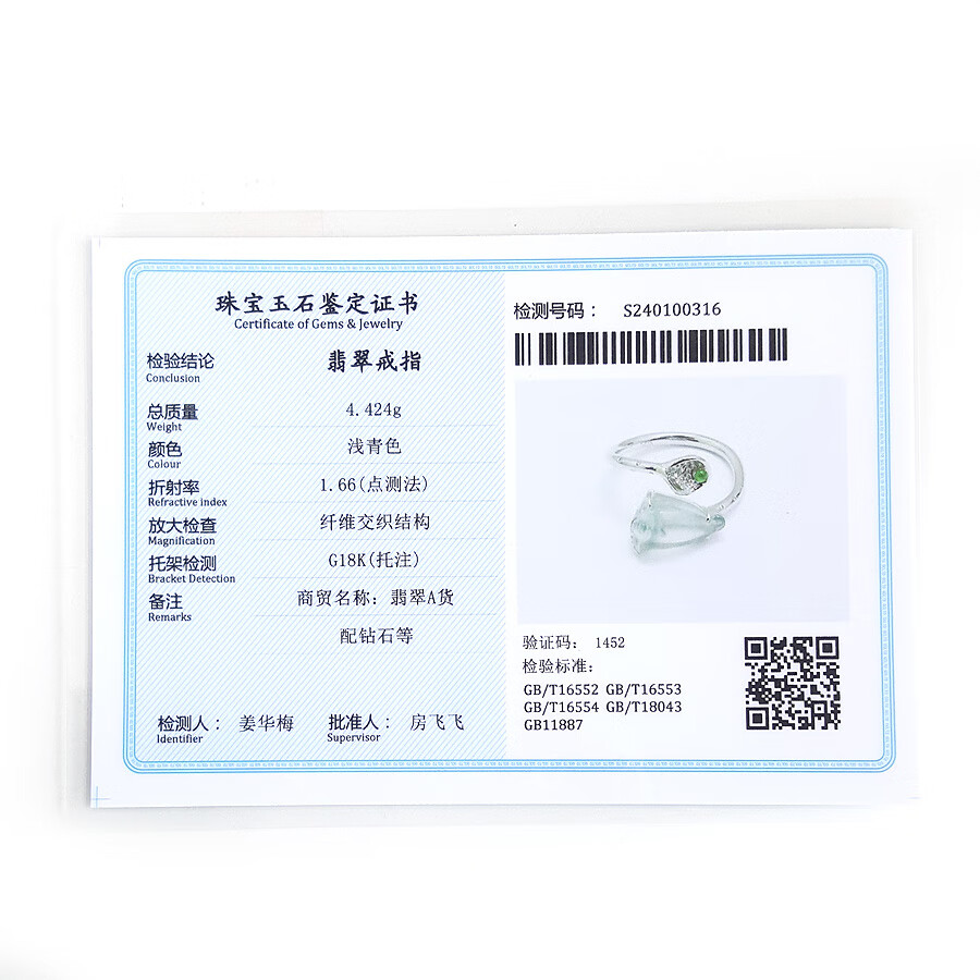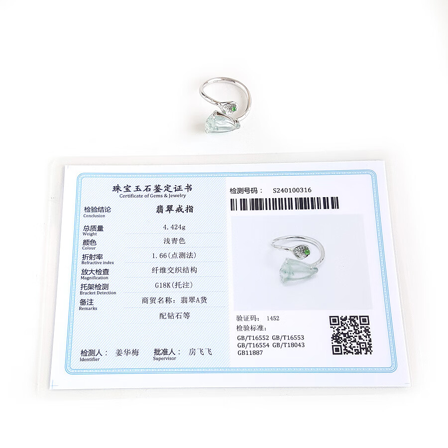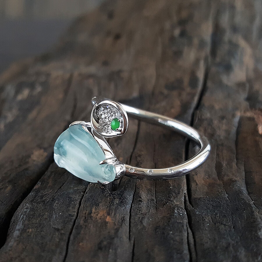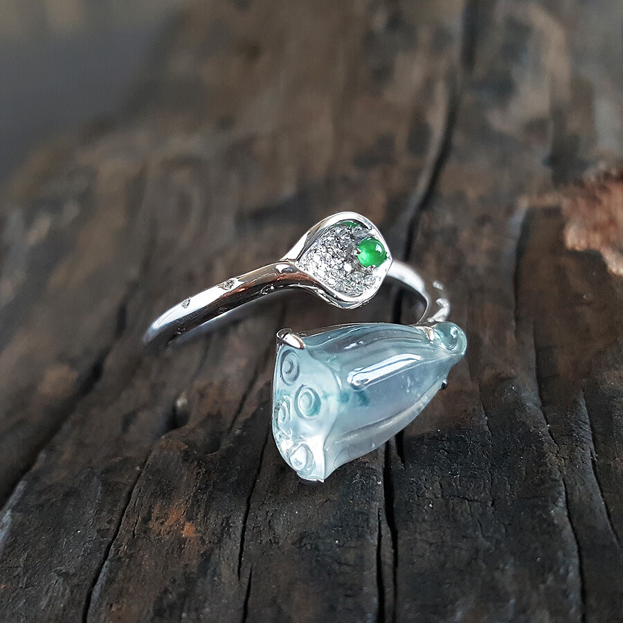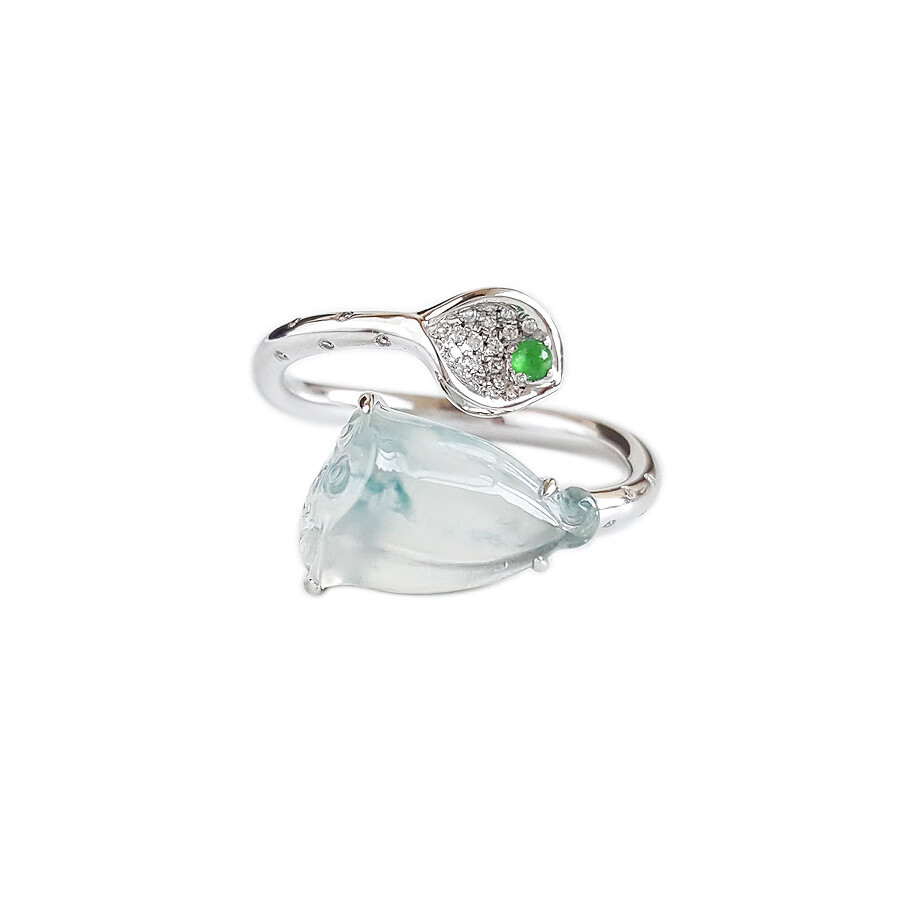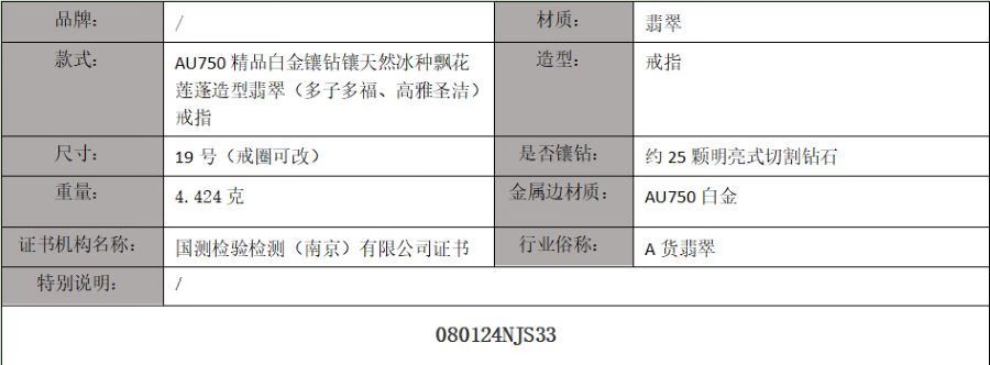 【天然正品】AU750精品白金镶钻镶天然冰种飘花莲蓬造型翡翠(多子多福、高雅圣洁)戒指19号080124NJS33
