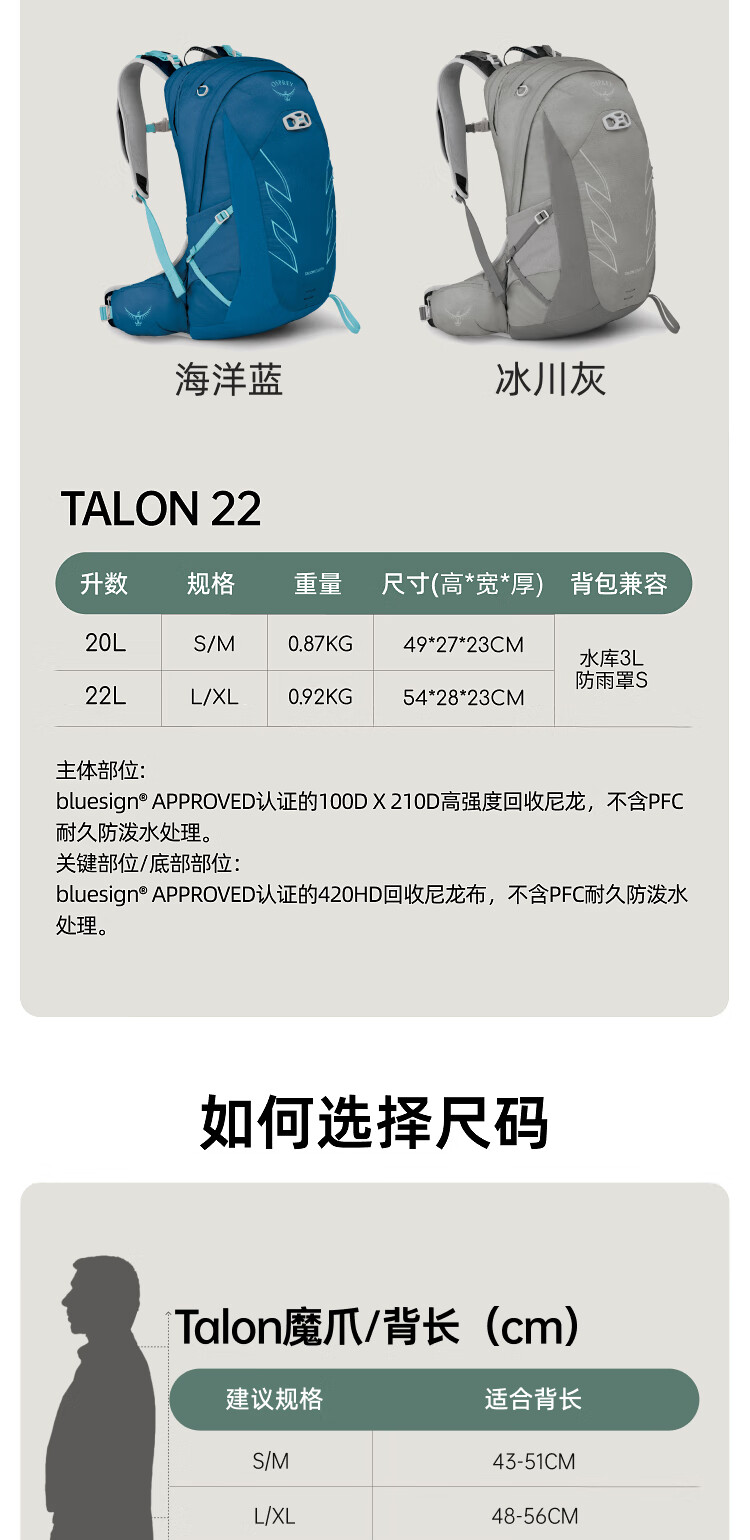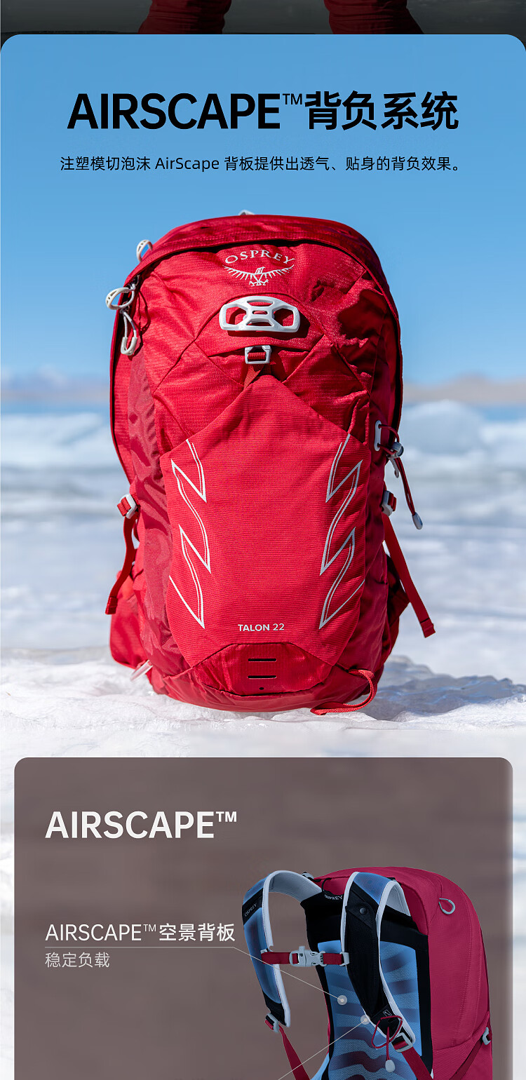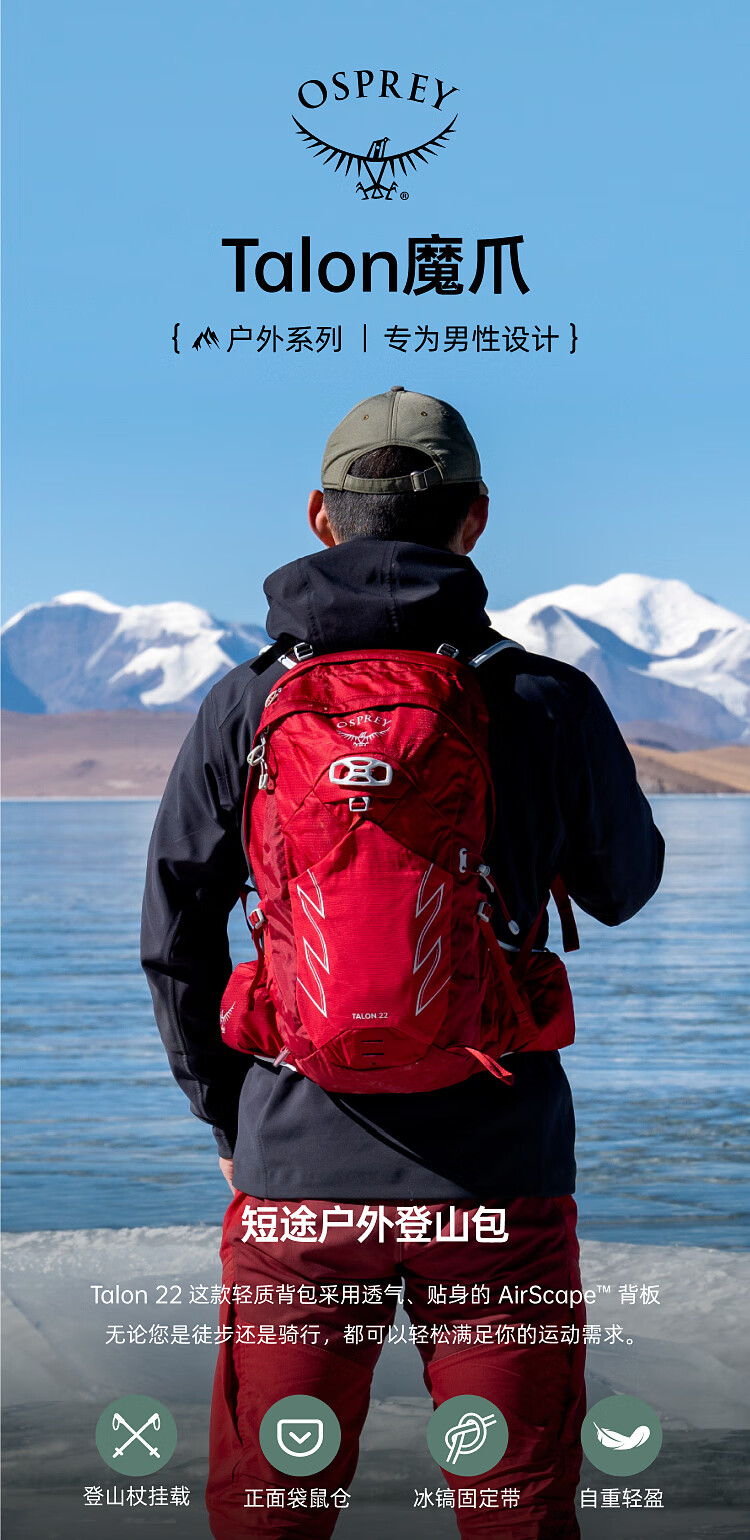 OSPREY Talon 22L魔爪登山旅行双肩包徒步超轻多功能环保背包小鹰 黑色 S/M