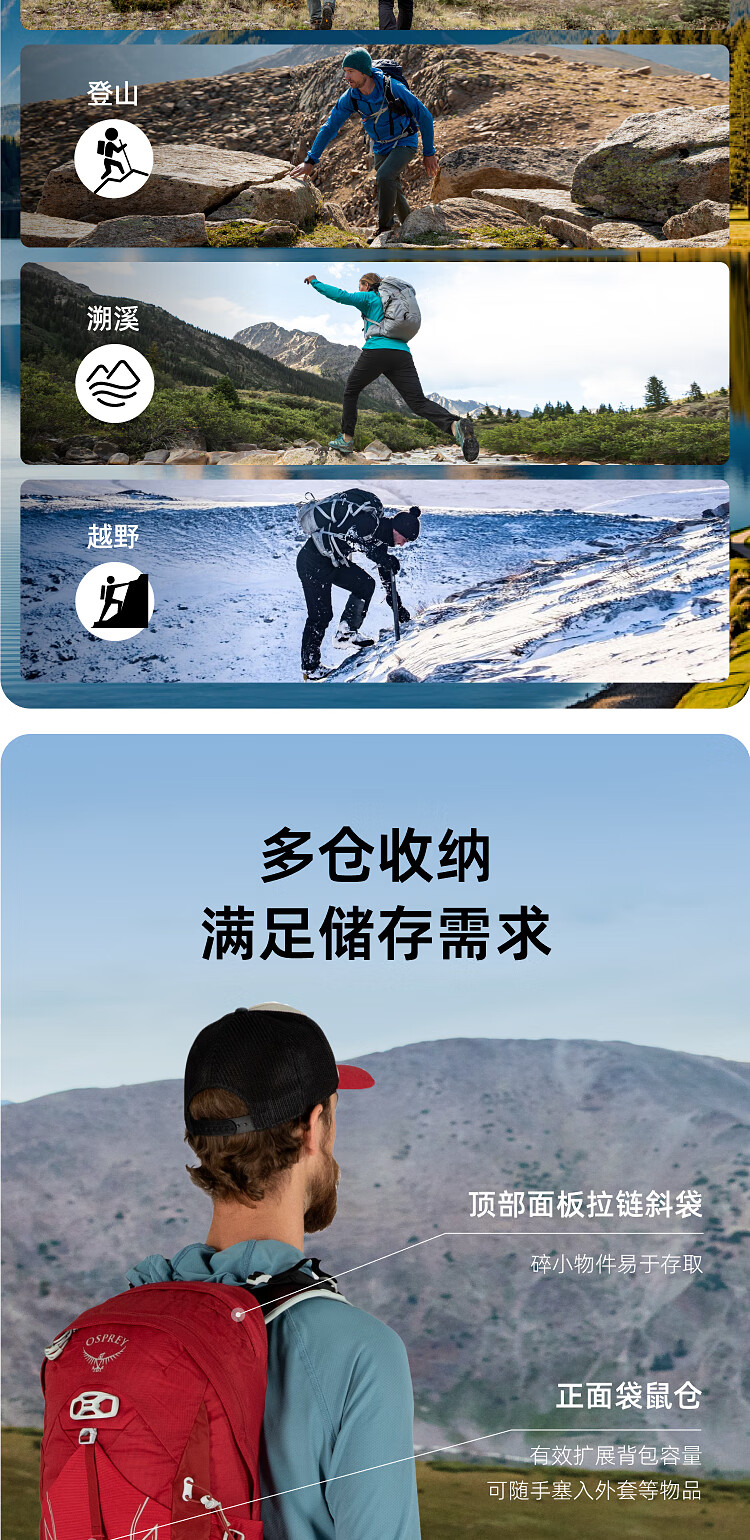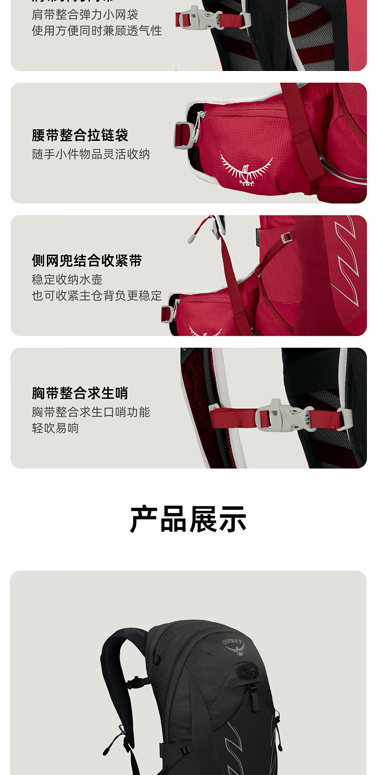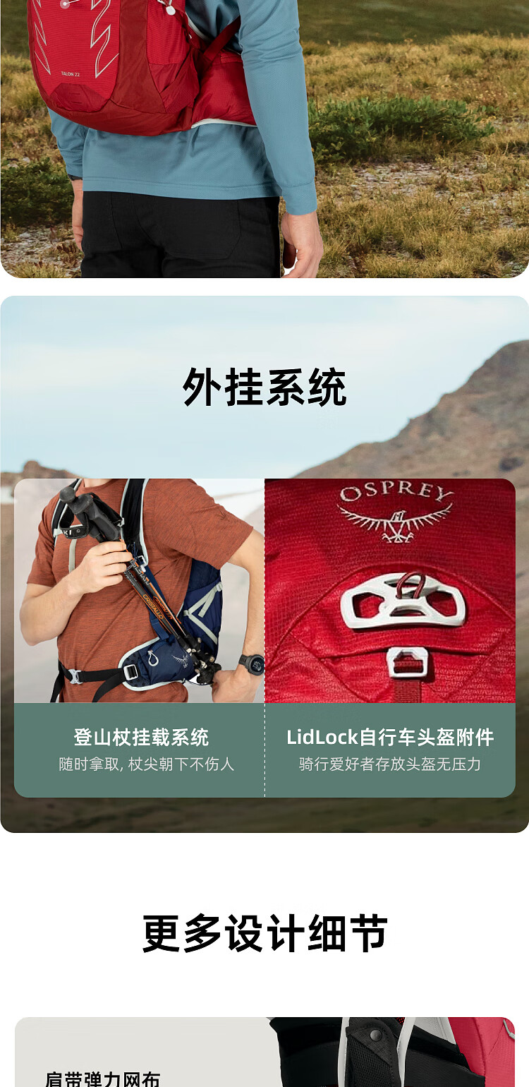 OSPREY Talon 22L魔爪登山旅行双肩包徒步超轻多功能环保背包小鹰 黑色 S/M