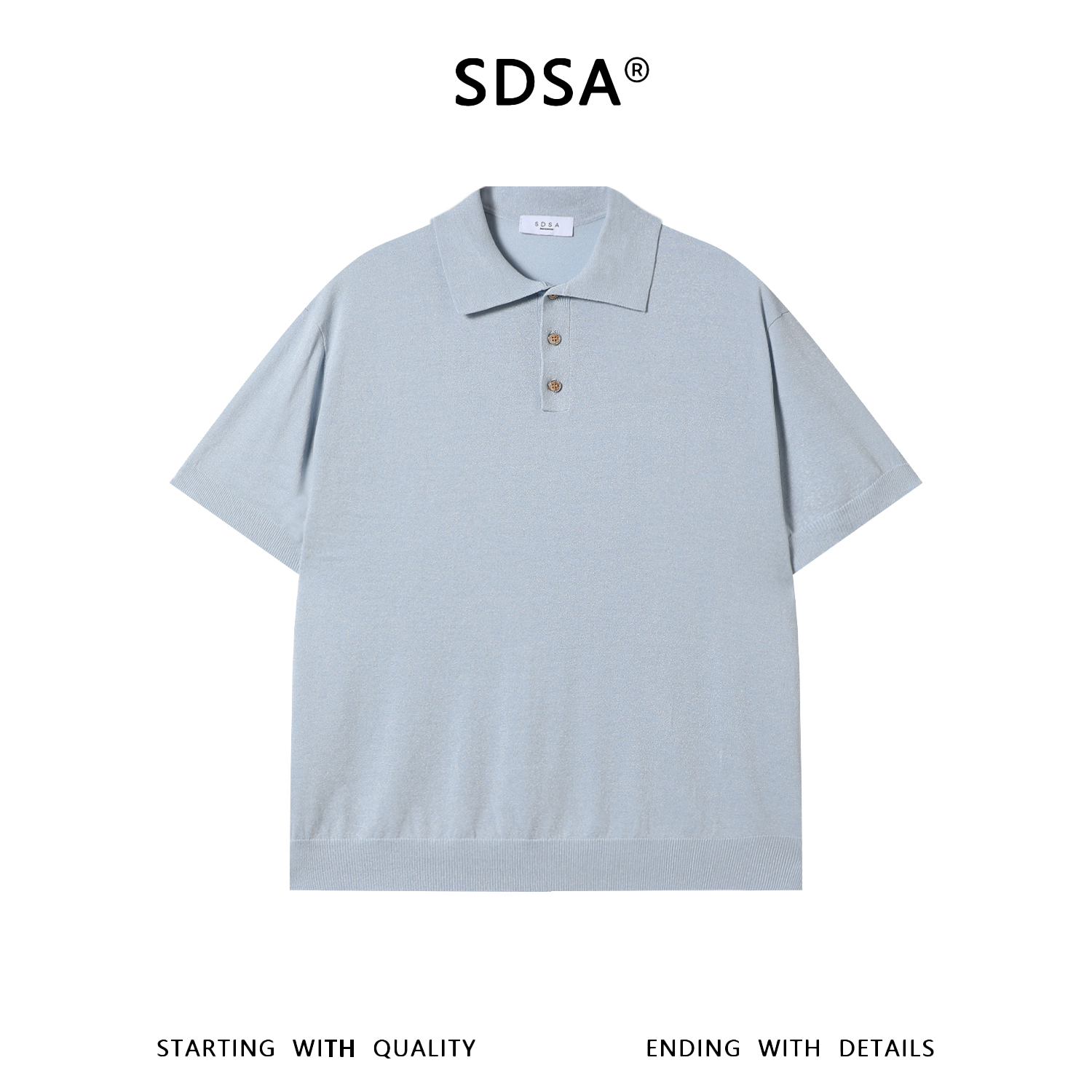 SDSA男装2026新款高贵轻奢老钱风细闪半纽扣翻领T恤针织百搭上衣