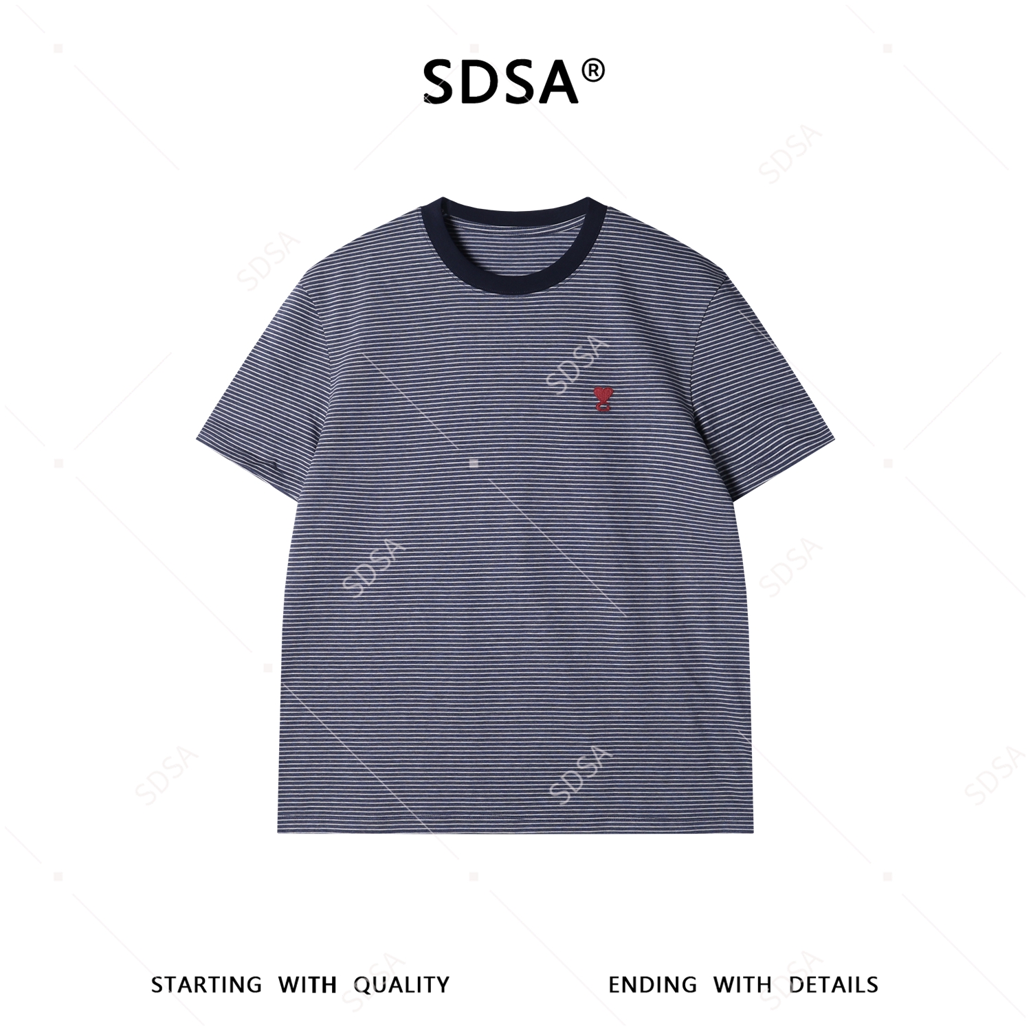9213SDSA男装2026新款高贵轻奢百搭显瘦撞色条纹刺绣爱心圆领短袖T恤