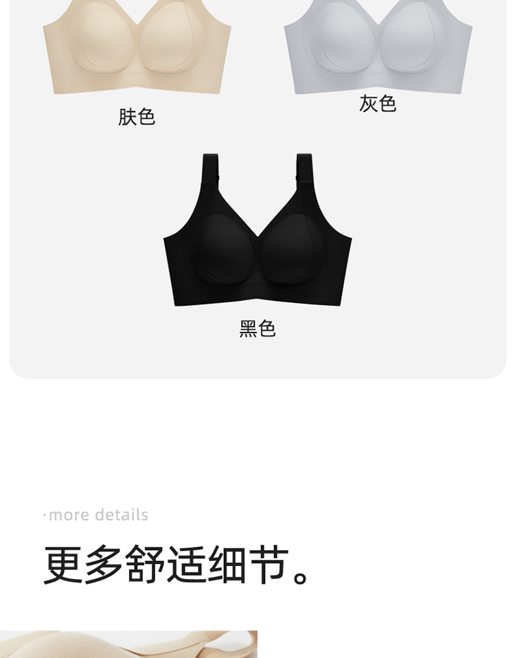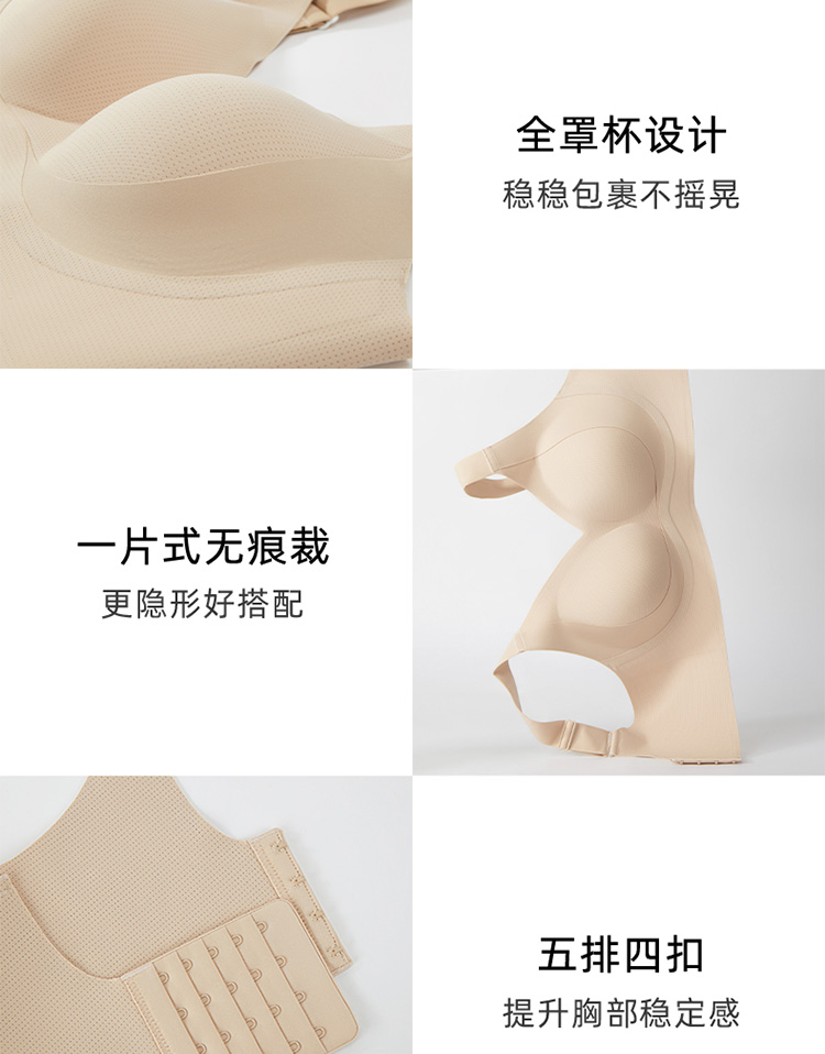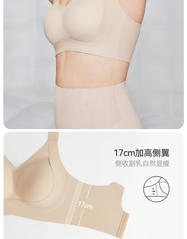 幸棉 内衣女大胸提拉软支撑无钢圈舒适上托侧收副乳防下垂光面提拉内衣