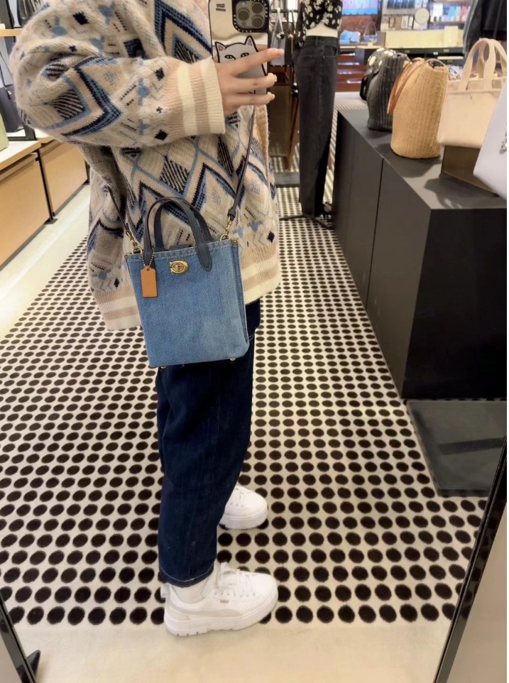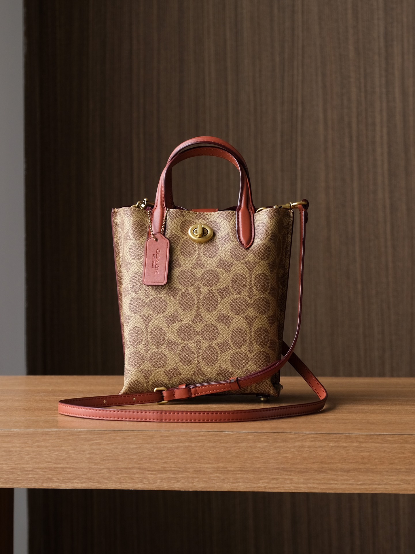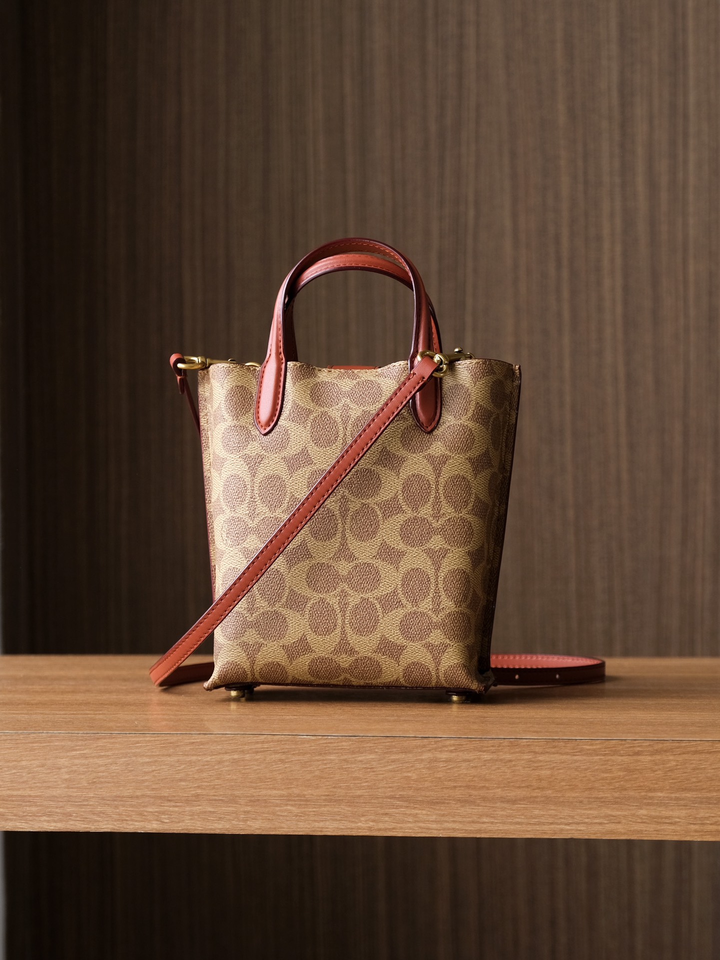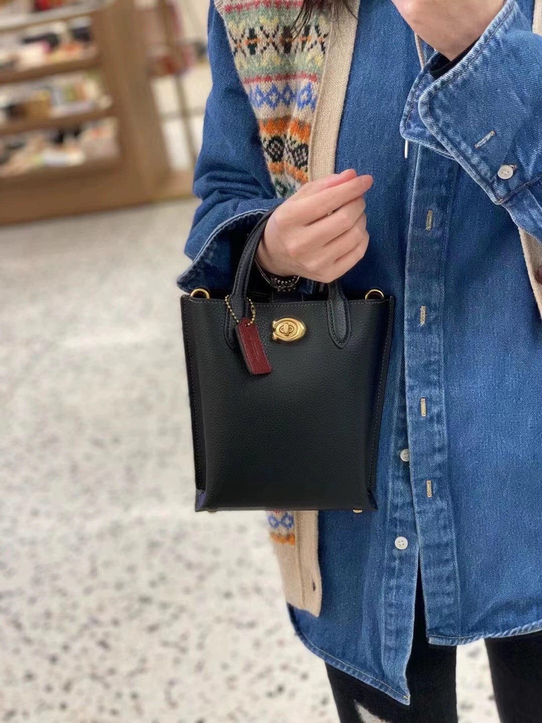 蔻驰2024新款女士托特小号单肩斜挎手提薯条包