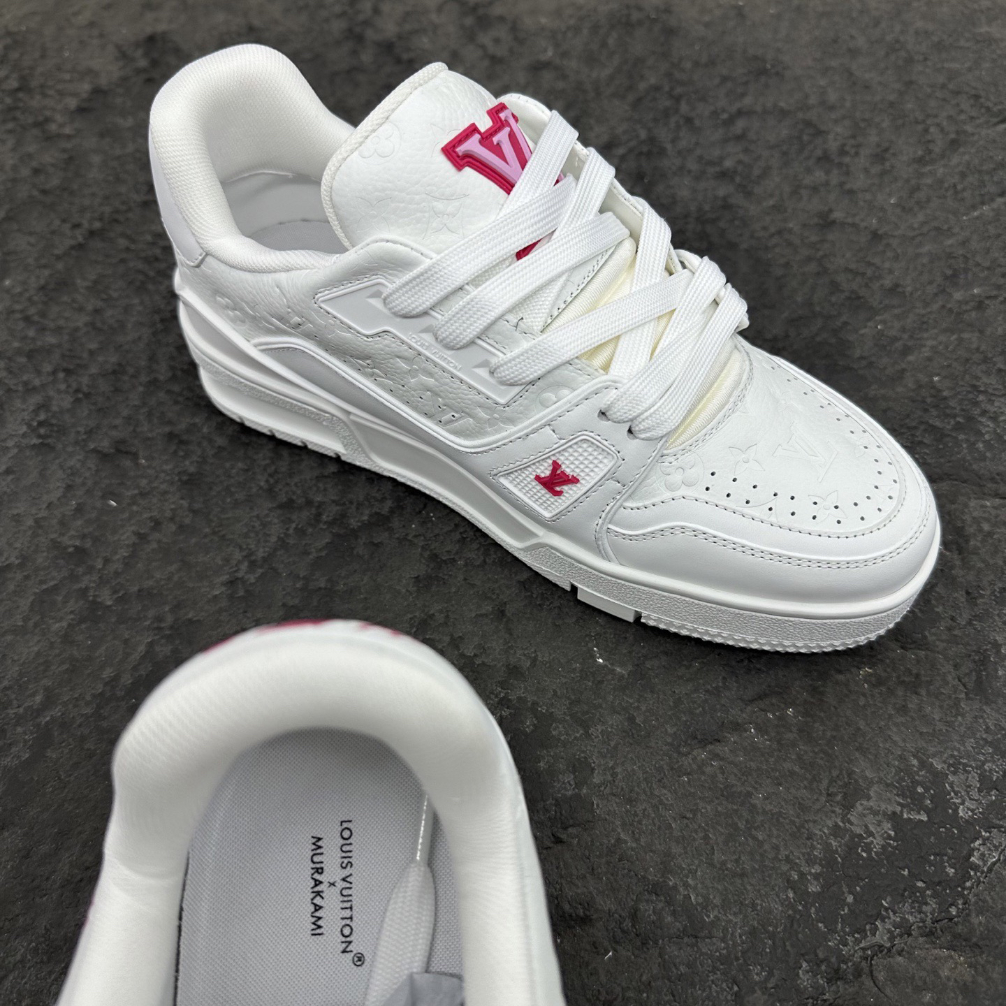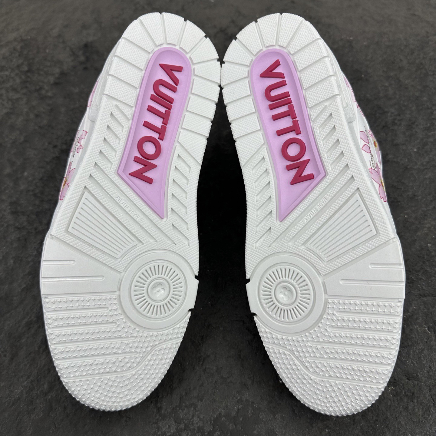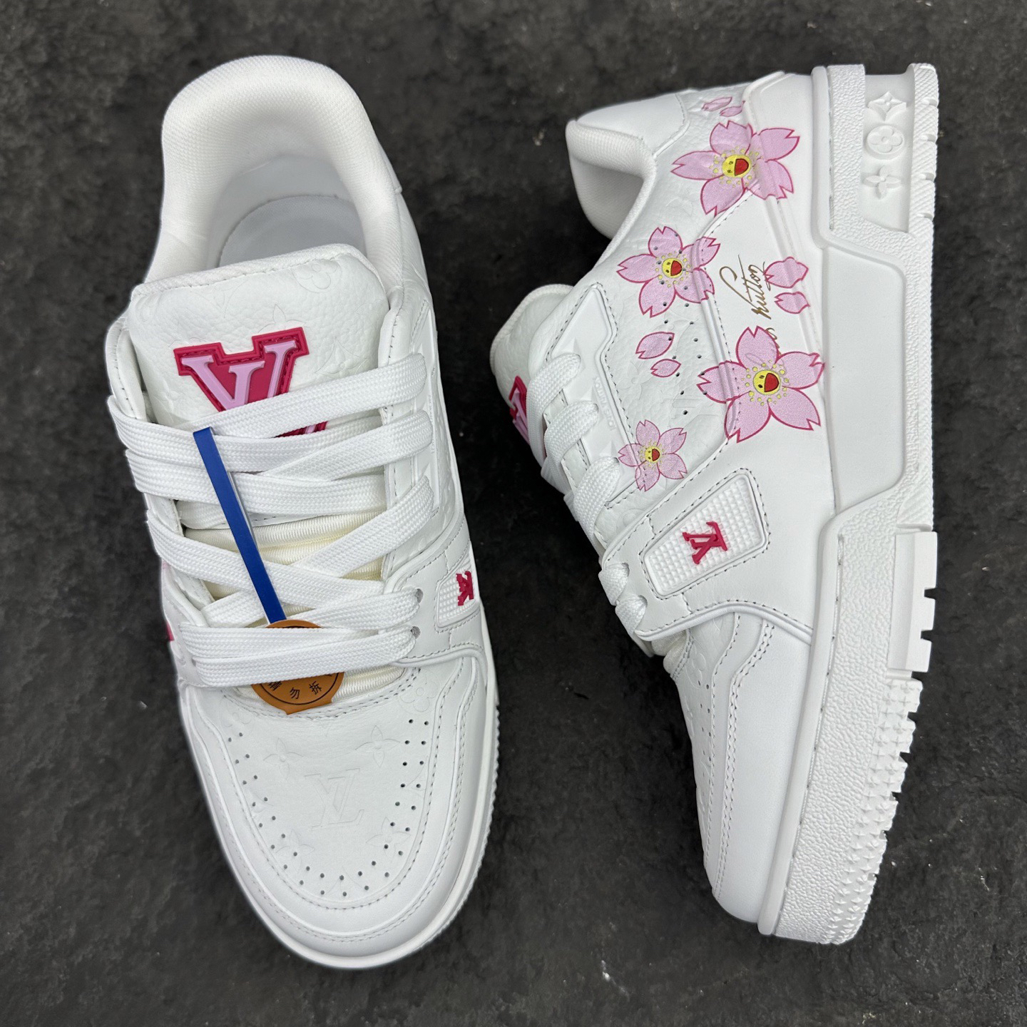 村上隆/Takashi Murakami x LOUIS VUITTON Trainer 樱花系列 牛皮革 品牌元素印花 圆头系带 低帮 板鞋 女款 白色(HC)