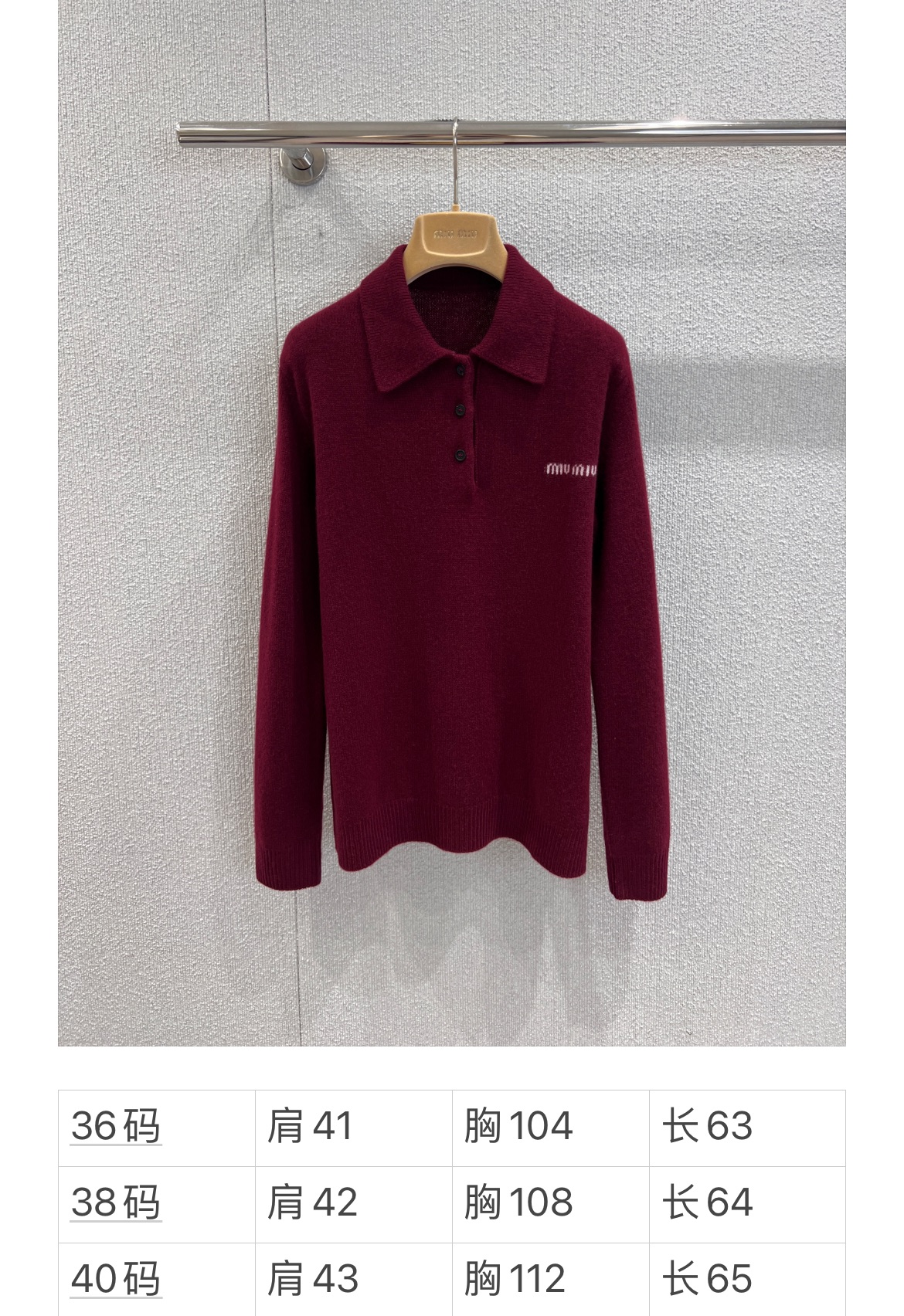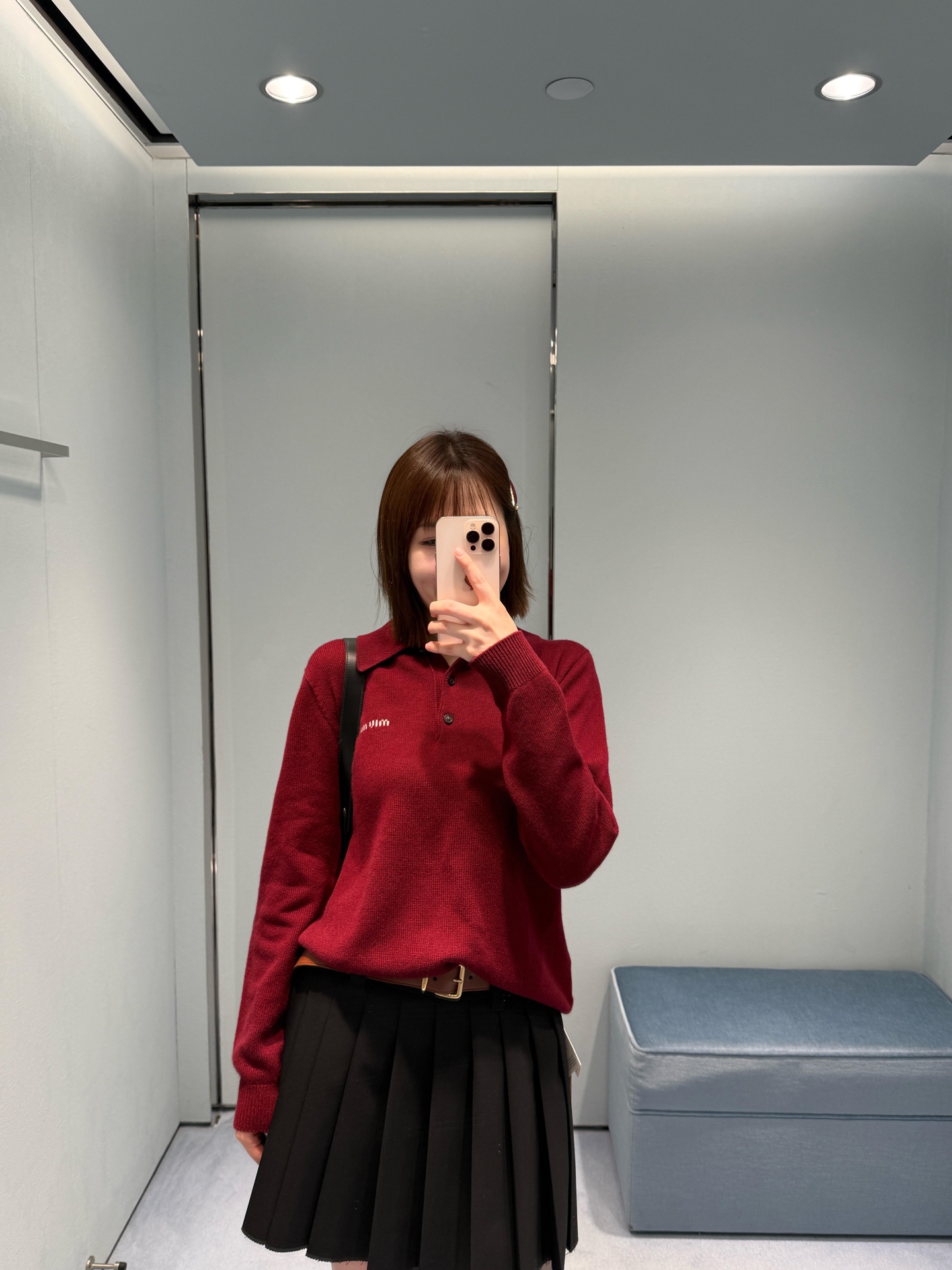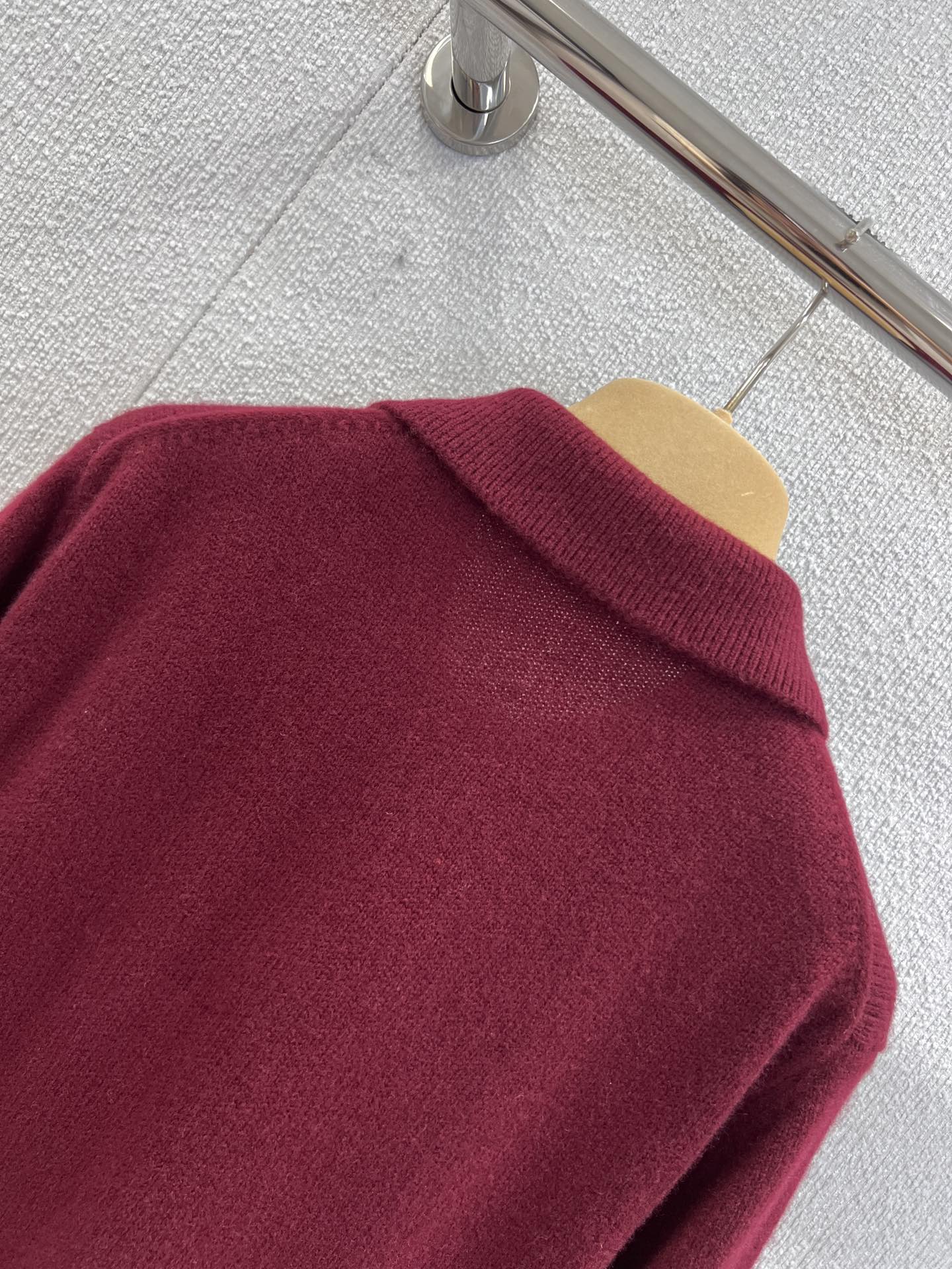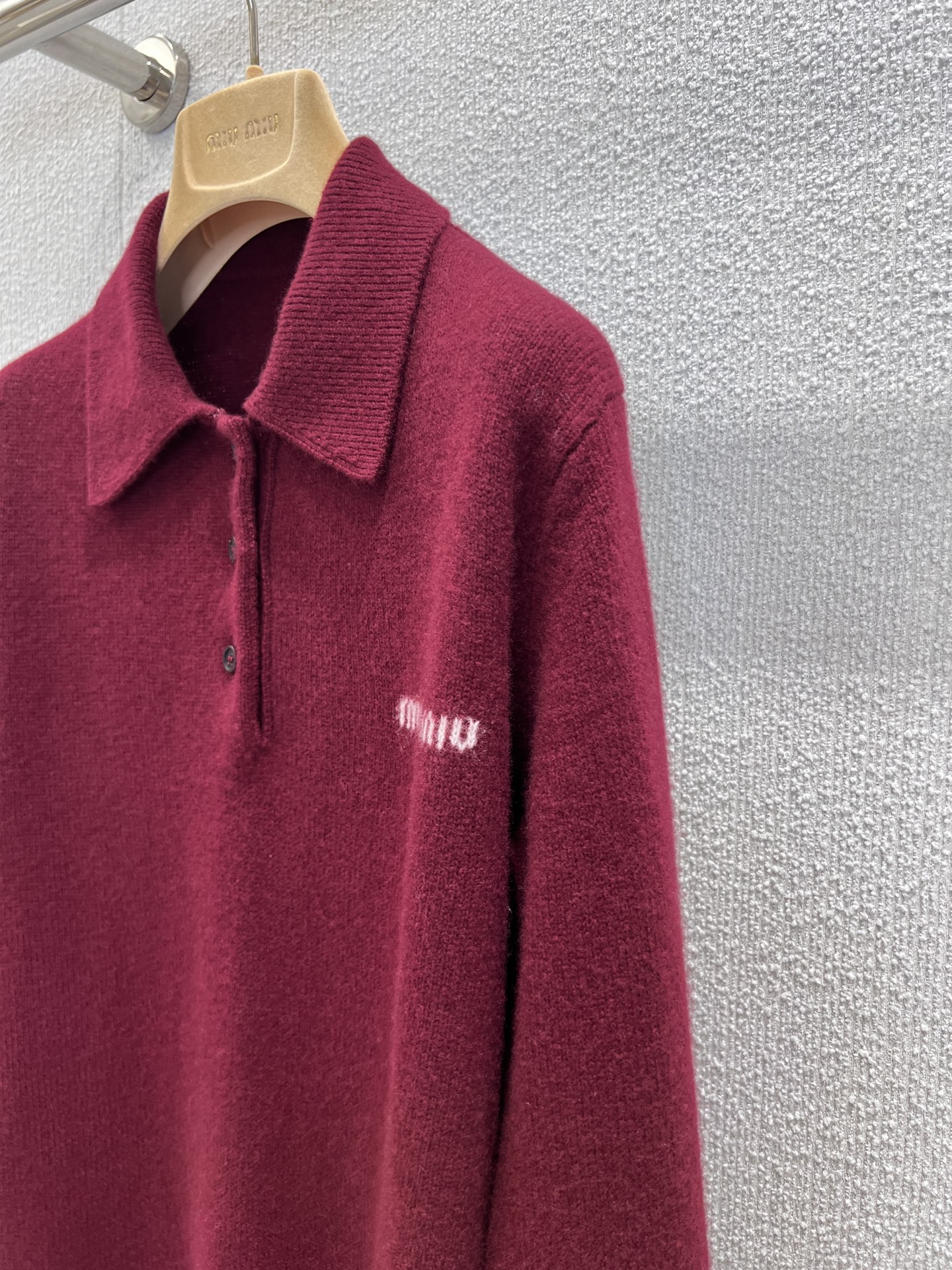 缪缪 25FW秋冬新款 酒红色长袖羊绒Polo针织毛衣(DQJ*MM)