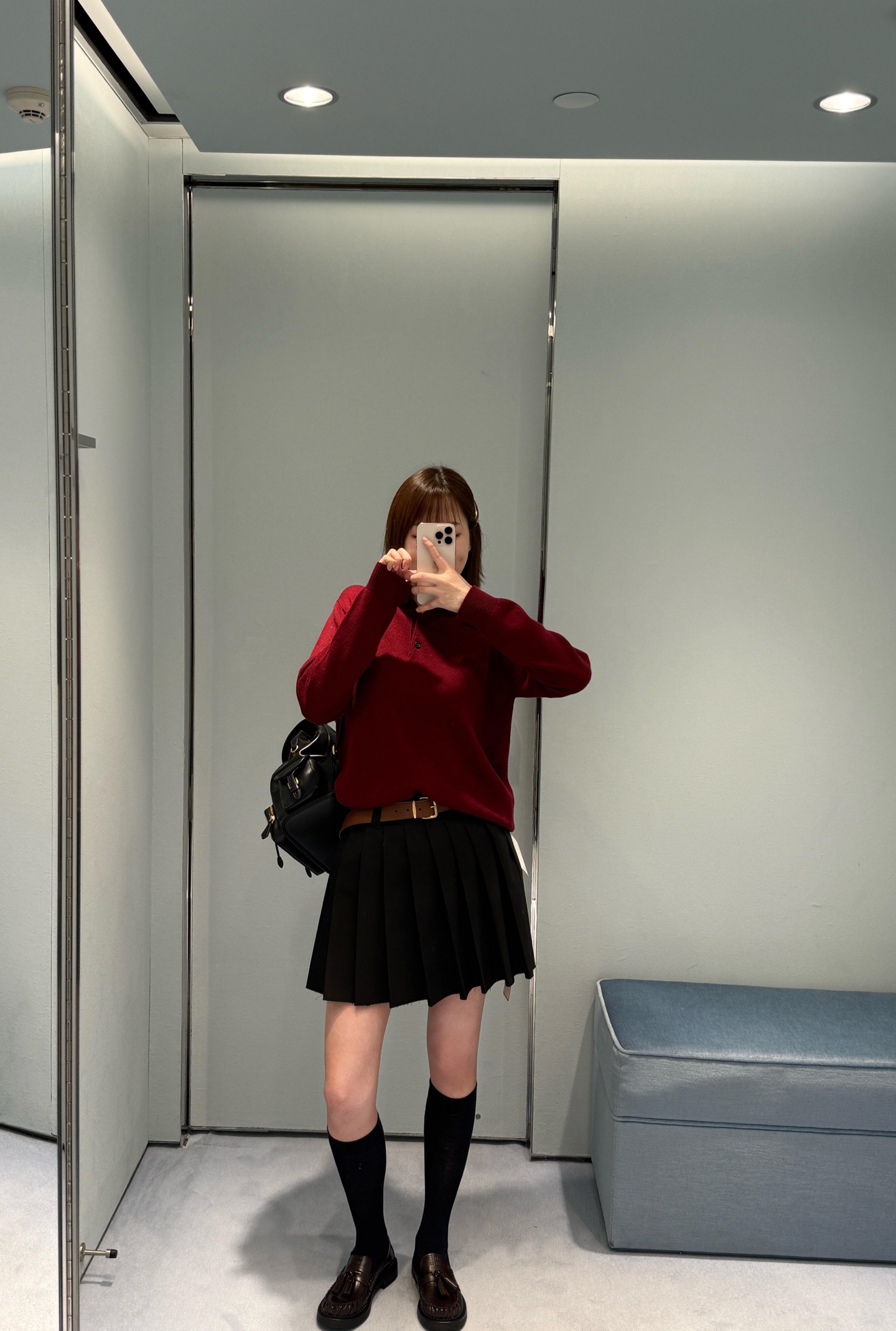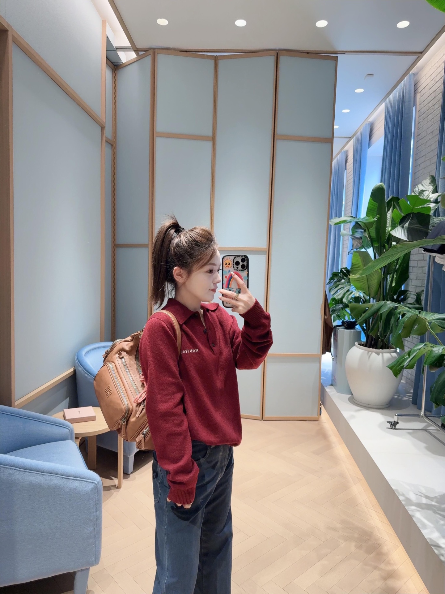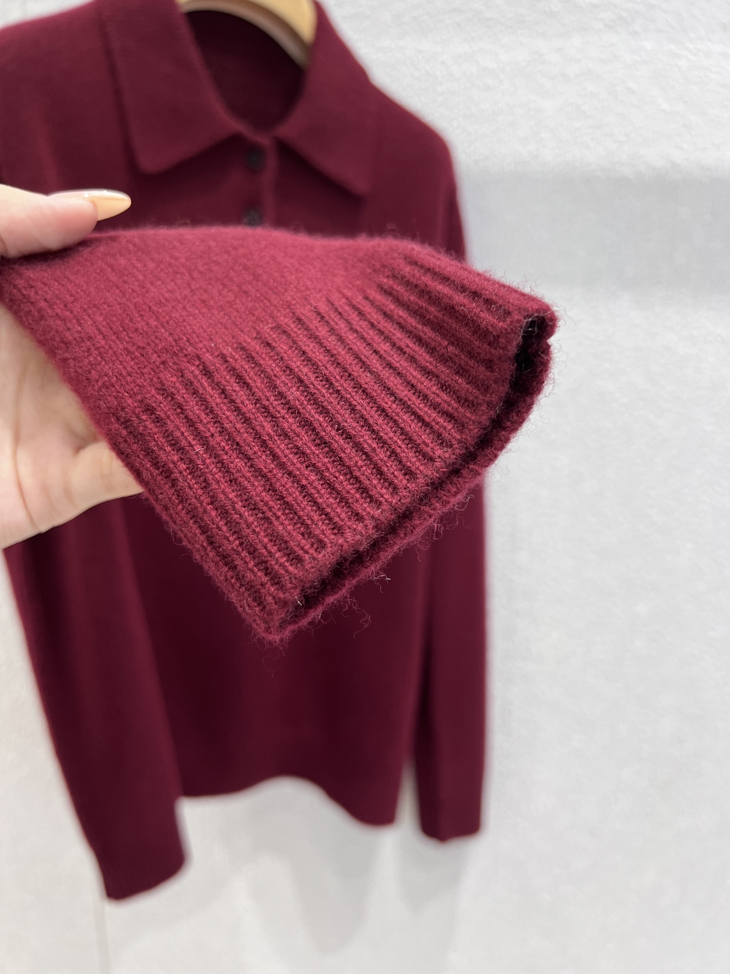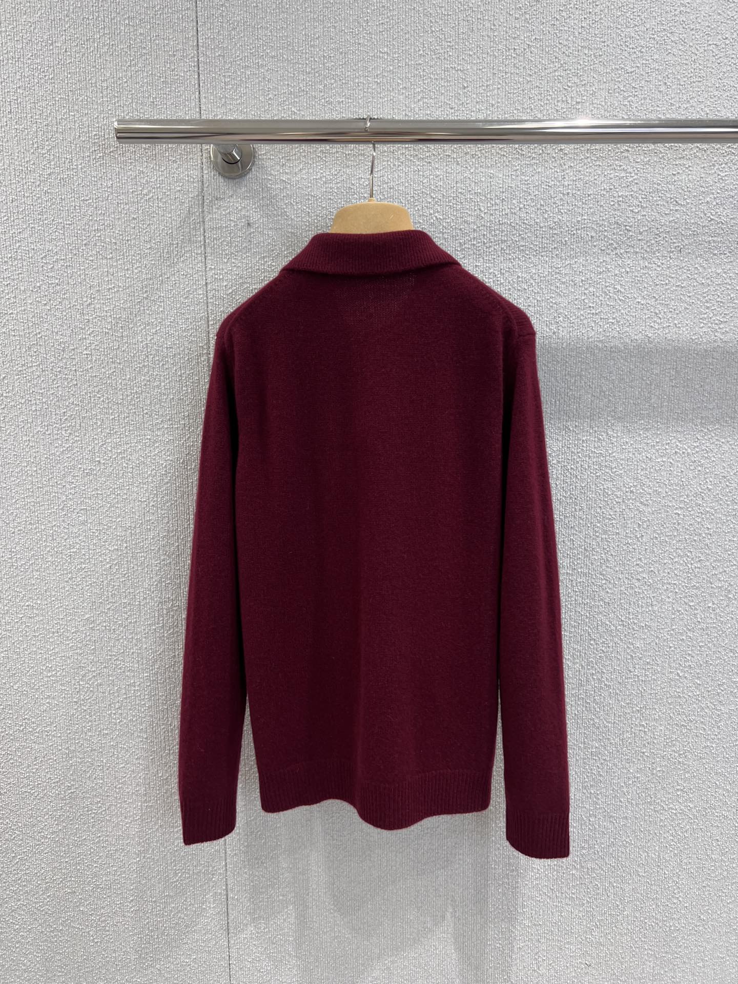 缪缪 25FW秋冬新款 酒红色长袖羊绒Polo针织毛衣(DQJ*MM)