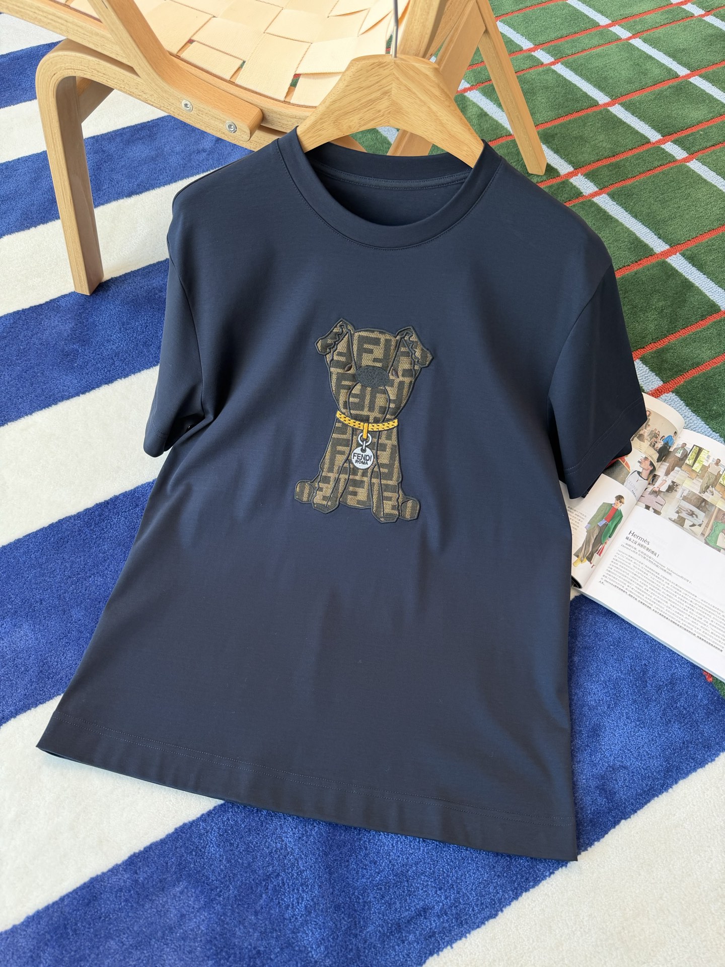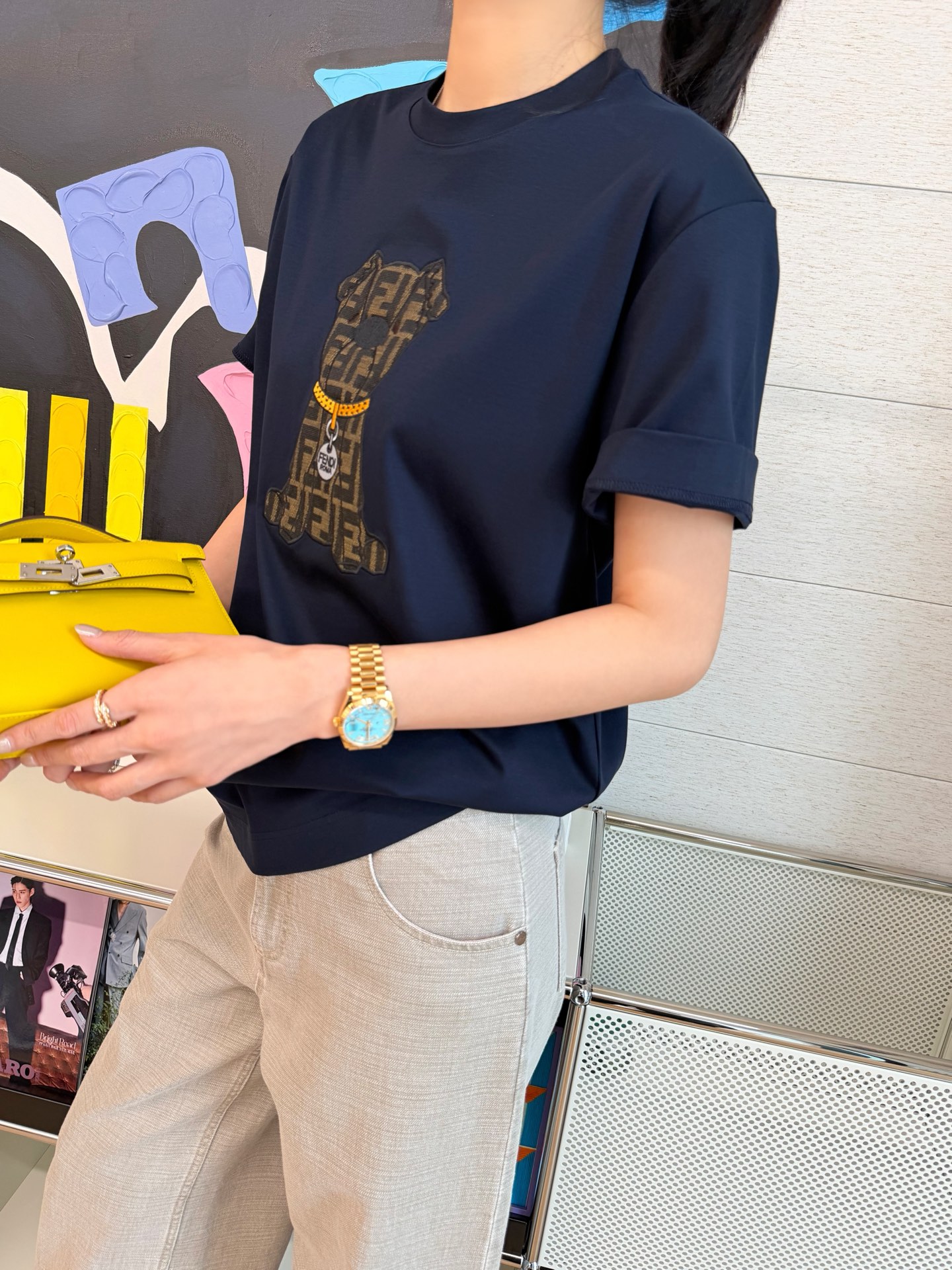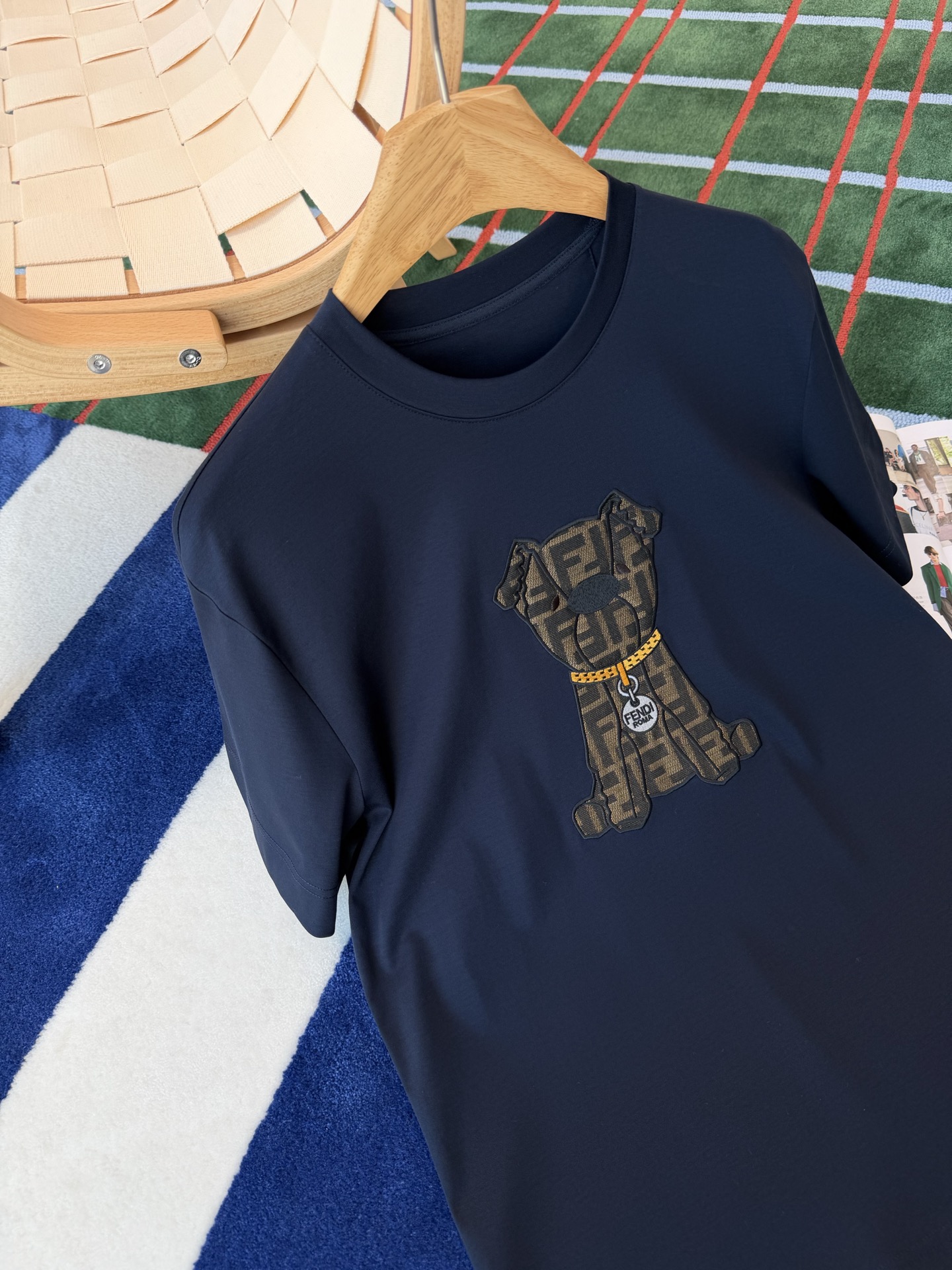采用柔软的棉质面料🔝特选耐穿抗磨的纯棉面料〰️ 舒服到不想脱,果然可爱和质感都能兼得😜版型宽松但不垮☺️藏蓝配色日常又耐看✔️章仔做工非常复杂细致✨ FF小狗作为视觉焦点🔜 既保留了品牌辨识度,又不会像满logo款那样张扬😉软乎乎的FF老花小狗真得太戳心了🤩码数SML