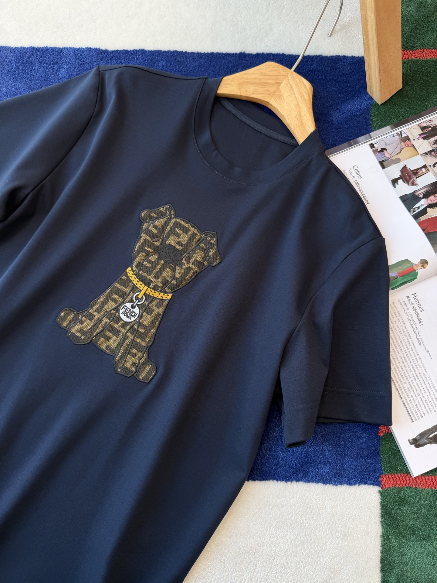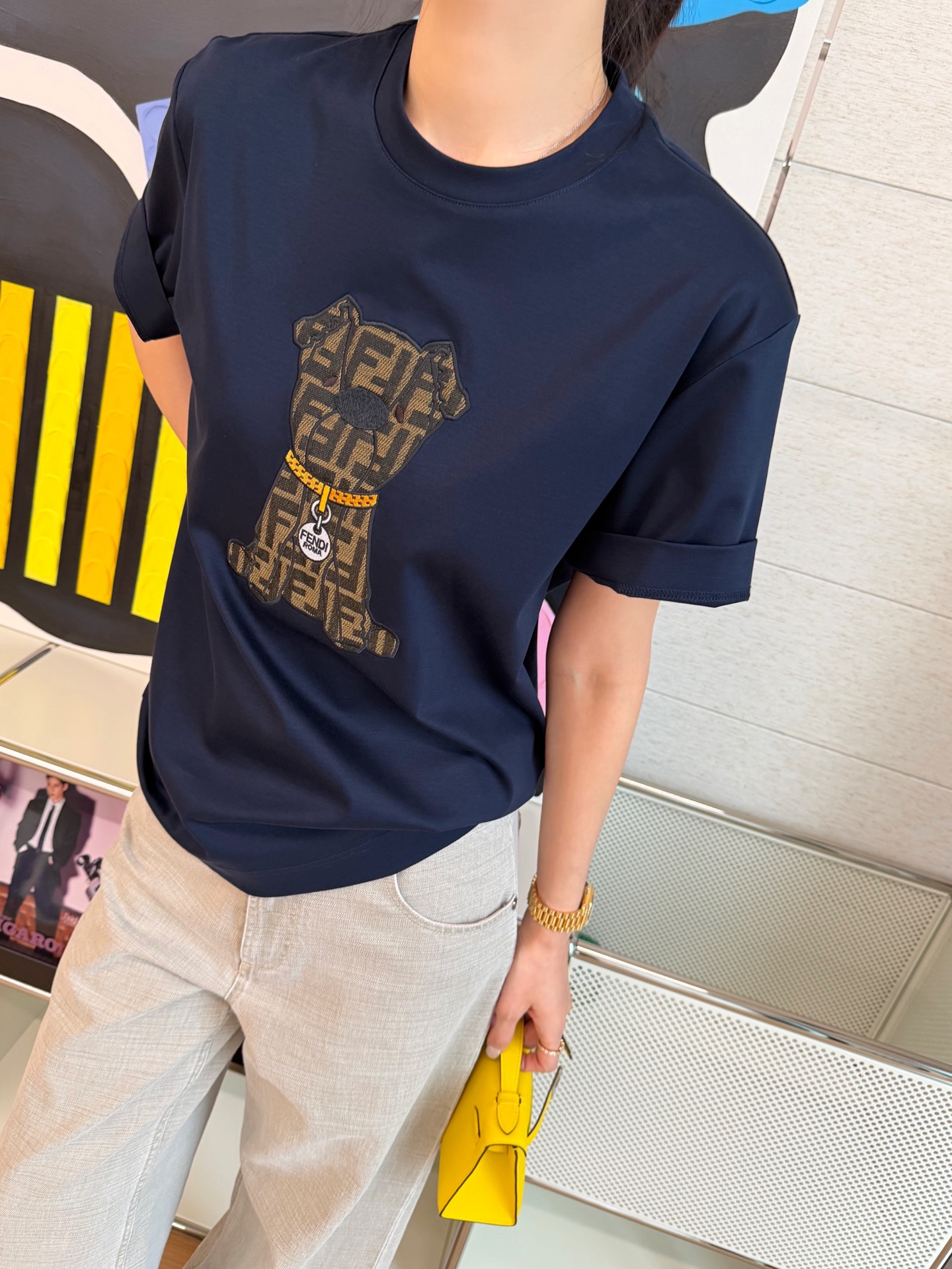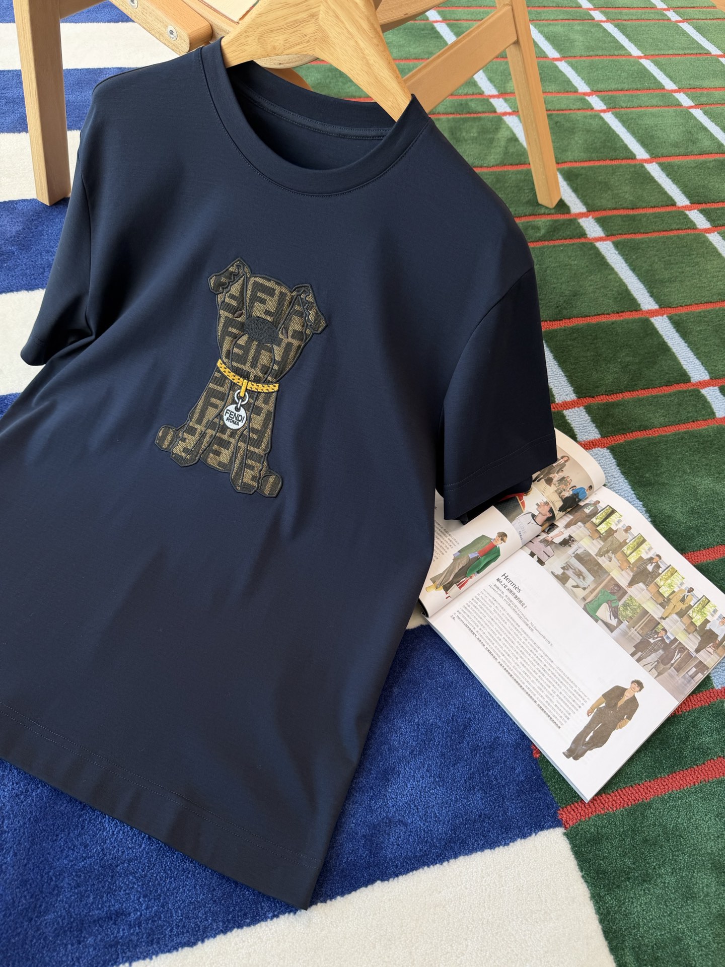 采用柔软的棉质面料🔝特选耐穿抗磨的纯棉面料〰️ 舒服到不想脱,果然可爱和质感都能兼得😜版型宽松但不垮☺️藏蓝配色日常又耐看✔️章仔做工非常复杂细致✨ FF小狗作为视觉焦点🔜 既保留了品牌辨识度,又不会像满logo款那样张扬😉软乎乎的FF老花小狗真得太戳心了🤩码数SML
