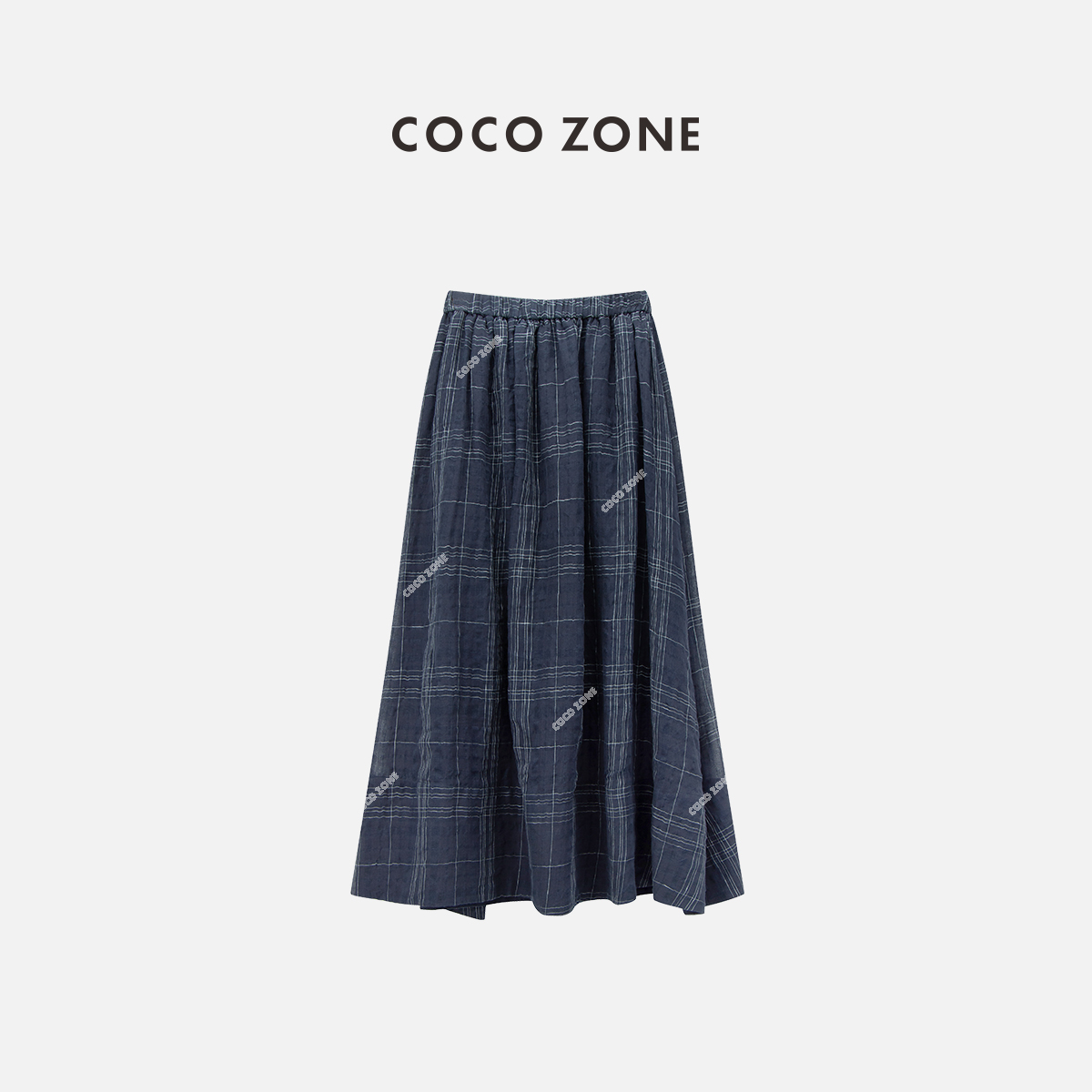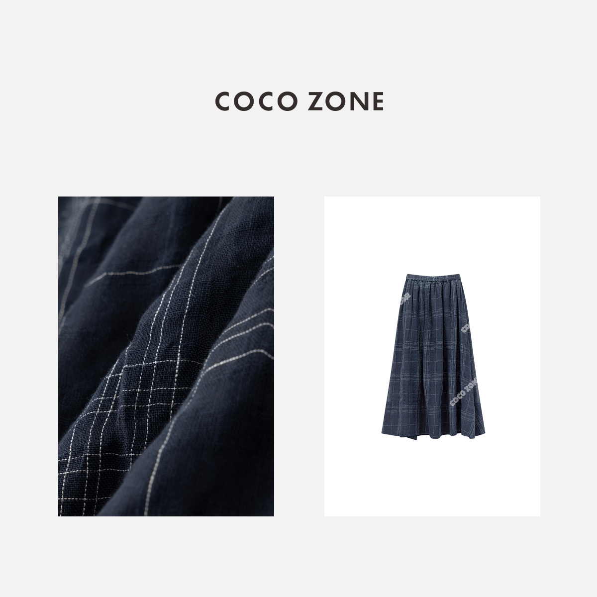 COCO ZONE "繁星半裙“棉麻混纺高级感格纹A字半身裙气质松紧腰中长裙CC1B0919