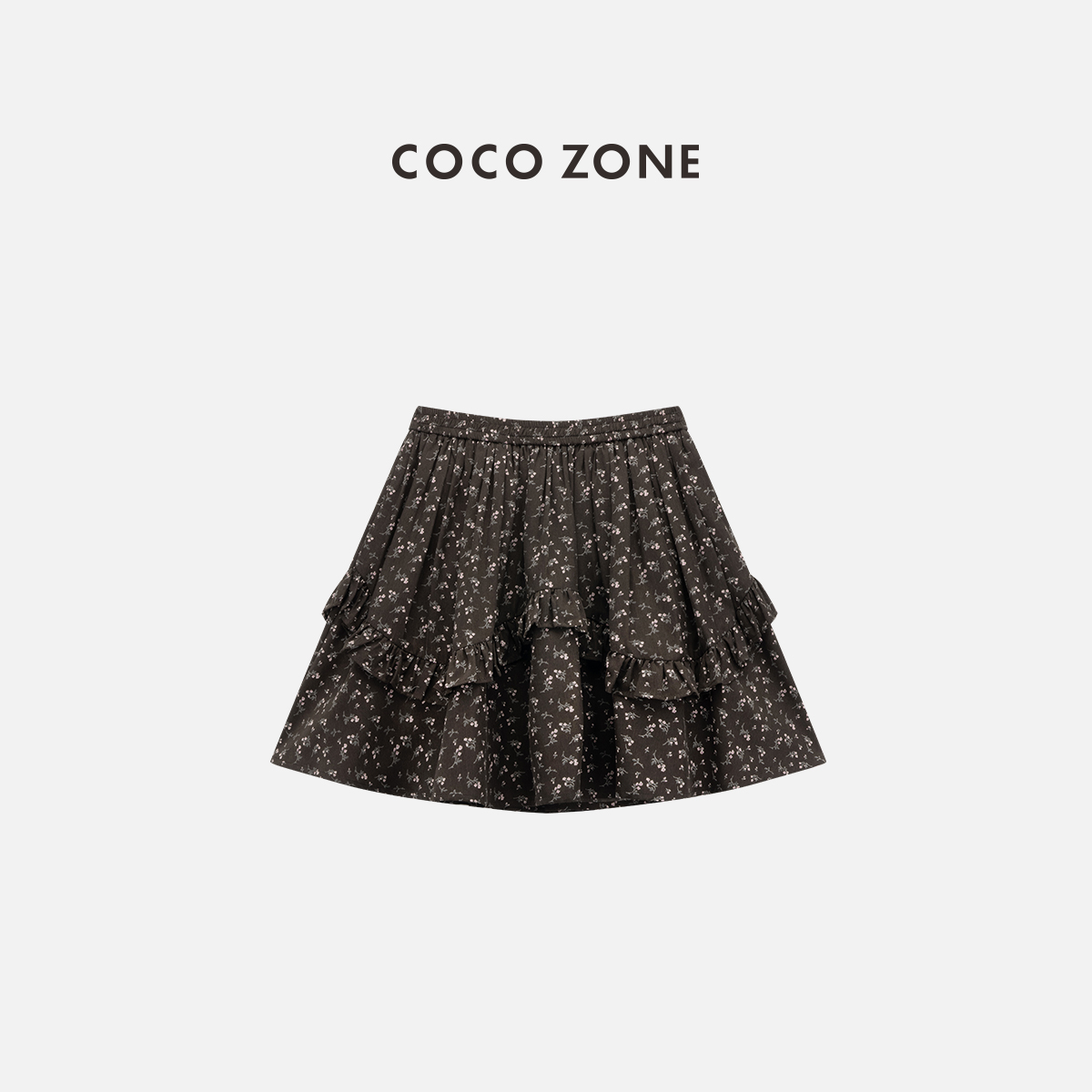 COCO ZONE "星允半裙”设计感不规则花边短裙撞色松紧腰半裙CC1B1504