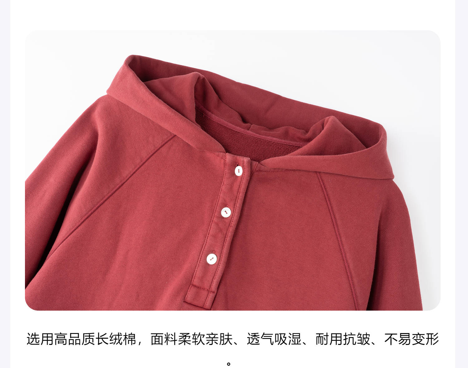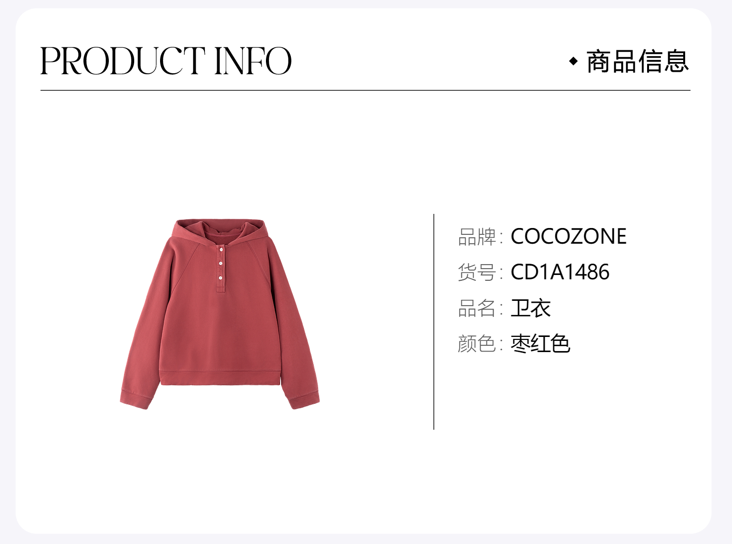 刘一一 【100棉】三粒扣连帽纯色百搭卫衣 CD1A1486